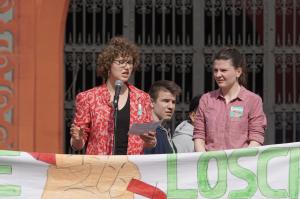 Die Organisatorinnen Anna Holm (am Mikronfon) und Julie von Büren