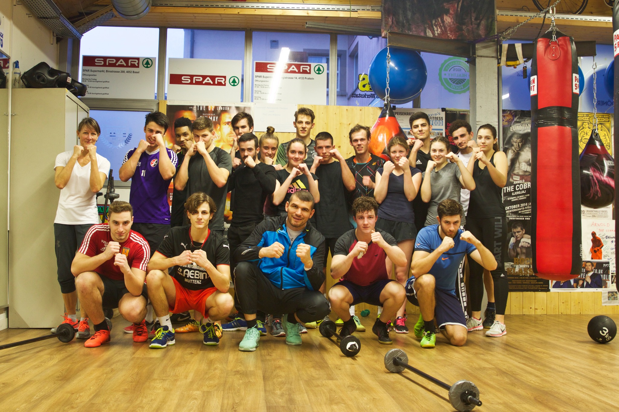 Im Rahmen des Ergänzungsfach Sport besuchen wir Arnolds Boxfit in Pratteln (https://arnoldboxfit.ch/). Seit fast zwei Jahren arbeitet der Profi hier in seinem Studio. Das mit vielen persönlichen Erinnerungen ausgeschmückte Studio macht Lust auf das Training. Der Meister persönlich führt uns in die Geheimnisse des Boxens ein. Alle Konditionsfaktoren werden beim Fitnessboxen gefördert. Neben Kraft und Ausdauer insbesondere auch die koordinativen Fähigkeiten. Beim intensiven Training werden Stress ab- und ein gutes Körpergefühl aufgebaut. Das Interesse am Boxsport steigt seit Jahren an. Die boomende Fitnessbranche hat die Sportart für sich entdeckt und spricht durch vielfältige Trainingsmöglichkeiten eine grosse Zielgruppe an. Die Kobra erzählt uns: „Der jüngste Boxer im Studio ist 7, der älteste 70 Jahre alt. Am Morgen haben wir Frauenboxen und über Mittag kommen die Businessleute.“