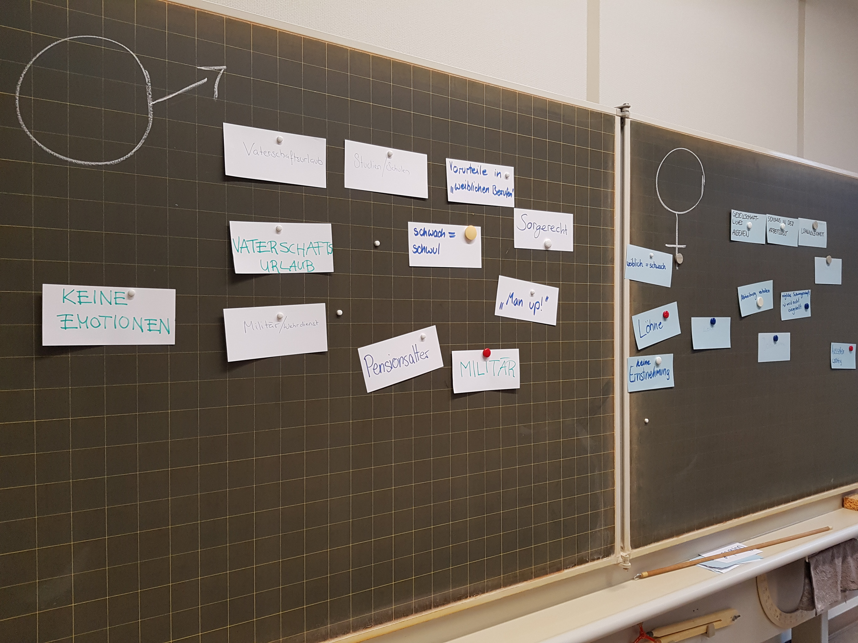 «Unter der Leitung von Anja Baier von «Iamaneh Schweiz» haben wir viel über den Stand der Rechte von Frauen in der ganzen Welt und über die Geschlechtergerechtigkeit in der Schweiz erfahren. Im Workshop ist uns Schülerinnen und Schülern bewusst geworden, wie gross das Bedürfnis nach Aufklärung hinsichtlich dieses oft tabuisierten Themas ist und so ist es zu aufschlussreichen Diskussionen in der Gruppe gekommen. Auf diesem Foto seht ihr die Auswertung der Gruppengespräche mit den Punkten, die aufzeigen, in welchen Bereichen in der Schweiz auch heute noch keine Gerechtigkeit unter den Geschlechtern besteht.»