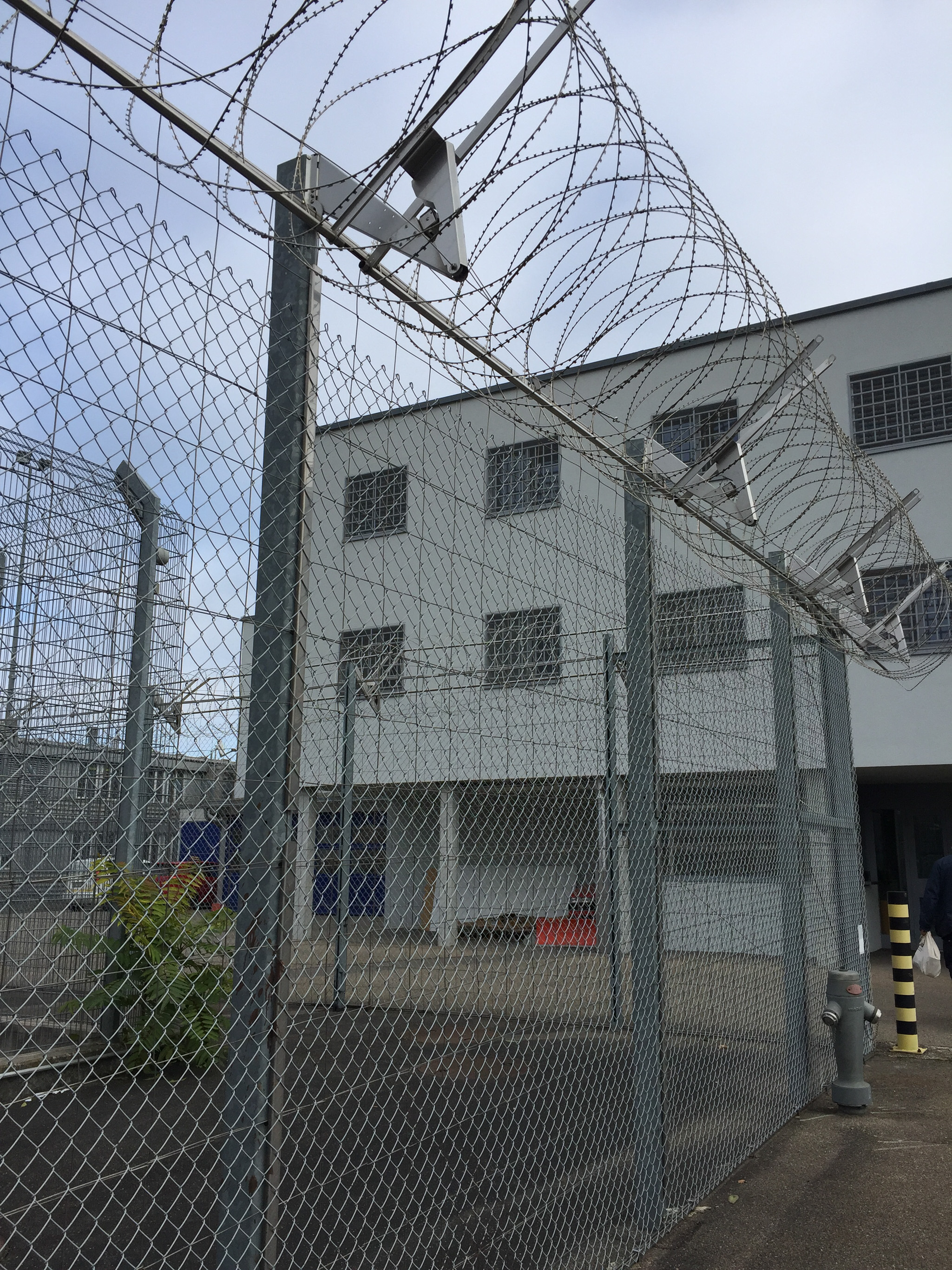 «Gefangen hinter Mauern, Draht und Gittern. Das war unser erster Eindruck vom Gefängnis, den wir mit diesem Bild festgehalten haben. Trotz eines Gefühls von Isolation, kam uns die Justizvollzugsanstalt «Bässlergut» beim Zoll Otterbach in Basel überraschend human vor. Die Insassen führen einen mehr oder weniger normalen, geregelten Alltag und können sich in einem bestimmten Rahmen frei bewegen. Doch schlussendlich bleibt die Frage: Was ist richtig? Kuscheljustiz oder harte Bestrafung?»