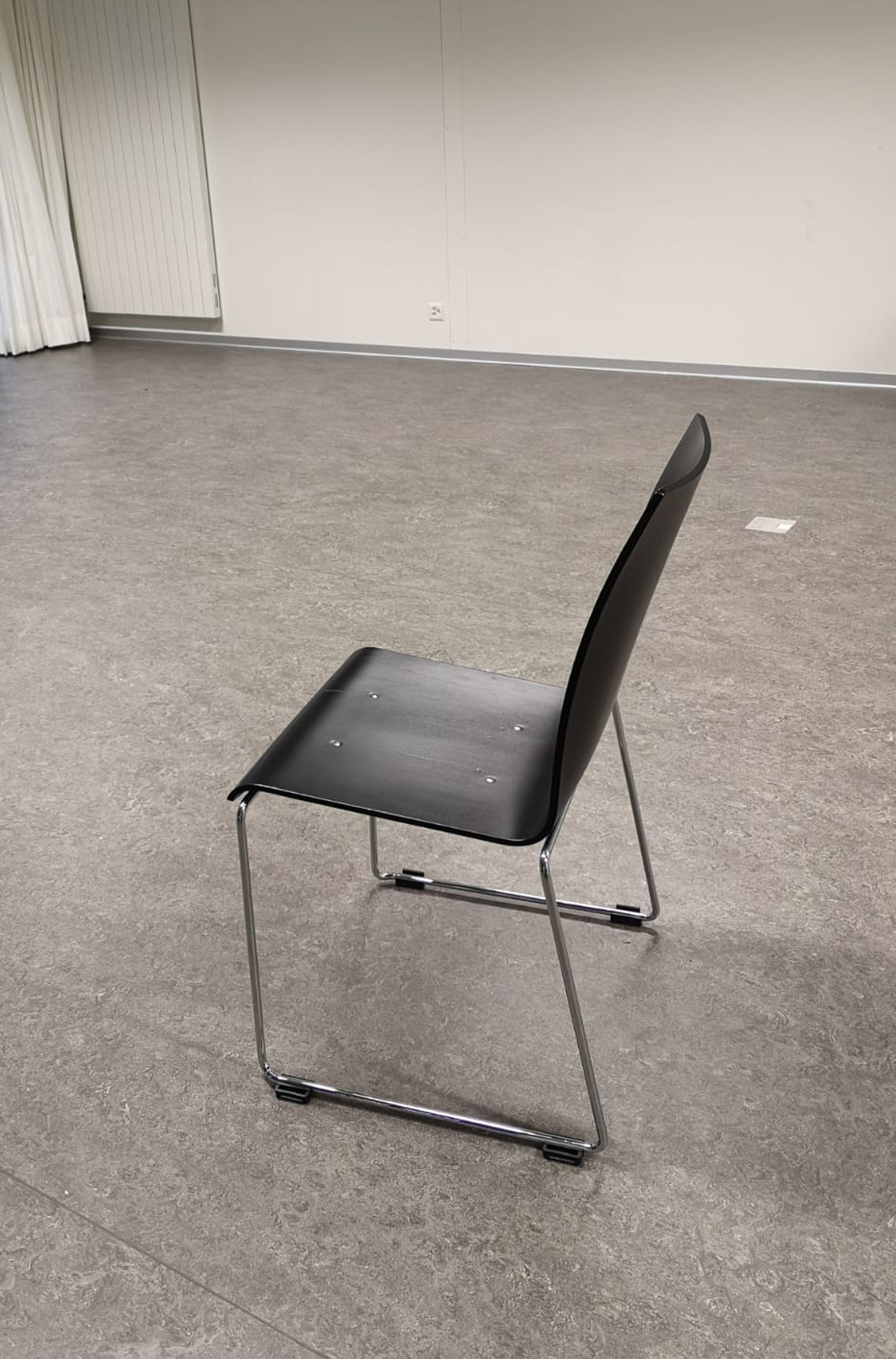 «Auf diesem Bild ist ein Stuhl zu sehen. Dieser diente den beiden Schauspielern des Theaters über Ausschaffung als einziges Requisit. Dadurch glänzte das Theater in seiner ausdrucksstarken Einfachheit. Leider wurde aber auch der Informationsinhalt der Diskussion im Anschluss an die Aufführung eher einfach gehalten. Anstatt uns neue, spannende Infos über das Thema Ausschaffung und der damit verbundenen Gefahr von Menschenrechtsverletzungen zu geben, fragte man uns, was wir bereits wussten und bejahte oder verneinte dies und jenes, ohne gross darauf einzugehen. Ich hätte mir mehr Informationen in Bezug auf die Menschenrechte und weniger Informationen hinsichtlich Bühnenpräsenz gewünscht.»