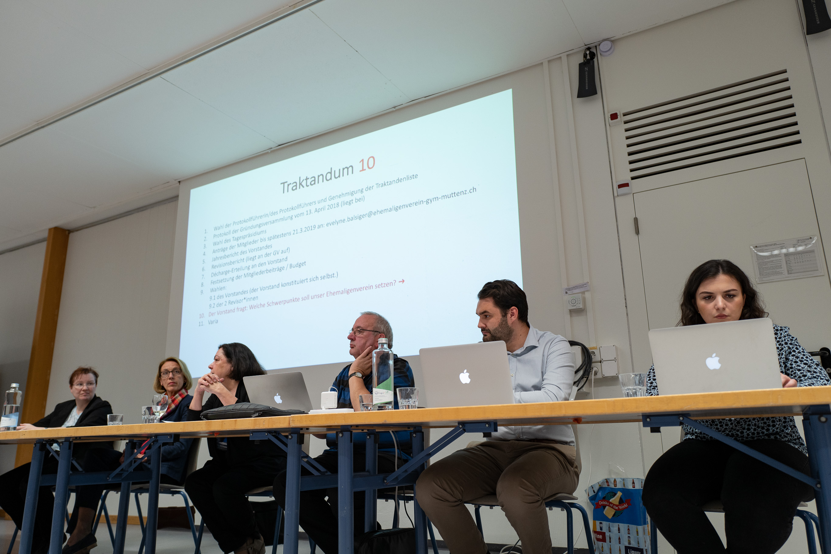 Vor einem Jahr haben die ehemaligen Schülerinnen und Schüler des Gymnasiums, der FMS und der DMS Muttenz den Ehemaligenverein gegründet. Seitdem hat der Ehemaligenverein an einem Treffen das Gym der ersten Stunde, seine Entwicklung und seine heutigen Aktivitäten verglichen. Unter den Ehemaligen, die sich damals zum Verein gesellten, befand sich die inzwischen frischgewählte Regierungsrätin Kathrin Schweizer. Auf den 28. März nun lud der Vorstand die Mitglieder zur ersten Jahresversammlung ein. Nebst den üblichen Vereinstraktanden wie der Genehmigung der Kassenrevision diskutierten die Mitglieder die künftigen Aktivitäten des Vereines und die Art der Mitglieder-Anwerbung. Das wichtigste Thema aber war die Frage, wie die Bildungslandschaft im Kanton aussehen würde angesichts des von der Baselbieter Regierung in Auftrag gegebenen Masterplans, der verschiedene Mittelschulszenarien in Betracht zieht, u. a. eines ohne eine gymnasiale Abteilung, dafür mit einer zentralisierten FMS in Muttenz. Als Podiumsgäste diskutierten unter der Leitung von Katja Reichenstein: Christof Hiltmann (Gemeindepräsident von Birsfelden und FDP-Landrat), Liliane Amrein und Denise Bucher (aus der Sicht der Eltern und Ehemaligen).