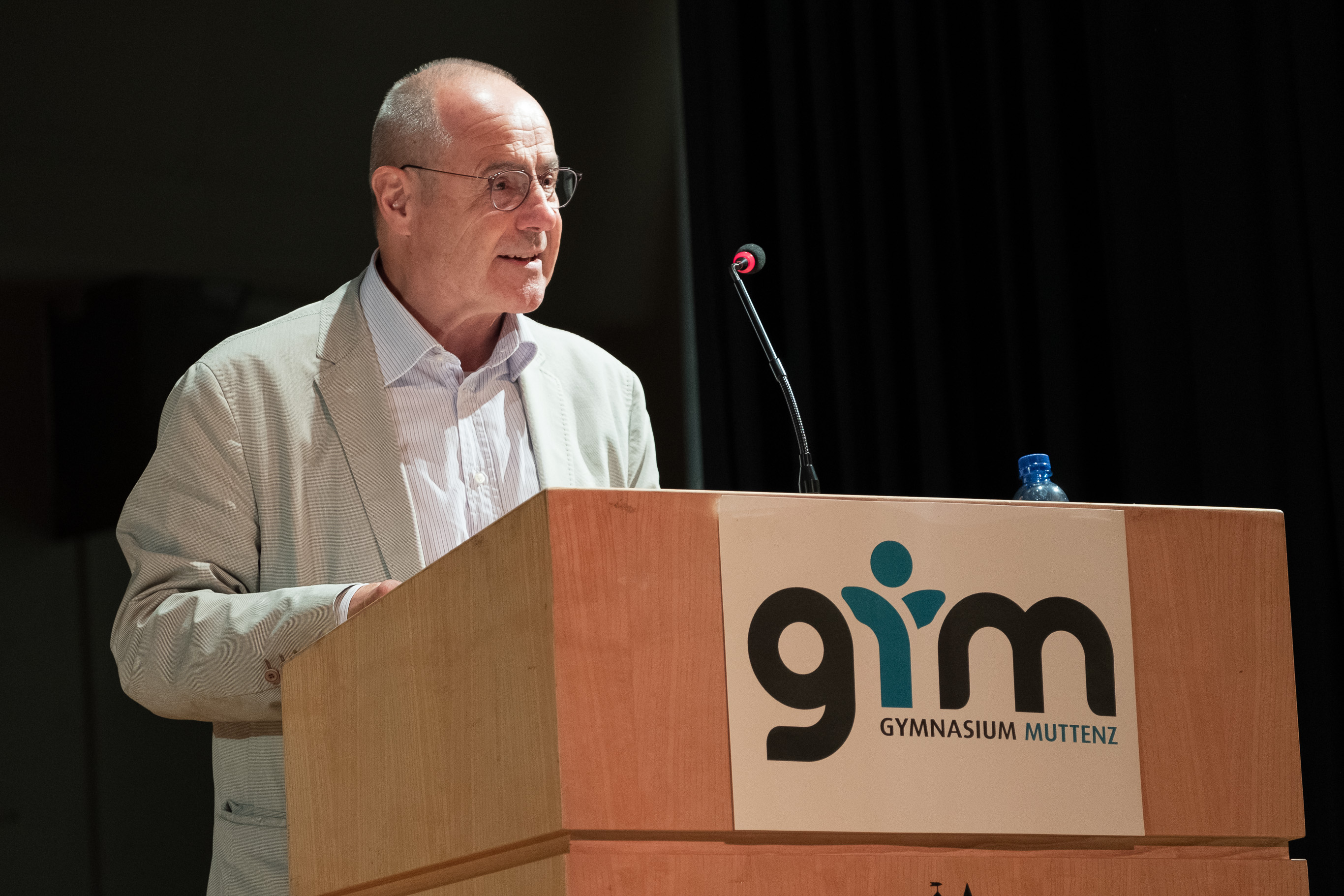 Ständerat Claude JaniakAls Redner war Claude Janiak eingeladen. Der Baselbieter Ständerat griff in seiner Rede zurück in die Vergangenheit und schilderte die Stationen, die seine persönliche und politische Identität ausmachen. Als Sohn eines im Zweiten Weltkrieg in der Schweiz internierten polnischen Soldaten und einer schweizerischen Mutter wuchs er bereits mit einem Bewusstsein für politische und gesellschaftliche Themen auf. In seiner Studenten-WG in Bubendorf durften vier ältere Damen regelmässig ihre Treffen abhalten, und diese organisierten dann aus Dankbarkeit den für ihn günstigsten Wahlkampf in seiner Karriere, die mit einem Amt als Gemeinderat in Bubendorf im Alter von 26 Jahren begann. In seinem Amt musste er sich der politischen Alltagsarbeit widmen, die nicht immer die Verbesserung der Welt als grosses Ziel hatte. Weitere Elemente in Janiaks politischer Identität kannten die im Publikum zuhörenden Jugendlichen allenfalls aus dem Geschichtsunterricht: die 68er Studentenbewegung, die Demonstrationen gegen den Vietnamkrieg, den Tod Che Guevaras und Willy Brandts Kniefall vor dem Ehrenmal für die Toten des Warschauer Ghettos. Janiak lobte die politische Bewusstheit der heutigen Jugend im Zuge der Klima-Bewegung, machte jedoch deutlich, dass, wer im Grossen etwas bewegen möchte, politisch richtig aktiv werden und dann eben auch das Alltagsgeschäft im Kleinen aushalten und erledigen müsse.