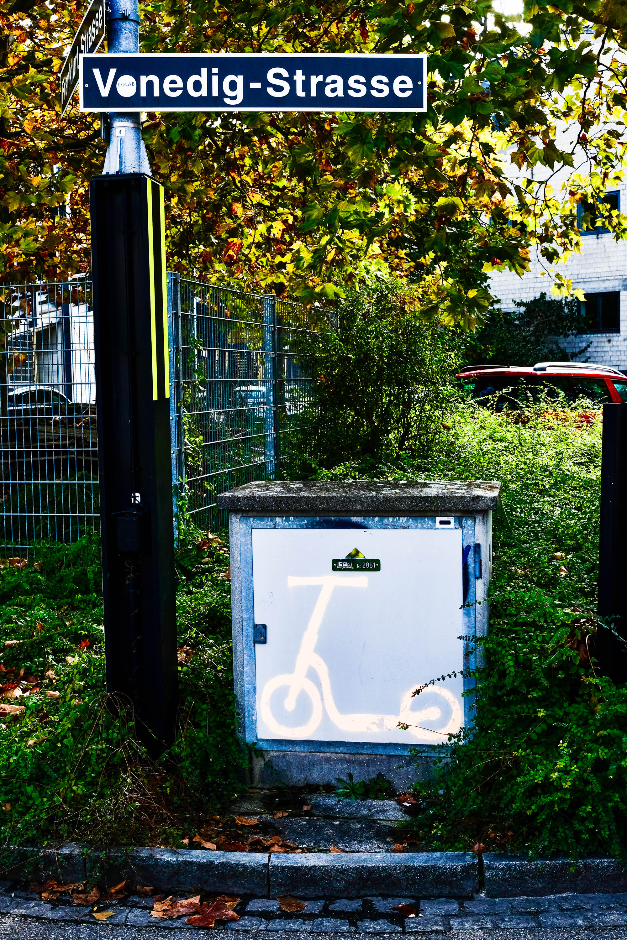 Auf dem Weg zum WORTSTELLWERK fühle ich mich, als ginge ich auf eine grosse Reise: Ich radle die Frankfurt-Strasse entlang, überquere die Strasse nach Lyon und bin am Ende in der Venedig-Strasse vor einem alten, zweistöckigen Fabrikgebäude. Die Wände bestehen aus silbernem Wellblech, die breiten Fensterrahmen sind knallrot, haben aber eine Patina aus Blütenstaub und von der Hitze aufgeplatztem Lack. Neben der Türe hängt auf der Höhe der Klinke eine metallene Aschenbecherbüchse mit Plastikdeckel, wie sie eben früher in Fabriken hing. Die Türe selbst ist bunt von Plakaten und Klebern und gleicht damit den Laternenpfosten rings herum. Als ich versuche, ein Foto davon zu machen, muss ich ständig Kleintransportern und Autos ausweichen, die zu den unzähligen Firmen, Werkstätten und Shops in den umliegenden Strassen fahren.