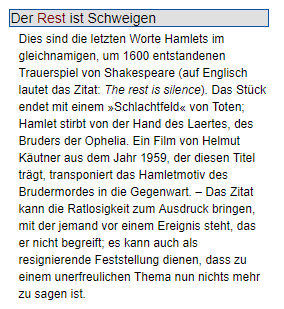 Auch Shakespeare begegnen wir in unserem sprachlichen Alltag immer wieder. Als einer der wichtigsten englischen Autoren hat besonders sein Werk Hamlet einen bleibenden Eindruck hinterlassen. Sätze des Theaterstücks haben sich über die Jahrhunderte hinweg in unserer Sprache verankert: „Sein oder Nichtsein“, „Es ist was faul im Staate Dänemark“ oder „Der Rest ist Schweigen“ sind zu Redewendungen geworden, die wir heute gebrauchen. Aber nicht nur das, auch dreitausend Wörter haben dank Shakespeare den Weg in die englische Sprache gefunden. Im Jahr 1755 erschien das ersten Wörterbuch Dictionary of the English Language von Samuel Johnson und kein Schriftsteller ist so oft zitiert wie er. Im Theaterstück Heinrich V zum Beispiel sind die Wörter „dishearten“, „divest“, „addiction“, „motionless“ und „leapfrog“ zum ersten Mal verwendet worden.