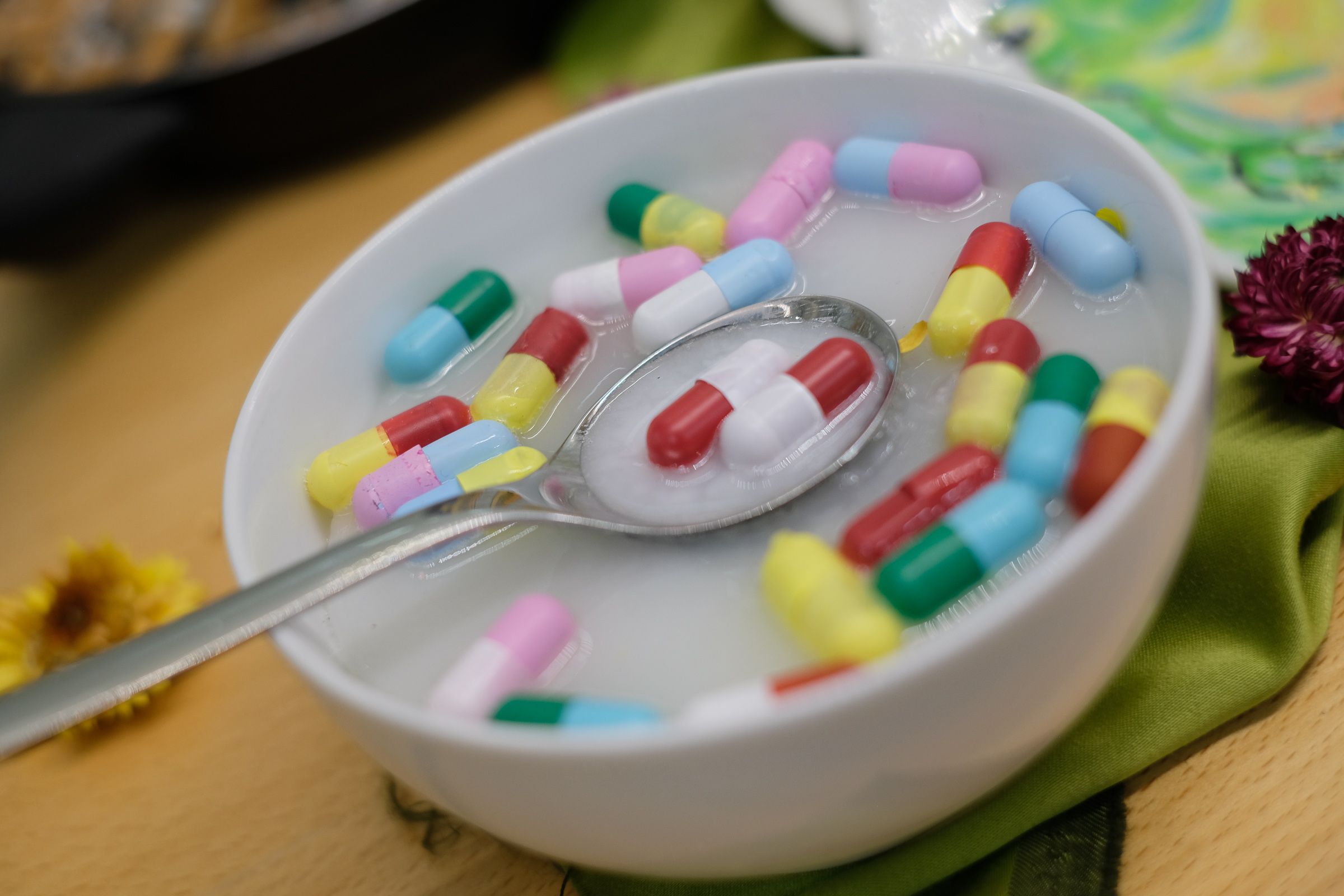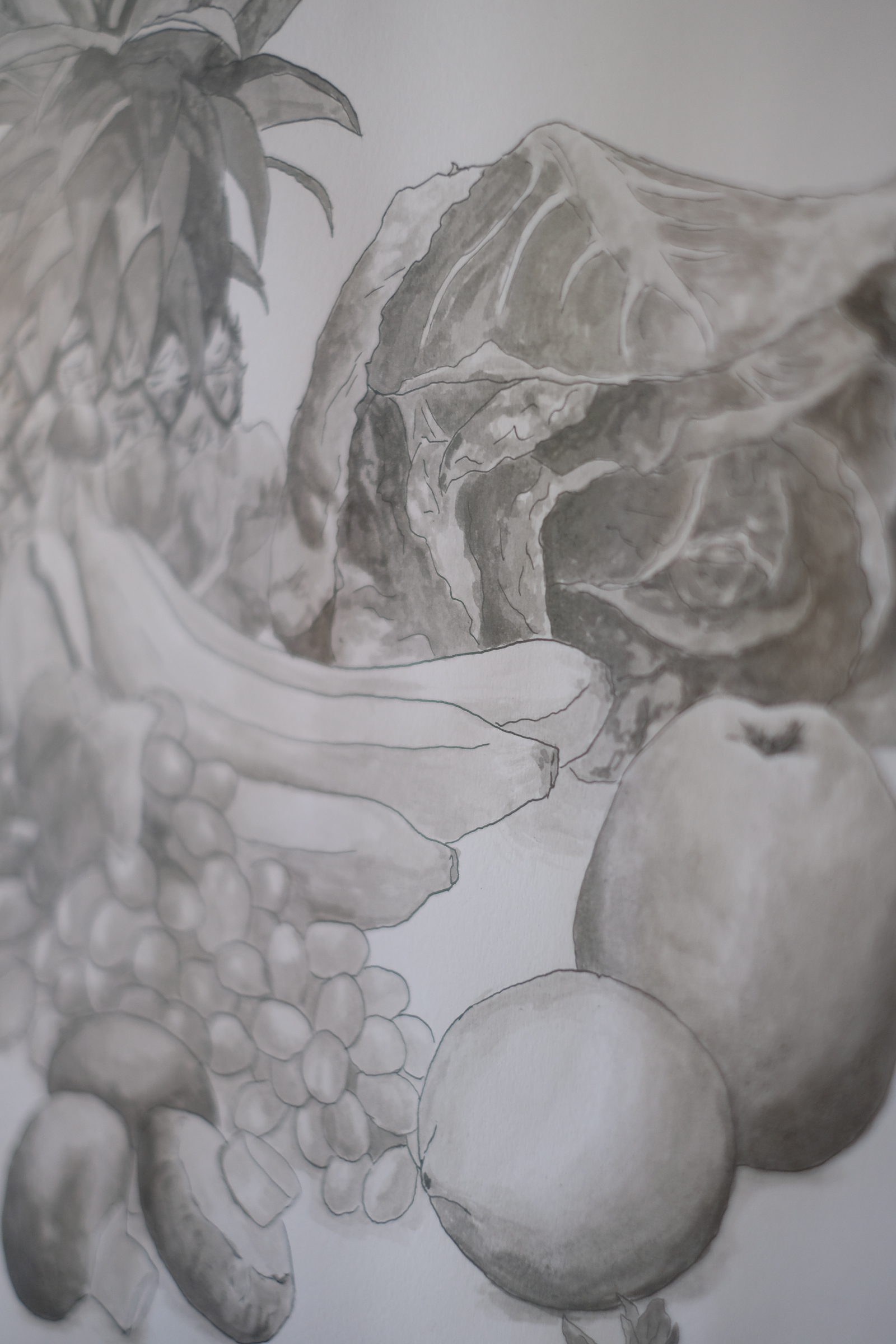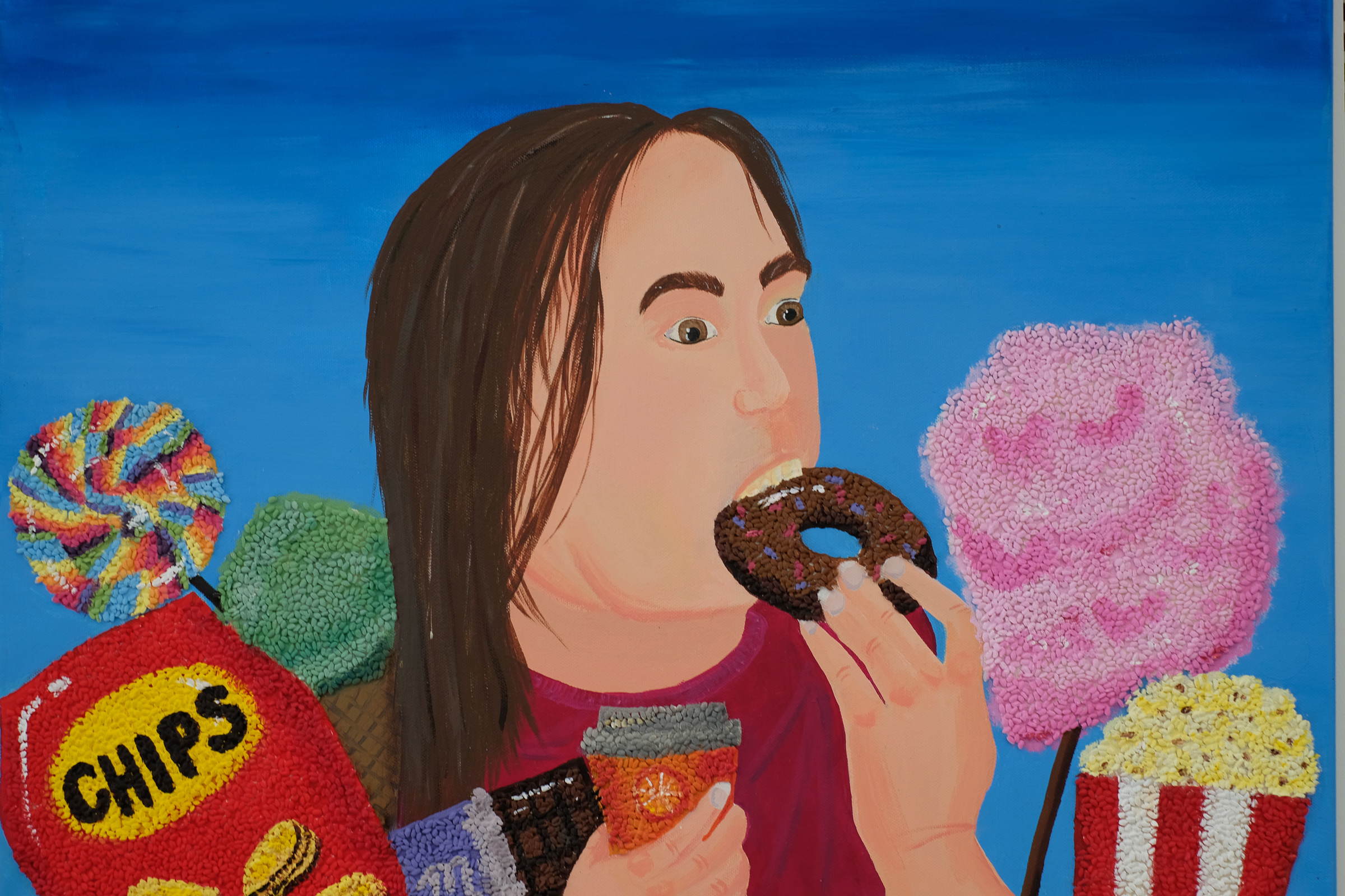 In den vier Wochen zwischen den Fasnachts- und den Osterferien drehte sich im Unterricht der BG-Schwerpunktklassen und der FMS-Klassen des Berufsfeldes Kunst alles um Essen. Wie kommt man von der Kulinarik zur Kunst? Oder kann man auch den umgekehrten Weg nehmen? Als Vorbereitung wurde gemeinsam ergründet, welche diesbezüglichen Positionen in der Kunstgeschichte bereits zu finden sind. Wir streiften das Genre Stillleben, fanden unzählige Beispiele dafür, wie sich tatsächliche Lebensmittel zu Kunstobjekten verwandelten und dadurch sogar der Begriff „Eat Art“ vom Künstler Daniel Spoerri geprägt wurde. Die gemeinsam betrachteten Werke behandelten Inhalte wie Vergänglichkeit, Geselligkeit oder konnten als Gesellschaftskritik verstanden werden. Durch diese Recherche eröffneten sich zahlreiche mögliche Interpretationsansätze für ein eigenes Kunstwerk. Nach all dem Sammeln und Analysieren von Wissen ging es über zum nächsten Schritt – der Arbeit am selbstständigen Beitrag für die Ausstellung. Dies war ein gleichsam schöner wie auch fordernder Prozess. Die Schülerinnen und Schüler hatten völlige Wahlfreiheit bezüglich Form und Inhalt der eigenen Arbeit. Die Ausstellung hat gezeigt, dass diese Freiheit produktiv genutzt wurde. Es wurden Recherchen über das Thema Food – Waste betrieben, Installationen konzipiert, Farben gemischt, die nahe an jene echter Lebensmittel heranreichten, um schliesslich auf Leinwand gebannt zu werden, usw. Die Vielfalt des vorgegebenen Themas wurde bravourös widergespiegelt.