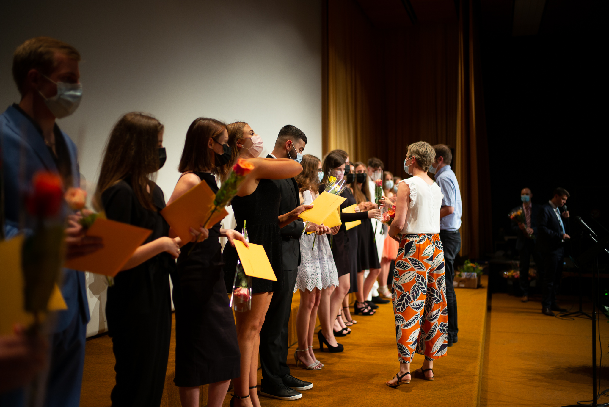 In der letzten Zeit, als die Versammlungsfreiheit eingeschränkt werden musste, ob in Gebetshäusern, an Versammlungsorten oder an der Schule, war es wesentlich schwieriger, einen Gemeinschaftssinn am Leben zu halten und sich gegenseitig anzuspornen. Und trotz aller Motivationskünste der Profis, ich meine damit uns Lehrerinnen und Lehrer: Wer nicht selber daran geglaubt hat, diese Schule und die Abschlussprüfungen erfolgreich zu bestehen, und damit auch andere anspornte, der oder die sitzt jetzt nicht hier. Ich danke, dass Sie diesen Glauben an sich nicht aufgegeben haben und wünsche Ihnen, dass Sie ihn behalten, um noch so manche weitere Erfolge erzielen und feiern zu können.