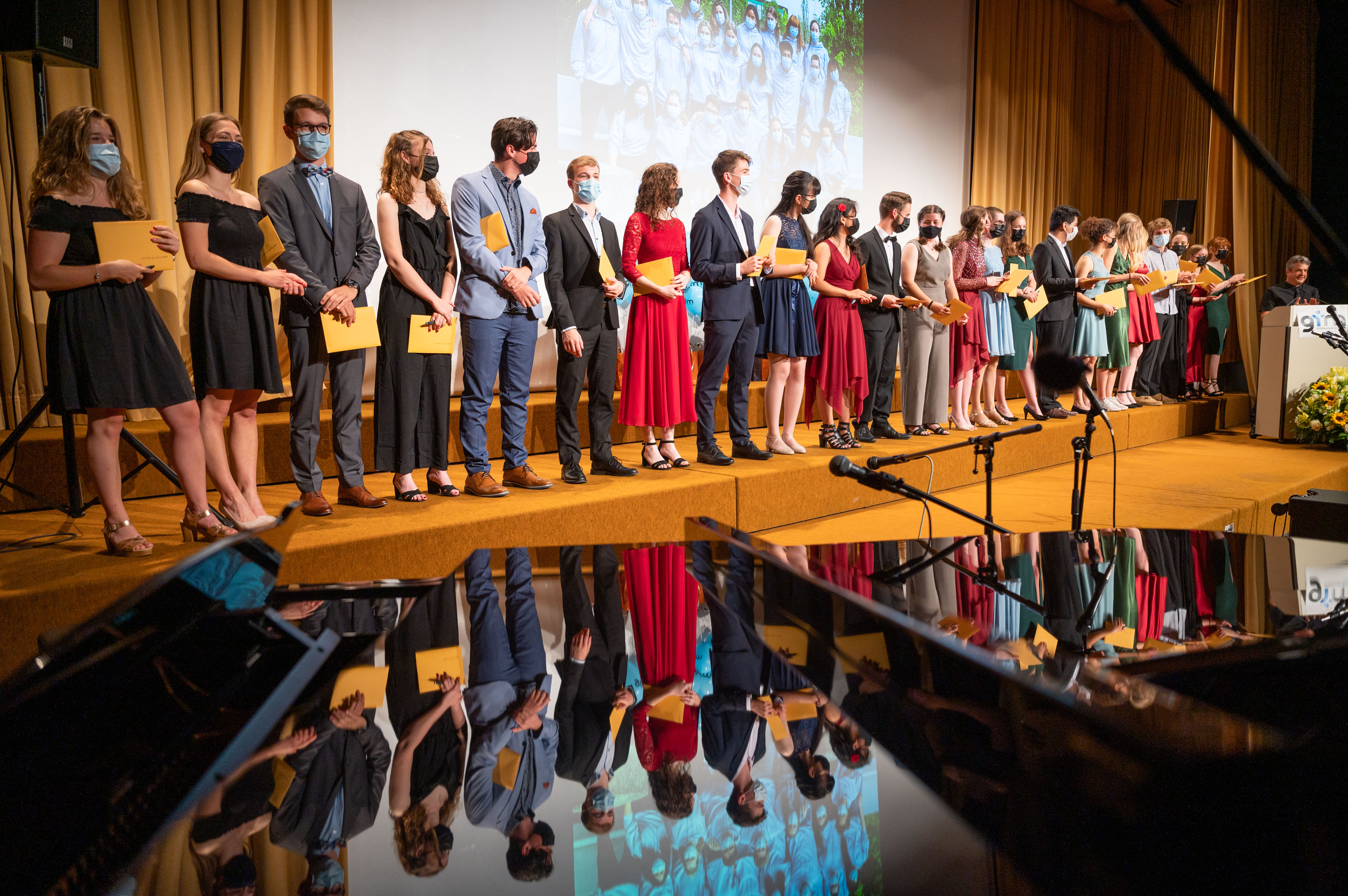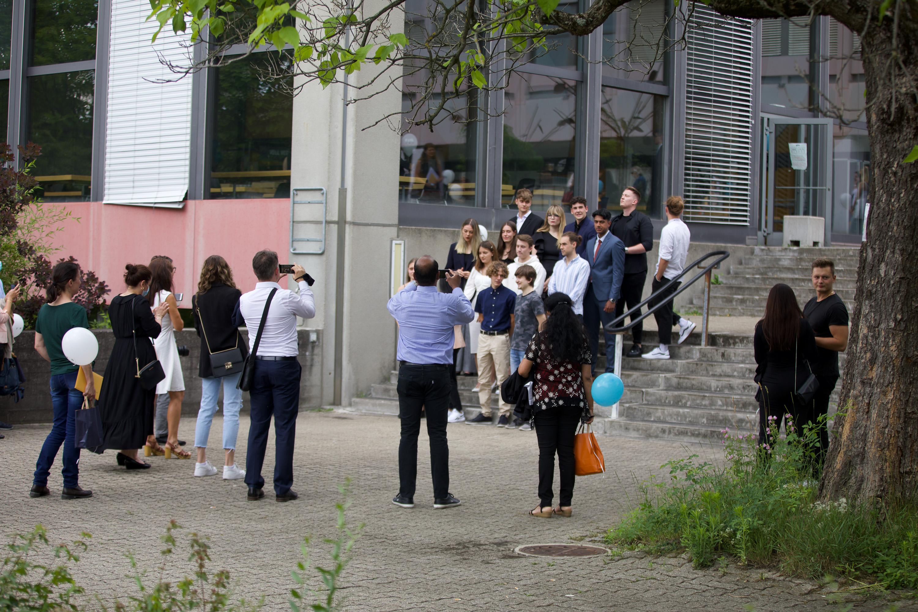 Sie war angekündigt worden als Übergabe der Maturazeugnisse. Aber wie letztes Jahr nennen wir sie trotzdem Maturfeier. Denn zum Glück durften auch dieses Jahr die Eltern und Lehrpersonen dabei sein und zusehen, wie unsere 137 Maturi und Maturae ihre Zeugnisse bekamen, klassenweise gestaffelt und leider ohne Apéro, aber gleichwohl mit musikalischer Umrahmung, mit Ansprache der Rektorin Brigitte Jäggi sowie mit einzelnen Beiträgen von Klassen und Klassenlehrpersonen. Dieses Jahr haben wir einen besonders hohen technischen Aufwand betrieben, um auch weiteren Angehörigen und Freunden in einem Livestream die Teilnahme zu ermöglichen. In unserem Zusammenschnitt unten zeigen wir nun die Zeugnisübergaben aller Klassen und einige Acts des Rahmenprogramms. Unter dem Film folgen fotografische Impressionen von Adrian Marbacher und Daniel Nussbaumer. Die Klassenfotos in voller Auflösung bilden den Schluss der Galerie. Viel Spass beim Anschauen!