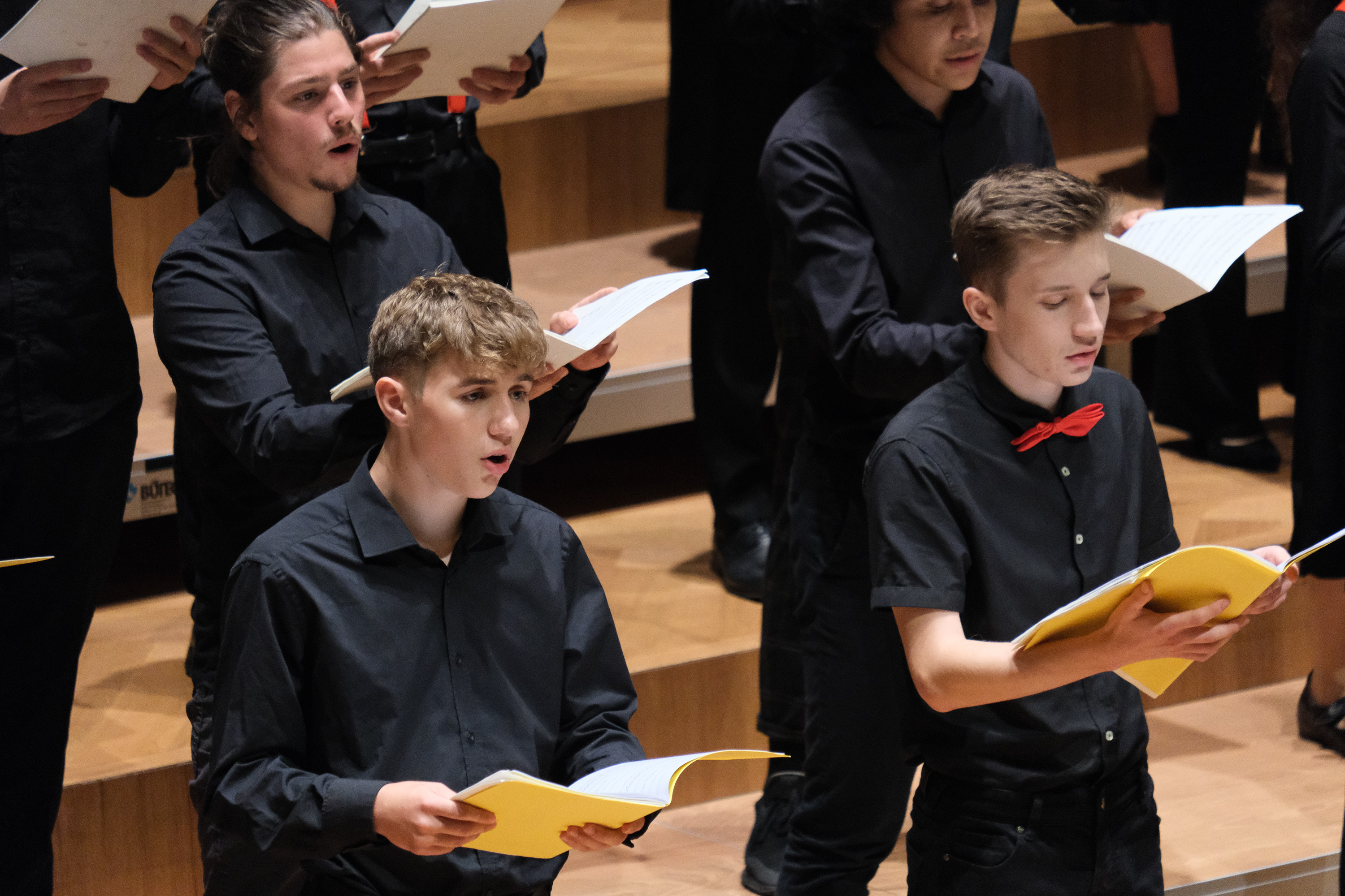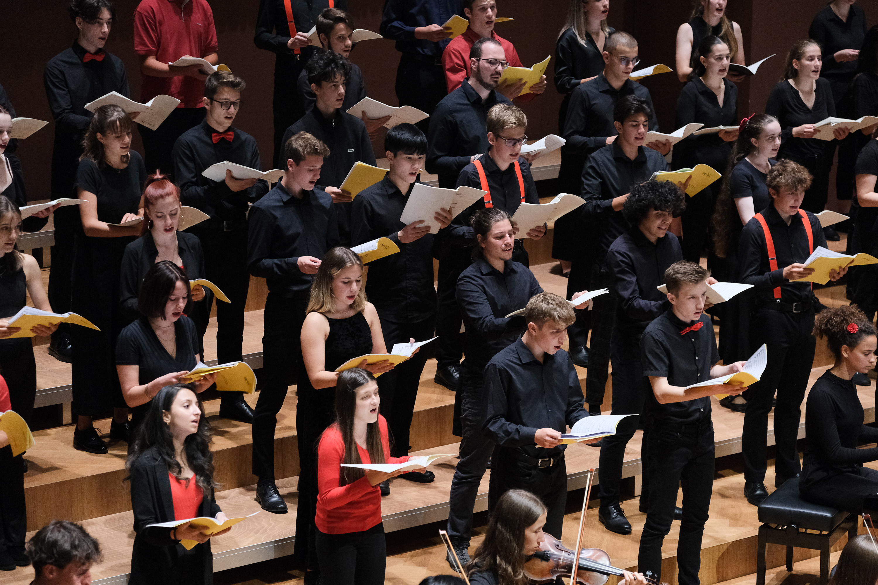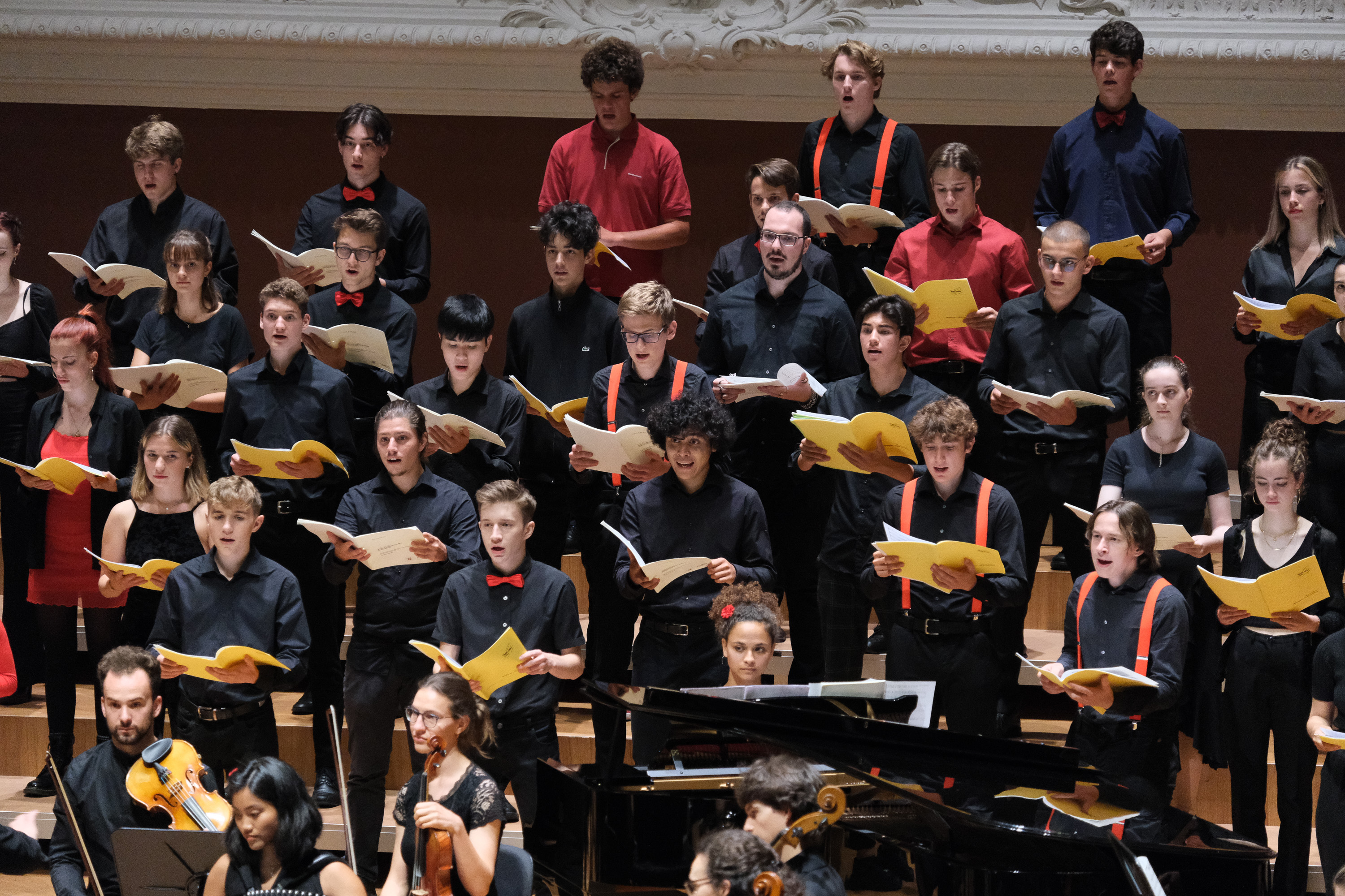 Die Schülerinnen und Schüler waren bereits den ganzen Tag im Stadtcasino am Proben. Etwa die Hälfte von ihnen steht zum ersten Mal mit dem Chor auf der Bühne. Für andere bedeutet dieser Auftritt jedoch Abschiednehmen. Die letztjährigen Viertklässler dürfen noch ein allerletztes Mal mitwirken. «Da wir nie ein Abschlusskonzert hatten, ist es schön, dass wir nochmals mitsingen dürfen. Es ist wie nochmals ein Abschluss», meinen einige von ihnen. Christoph Huldi schätzt die Stimmung im Chor ein: «Jetzt, wo wir an diesem grandiosen Ort singen, sind sie euphorisch, sehr sehr motiviert.»