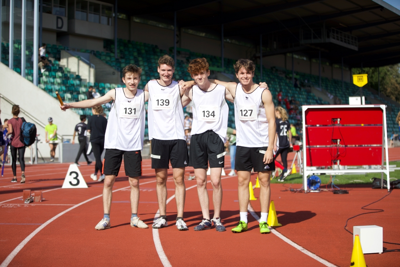 Schwedenstaffel Matthias (400m), Jannis (300m), Dominic (100m), Tim (200m). Platz 4 in 2.08.90