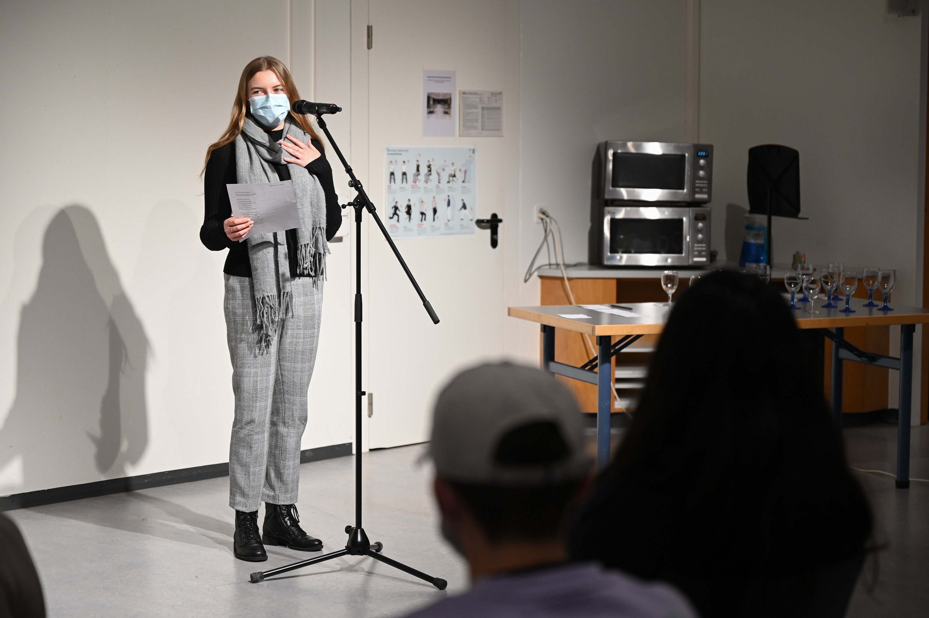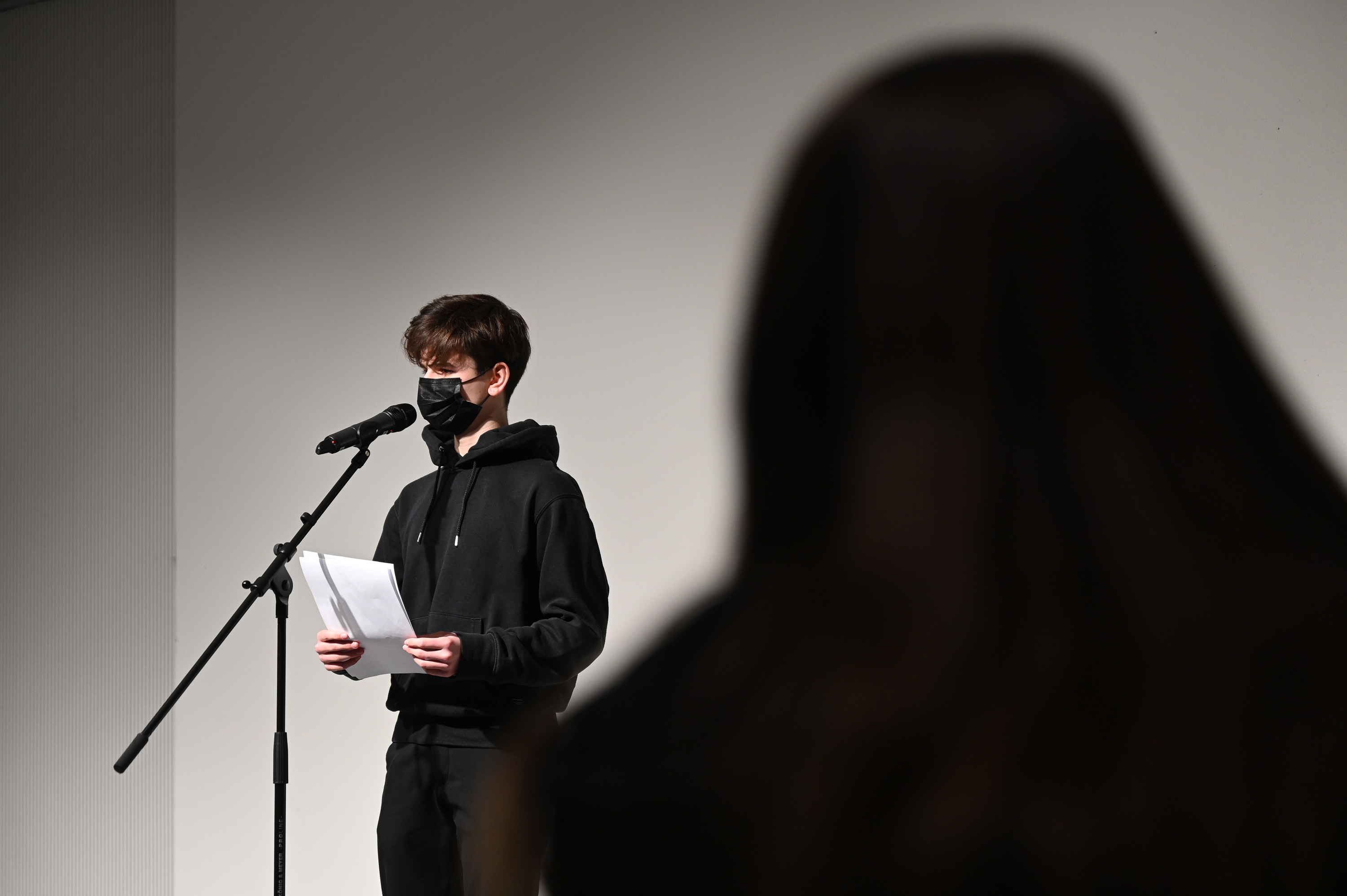 Genauso eindrücklich schilderten mehrere Schüler:innen in der Form eines Bewusstseinsstroms aufwühlende und ehrliche Einsichten in ihr Innenleben. Es folgte eine spannende Reflexion über den Begriff der Heimat und eine lyrisch-kulinarische Beschreibung der Adventszeit. Inklusive Ausblick auf das bevorstehende (Corona)-Redeverbot für Onkel Erich* am Familienweihnachtsessen. Auch wurde an diesem Nachmittag mit Klischees über arabische Grossfamilien aufgeräumt. Jalla!