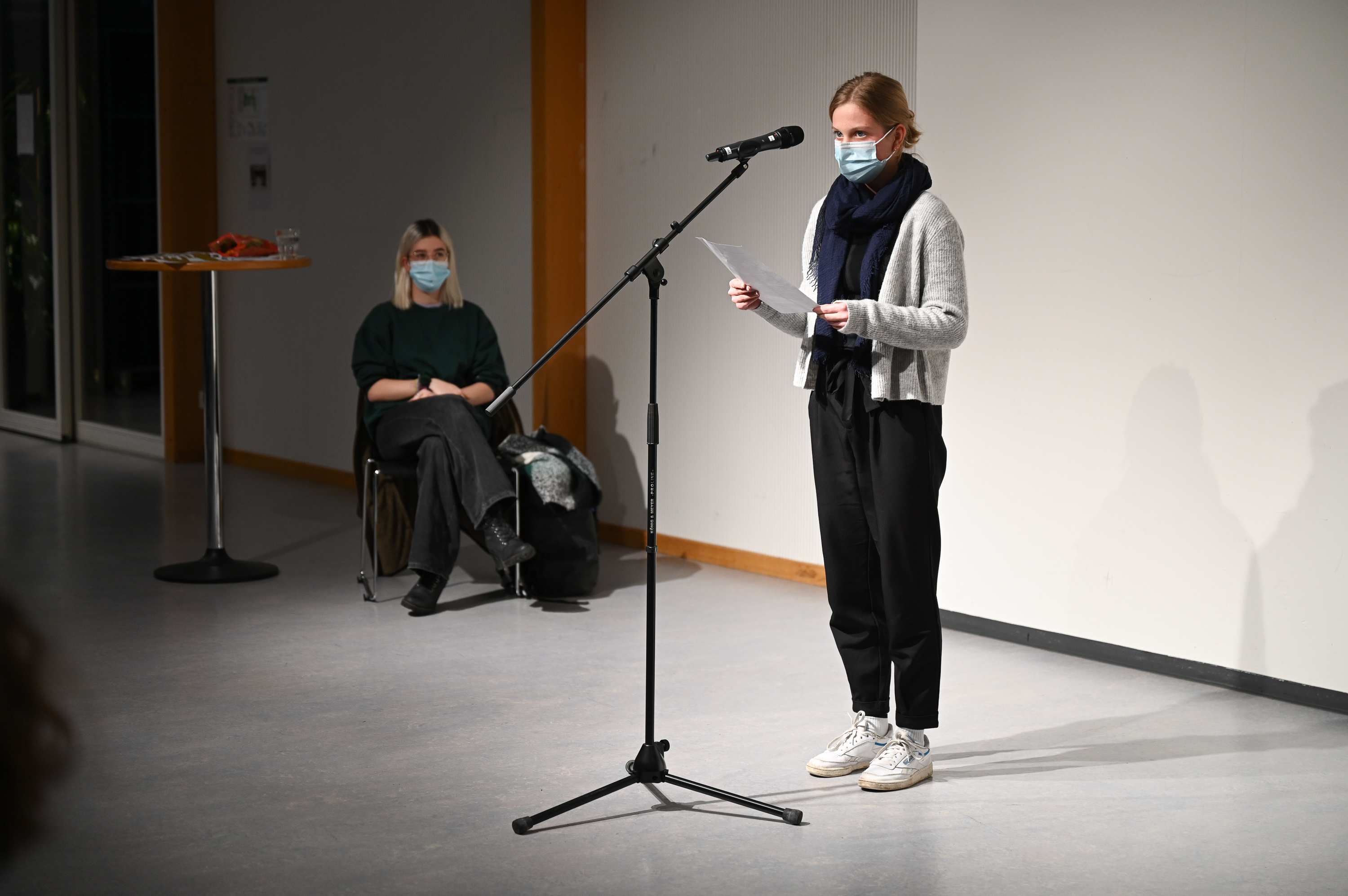 Bereits in der letzten Printausgabe berichteten wir über die vorangegangenen Workshops mit den erfahrenden Slammer:innen Caterina John und Dominik Muheim in Zusammenarbeit mit dem jungen Schreibhaus Wortstellwerk. Die Jugendlichen traten mit den daraus entstandenen Texten im Foyer des Gymnasiums gegeneinander an. Trotz dieses Wettbewerbscharakters, der einem Slam innewohnt und ihm eine gewisse Spannung verleiht, stand die Auftrittserfahrung als solche im Vordergrund. Dazu gehört viel Mut: