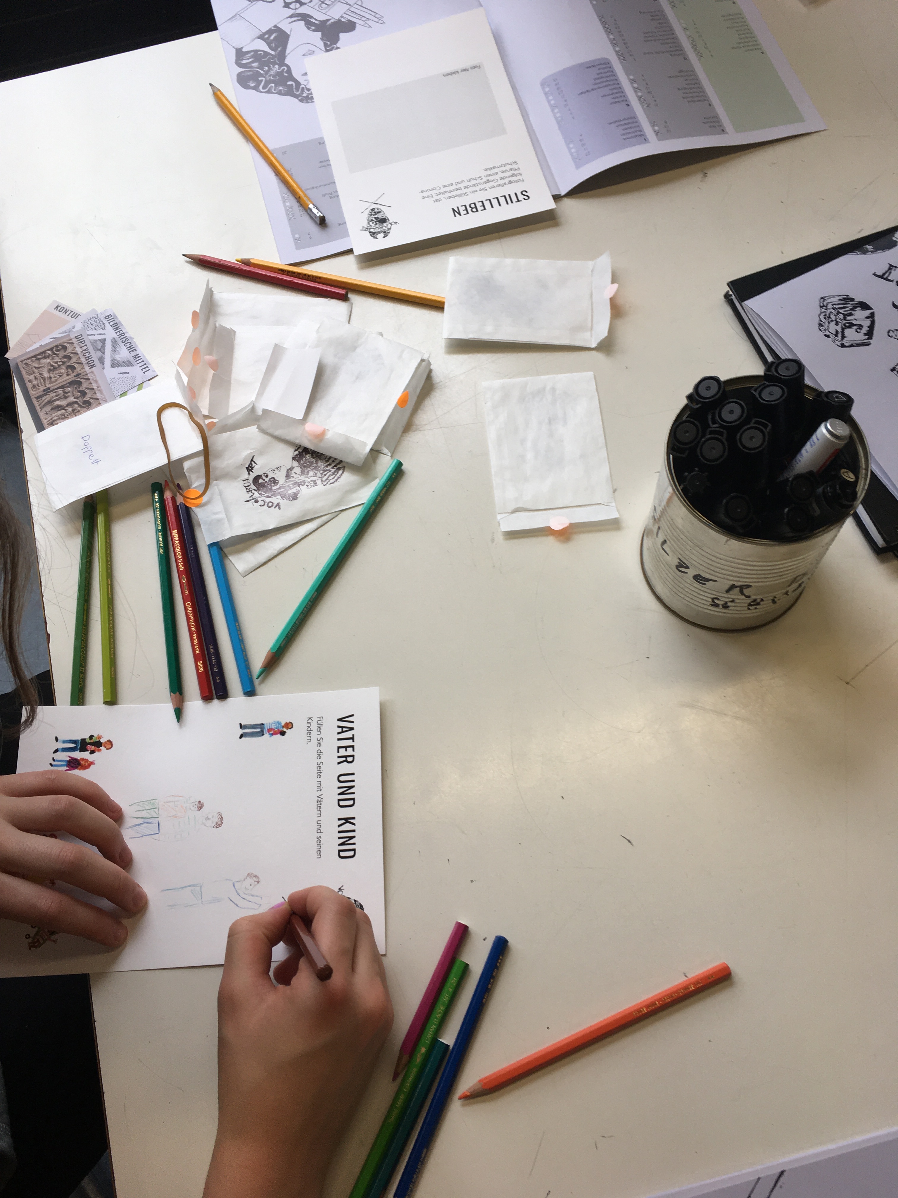 An einem gemeinsamen Anlass der vier Klassen wollten wir die Schüler*innen bei Suppe und Spielen die Lücken in ihren Heften füllen lassen – dieser Anlass fiel leider der Corona -Schere zum Opfer. Trotzdem bekamen natürlich alle Teilnehmer*innen die fehlenden Stickers, die das Sammelalbum zu einem umfangreichen Lehrmittel für Bildbetrachtung komplettieren.