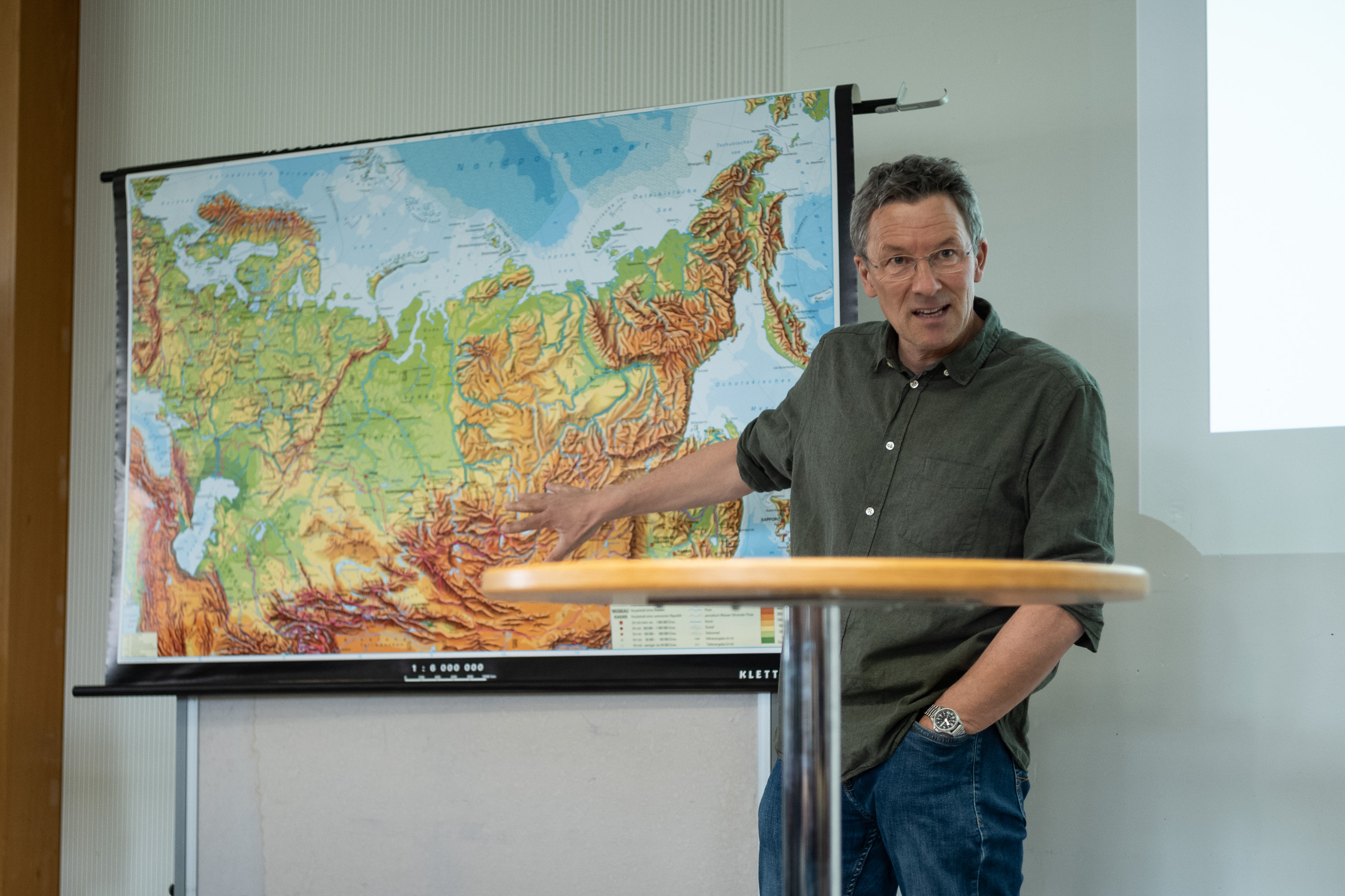 Den informativen Einstieg, den die drei Lehrer Alexander Bieger (Wirtschaft und Recht), Markus Hilfiker (Geographie) und Wilfried Ebert (Geschichte), präsentieren, ist hilfreich. So sind gewisse Fakten einmal geklärt. Herr Hilfiker berichtet uns über die geographische Lage der Ukraine. Durch seine Ausführungen wird klar, welche Vorzüge die Ukraine für Russland hat. Die Ukraine hat ein kontinentales Klima und fruchtbare Böden und ist so die Kornkammer Europas.