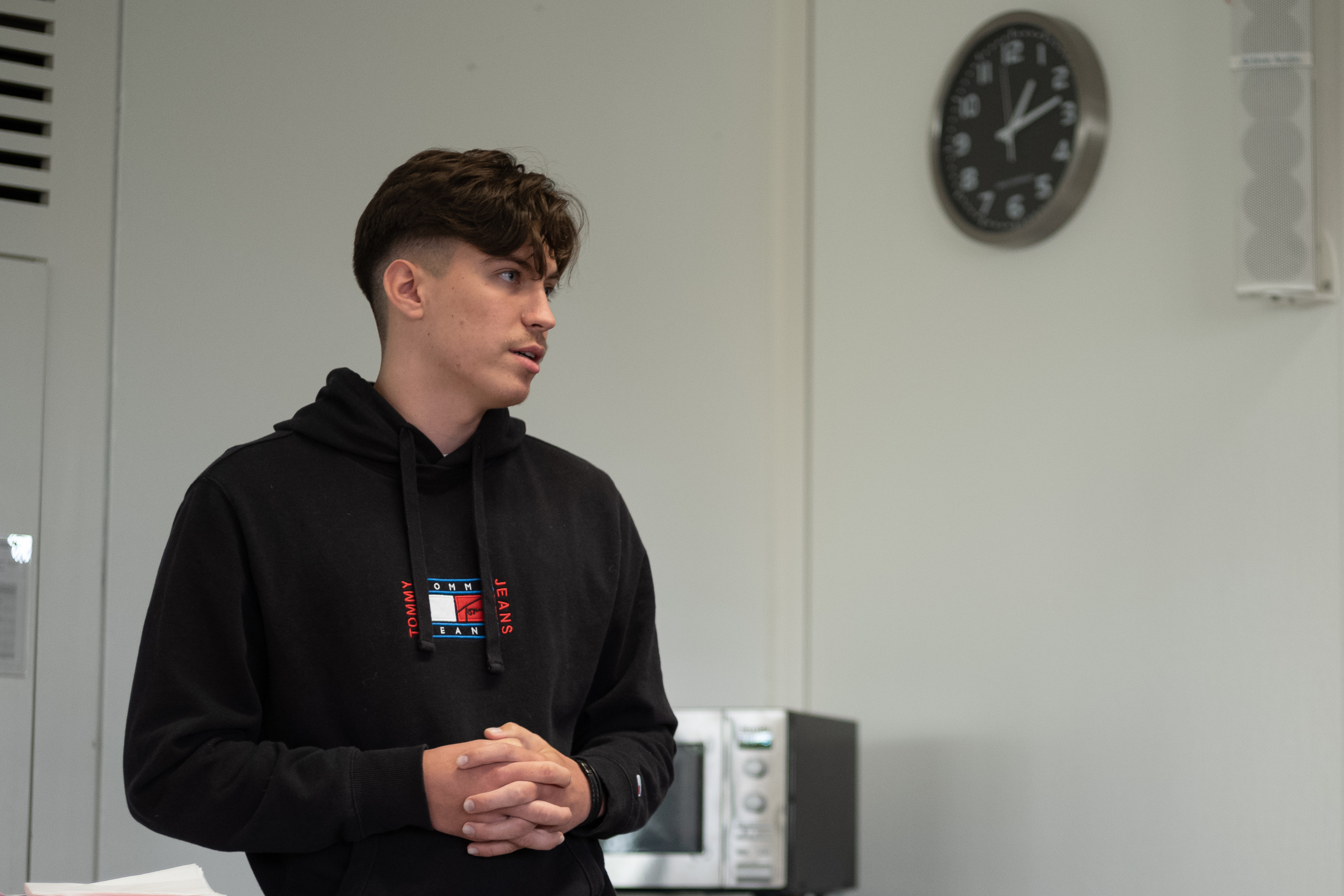 Ich sitze im Foyer und warte auf den Beginn der Mittagsveranstaltung. Dabei überlege ich, ob ich mir ein Sandwich der Klassen 3Eb und 3WZ für die Ukraine-Sammelaktion kaufen soll. Doch nun strömen immer mehr Schülerinnen und Schüler ins Foyer und versuchen sich noch einen Platz zu ergattern. Die Veranstaltung interessiert mehr Schüler des Gym Muttenz, als die Organisatoren wahrscheinlich erwartet haben. Es herrscht eine aufgeregte Stimmung und es wird teils schon heftig über das Thema diskutiert. Es geht den meisten wie mir. Wir werden seit dem 24. Februar mit Berichten, Bildern und Videos auf allen Kanälen überflutet. Obwohl wir die Situation auch im Unterricht besprechen, können wir immer noch nicht alles verstehen und haben keinen Überblick über die Folgen des Konfliktes in der Ukraine oder auch über Putins Krieg, wie er später genannt wird. Es ist auch spürbar, dass es schwierig ist für uns, zwischen korrekten Informationen und Propaganda zu unterscheiden.