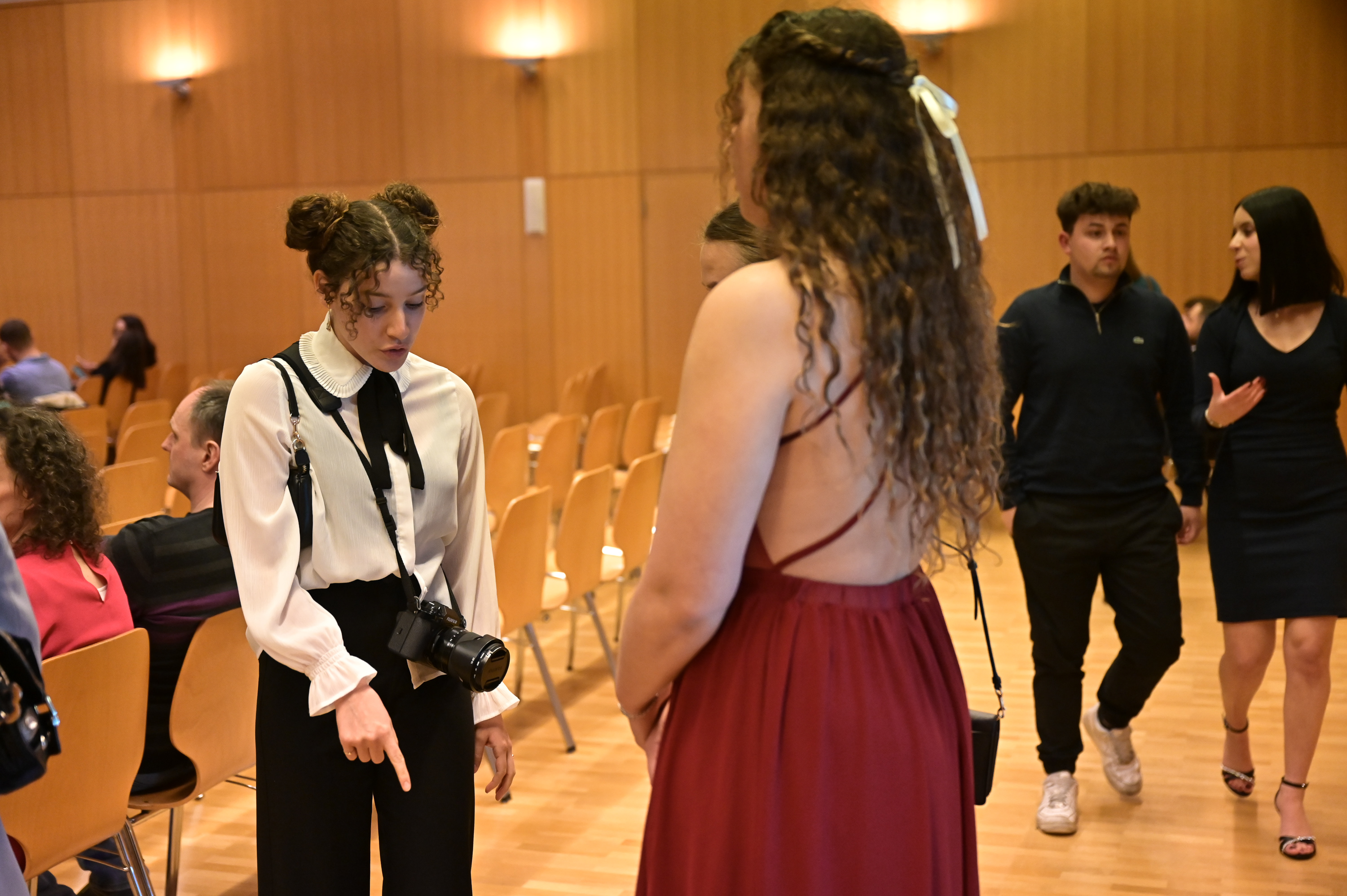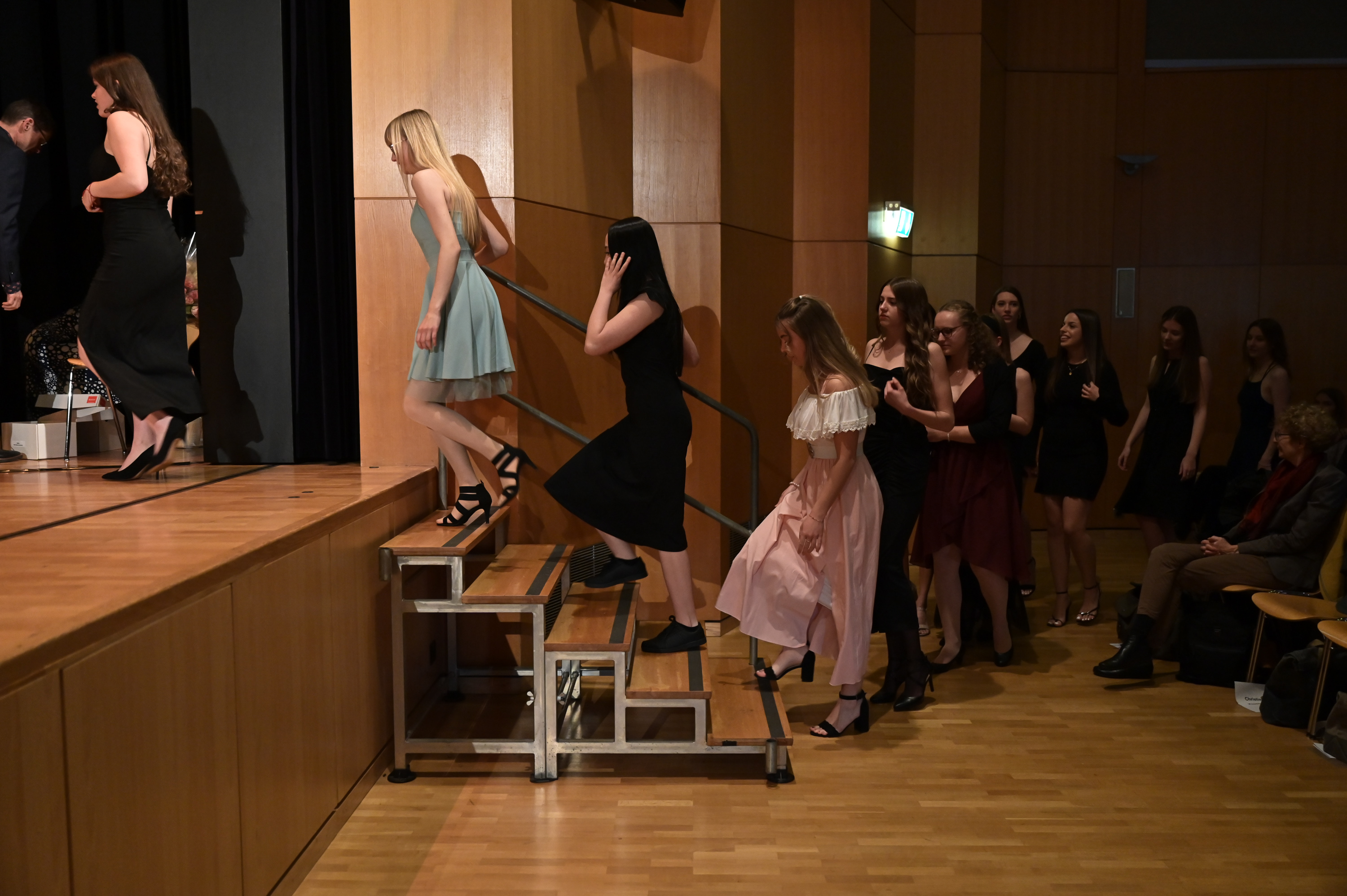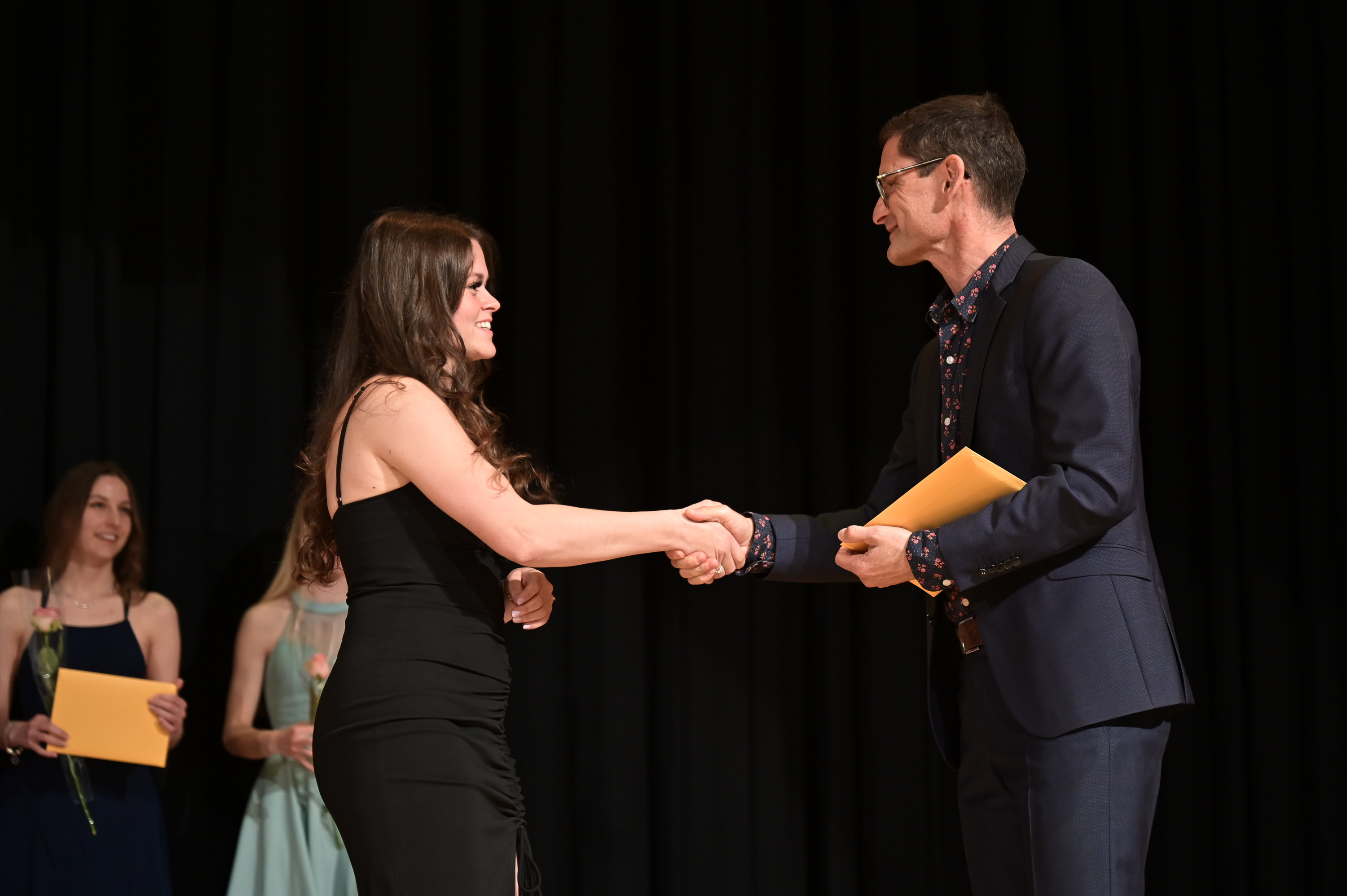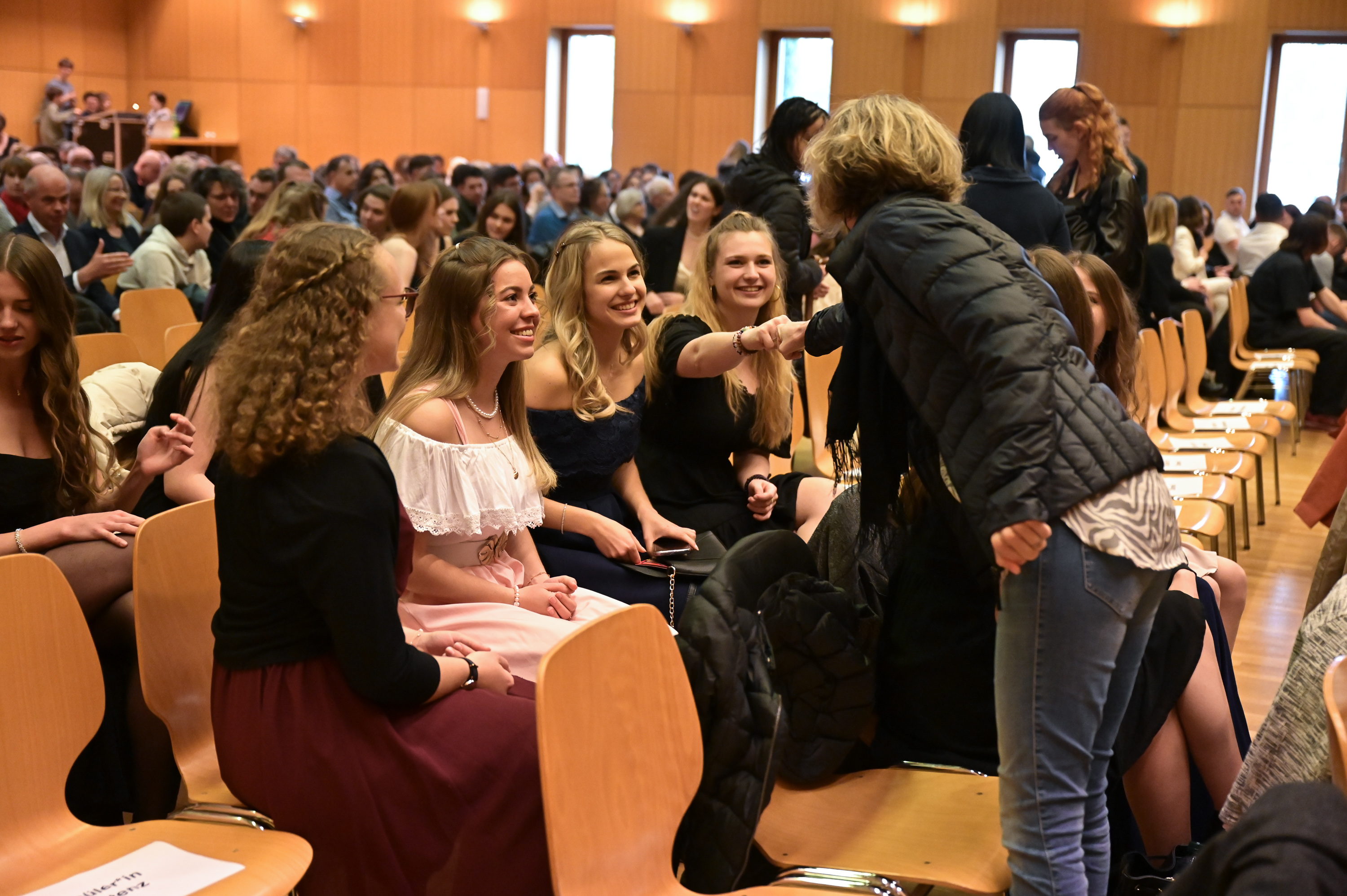 Dennoch stellten natürlich die Zeugnisübergaben den Hauptzweck der Feier dar. Nach dem Lied «I wünsch dir e Rose» durften zwei Kurse aus Basel mit 21 erfolgreichen Absolvent*innen, ein Kurs aus Liestal mit 20, zwei Kurse aus Münchenstein mit 40, ein Kurs aus Oberwil mit 21 und ein Kurs aus Muttenz mit 18 frischgebackenen Fachmaturand*innen ihr Zeugnis und – eben – eine schöne Rose entgegen nehmen. Zudem bekamen alle Fachmaturand*innen, die insgesamt einen Schnitt von 5,25 oder mehr erreicht hatten, eine zusätzliche Urkunde und einen Gutschein überreicht.