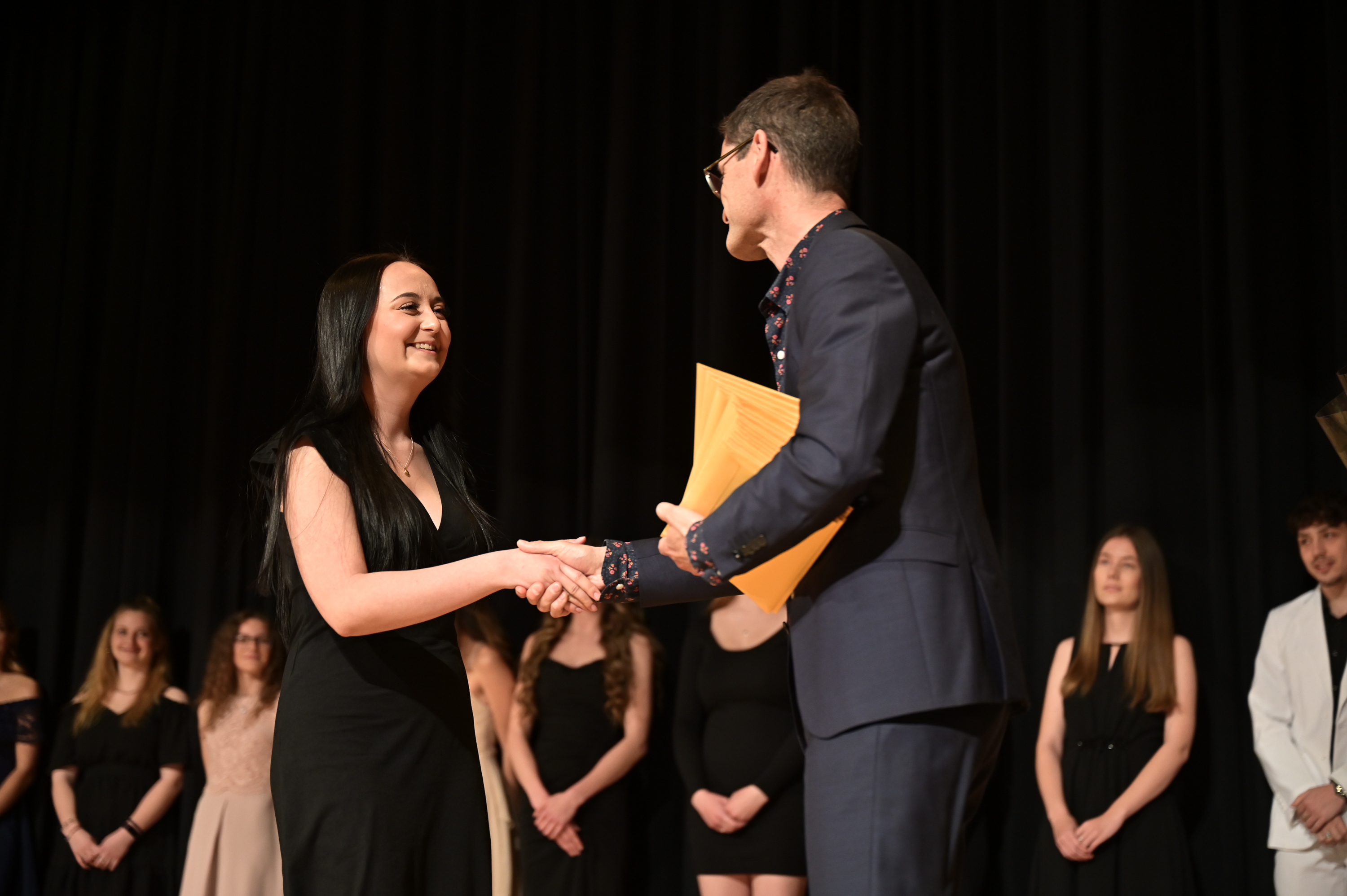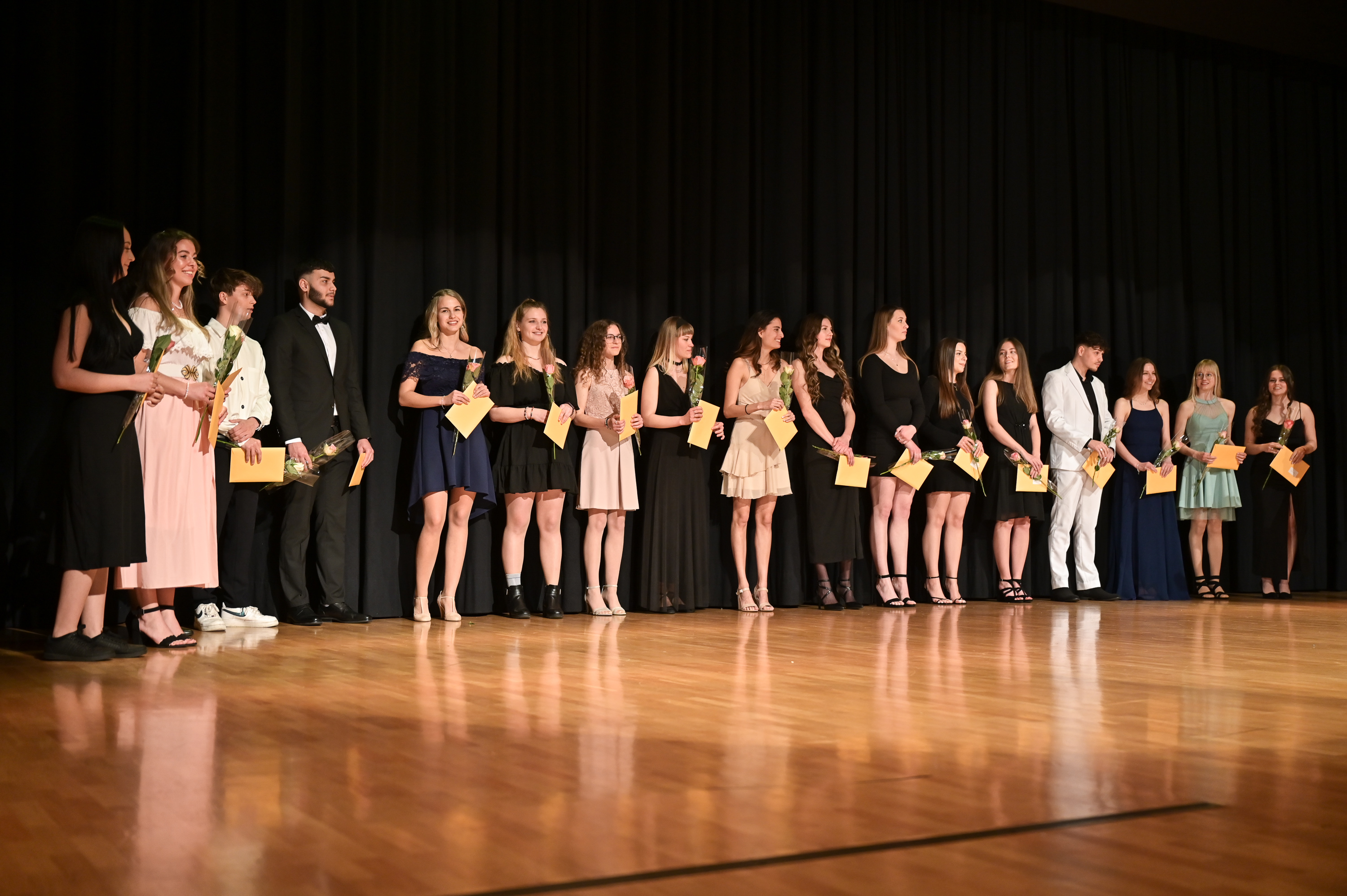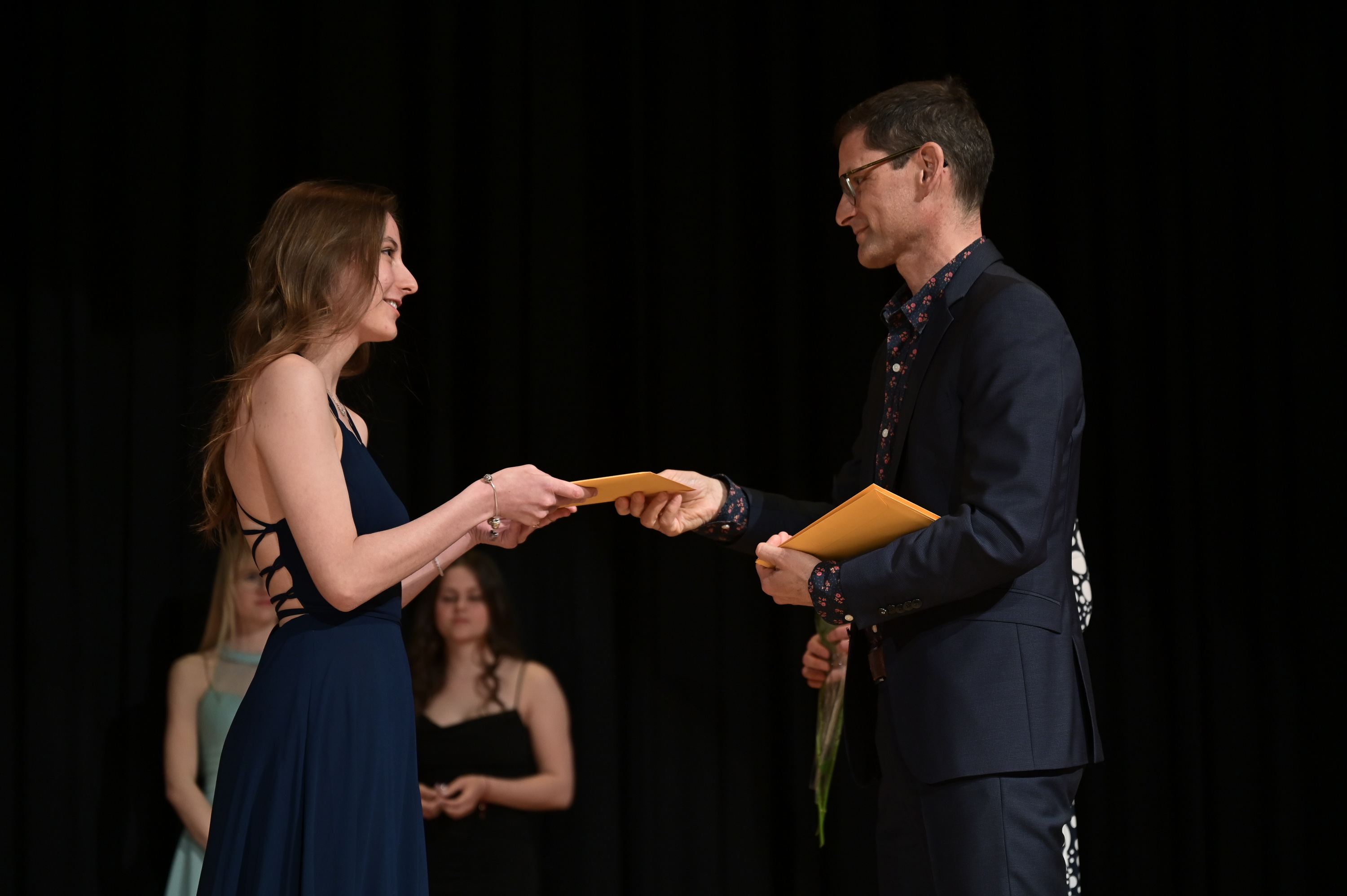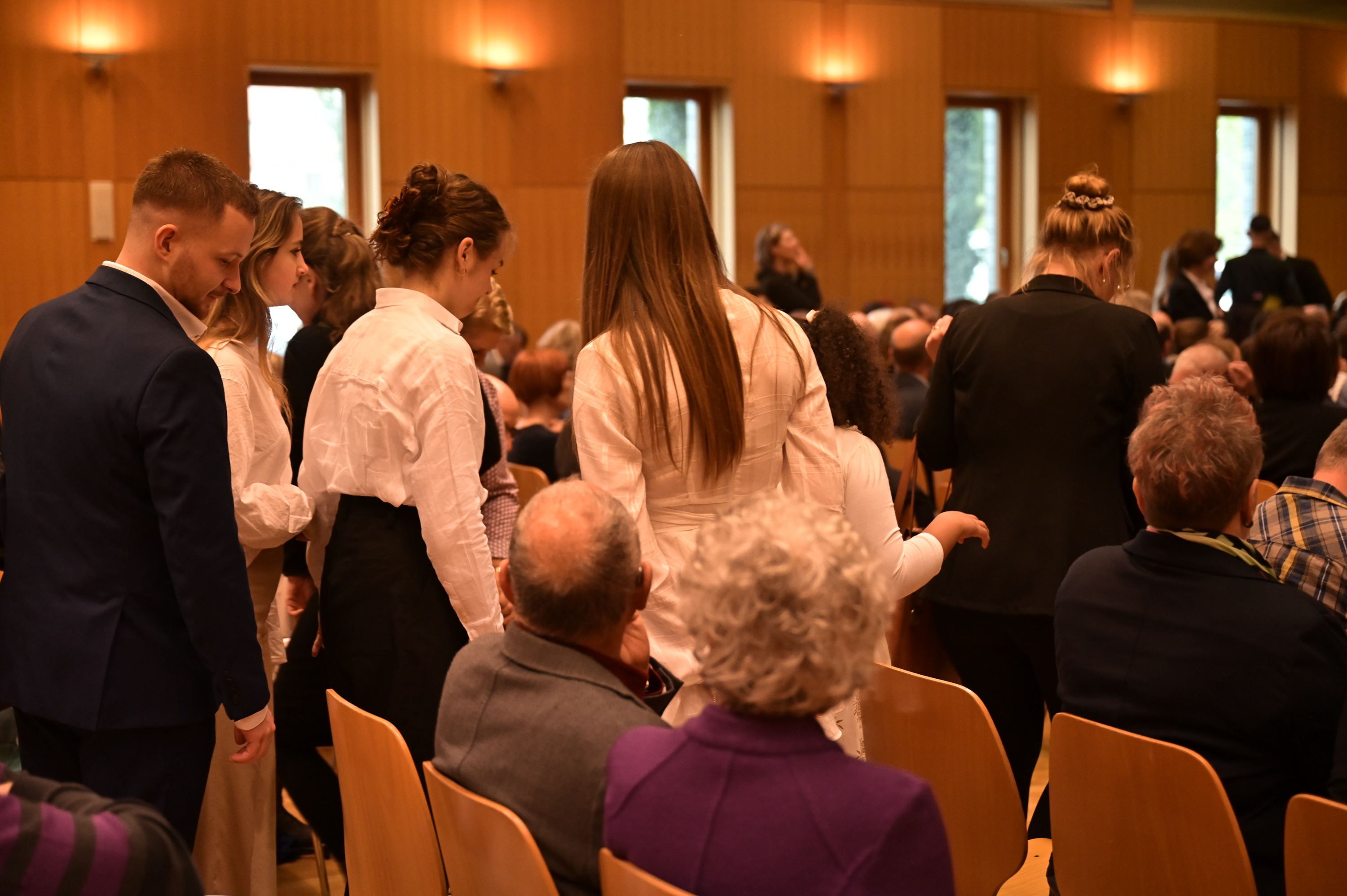 Dennoch stellten natürlich die Zeugnisübergaben den Hauptzweck der Feier dar. Nach dem Lied «I wünsch dir e Rose» durften zwei Kurse aus Basel mit 21 erfolgreichen Absolvent*innen, ein Kurs aus Liestal mit 20, zwei Kurse aus Münchenstein mit 40, ein Kurs aus Oberwil mit 21 und ein Kurs aus Muttenz mit 18 frischgebackenen Fachmaturand*innen ihr Zeugnis und – eben – eine schöne Rose entgegen nehmen. Zudem bekamen alle Fachmaturand*innen, die insgesamt einen Schnitt von 5,25 oder mehr erreicht hatten, eine zusätzliche Urkunde und einen Gutschein überreicht.
