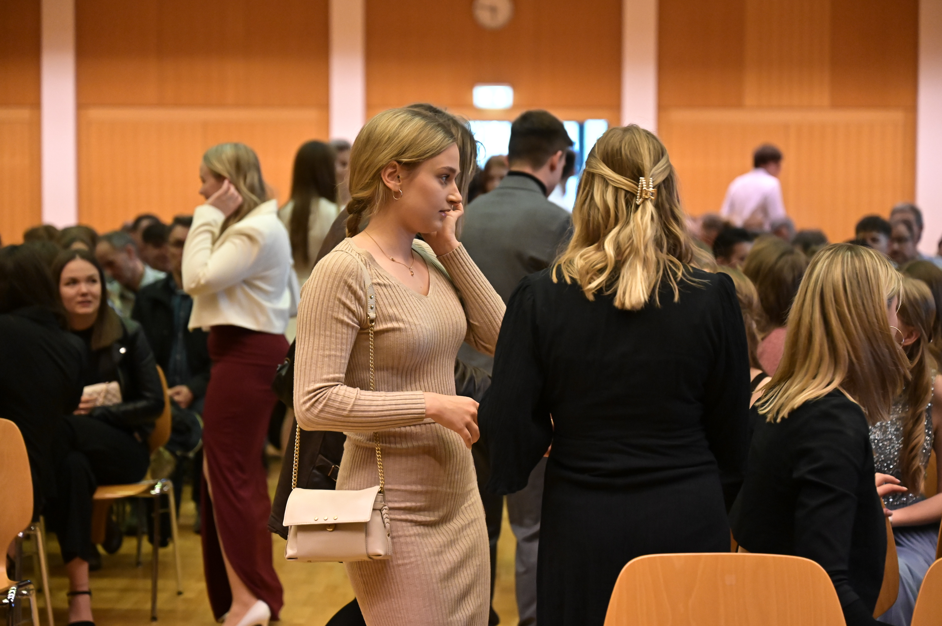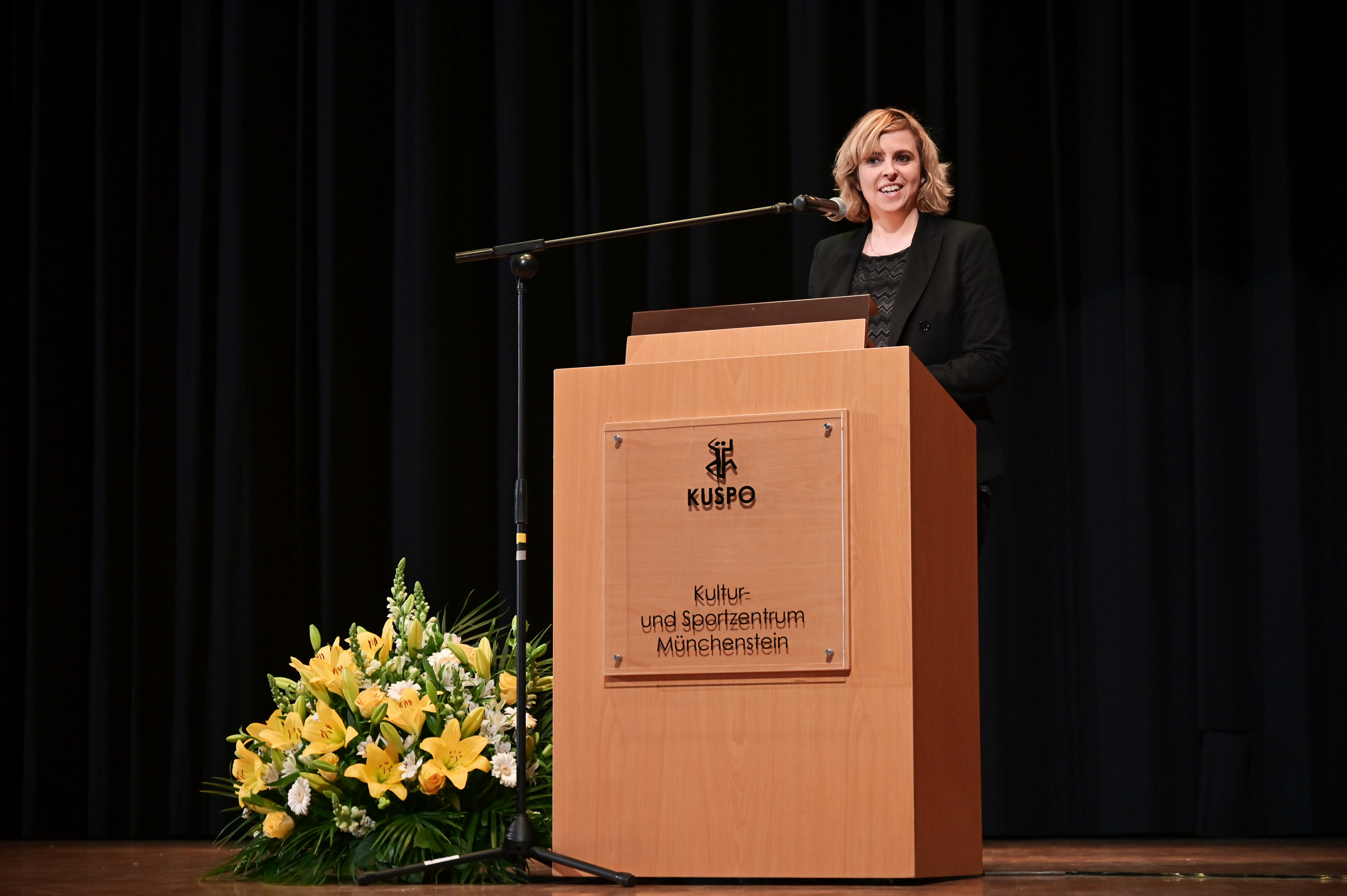 Natürlich durfte auch der Dank an alle Beteiligten und Helfenden nicht fehlen, bevor die Gastrednerin Miriam Locher das Rednerpult übernahm. Sofort wurde klar, dass hier eine Frau spricht, die weiss, warum sie hier ist und die Welt der Absolvent*innen kennt, ist sie doch selber Lehrerin und zwar auf der Kindergarten- und Unterstufe in Aesch. Aufgewachsen in Münchenstein und an der PH in Liestal studiert, ist sie heute Landrätin und Mitglied der Bildungs- Kultur- und Sportkommission und Präsidentin der SP Baselland. Dank starkem Bezug zur Region, pädagogischem Insiderwissen und viel Frauen-Power wusste sie das Publikum anzusprechen und zu unterhalten, wie der anschliessende Applaus zeigte. Für Miriam Lochers Festrede planen wir einen eigenen Beitrag in diesem Blog.