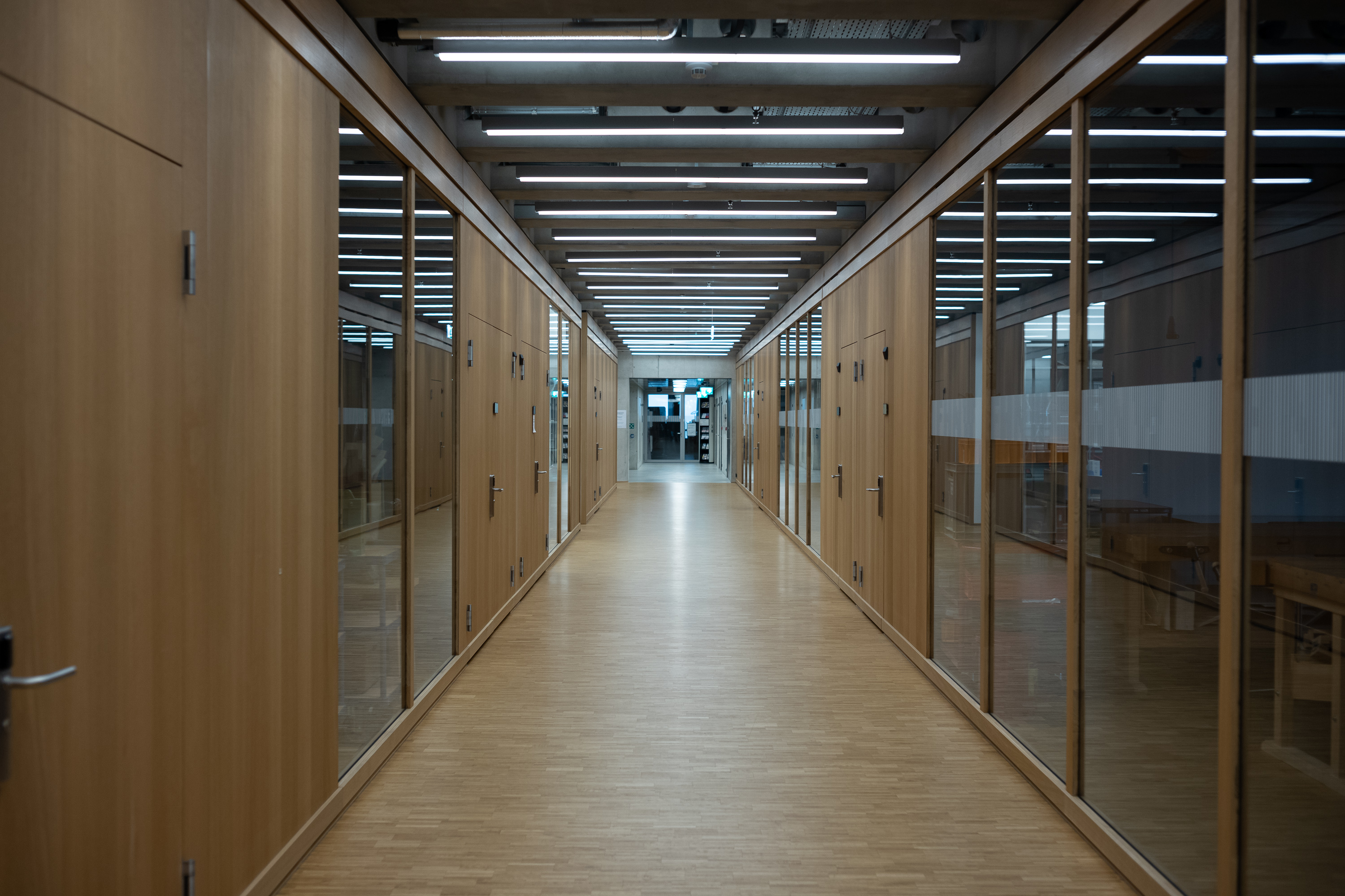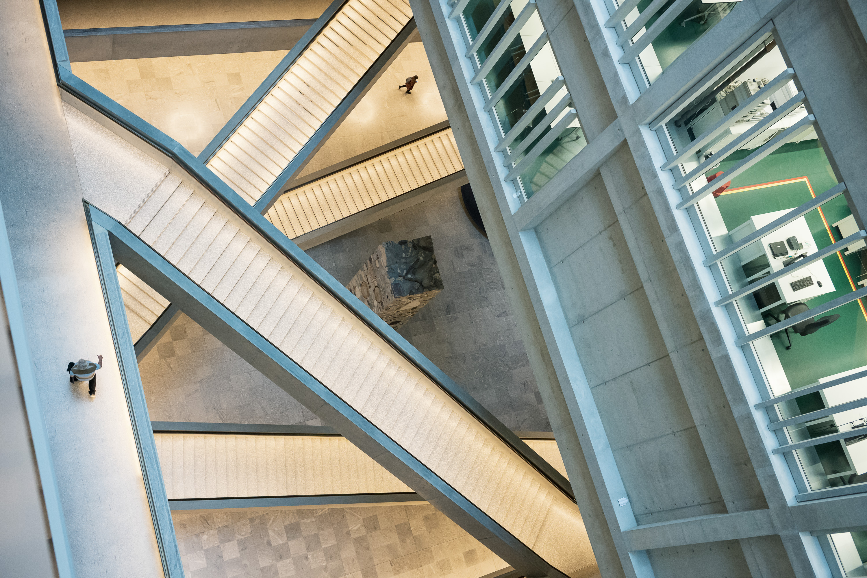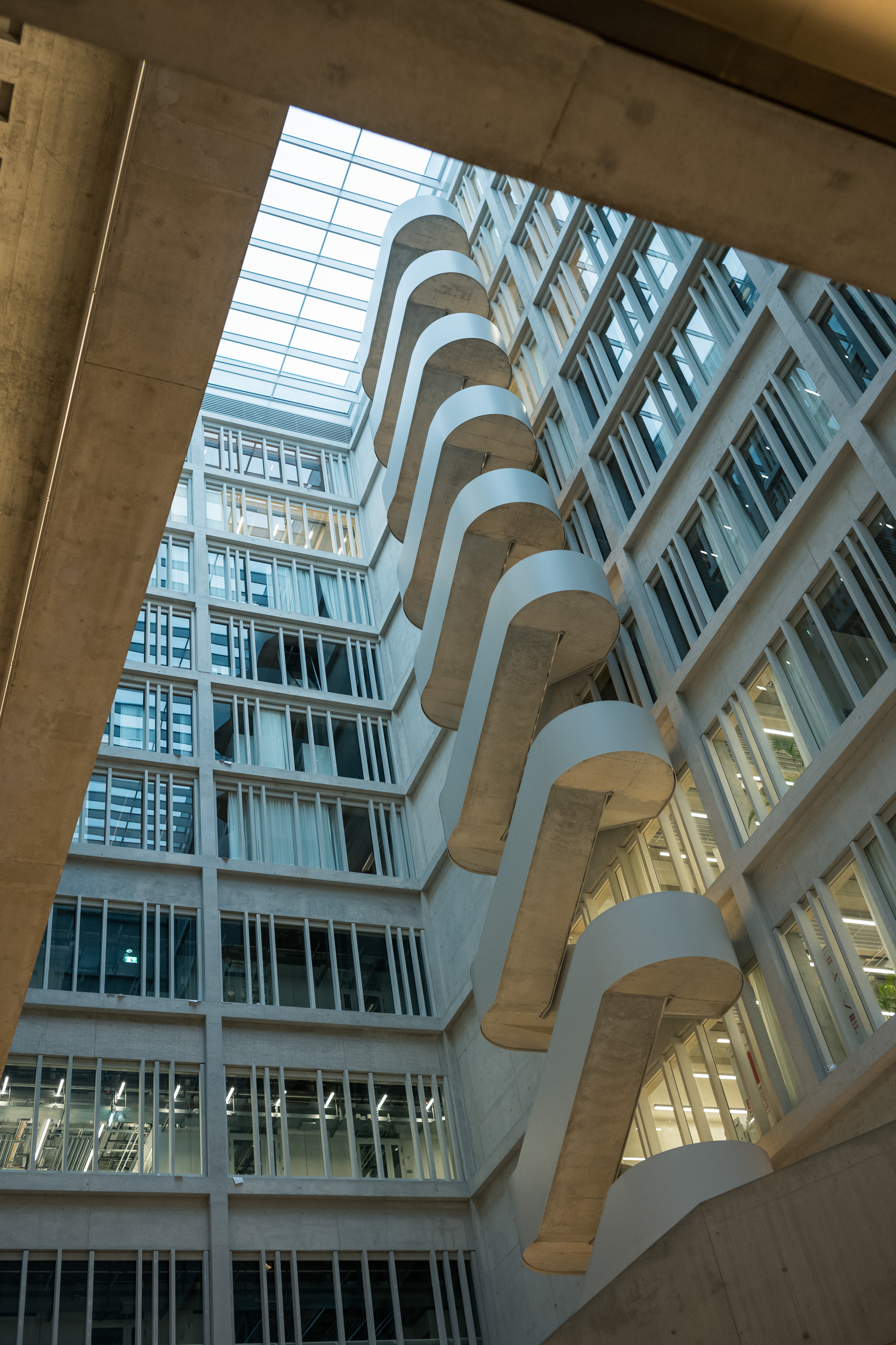 Zudem verfügt jede der fünf Hochschulen über ein individuelles Stockwerk und dennoch gibt die Innenarchitektur ein einheitliches Bild im minimalistischen Betonstil ab. Unter einem Dach vereint, ermöglicht die Kombination dieser Hochschulen zukunftsweisende und interdisziplinär entwickelte Lösungen.