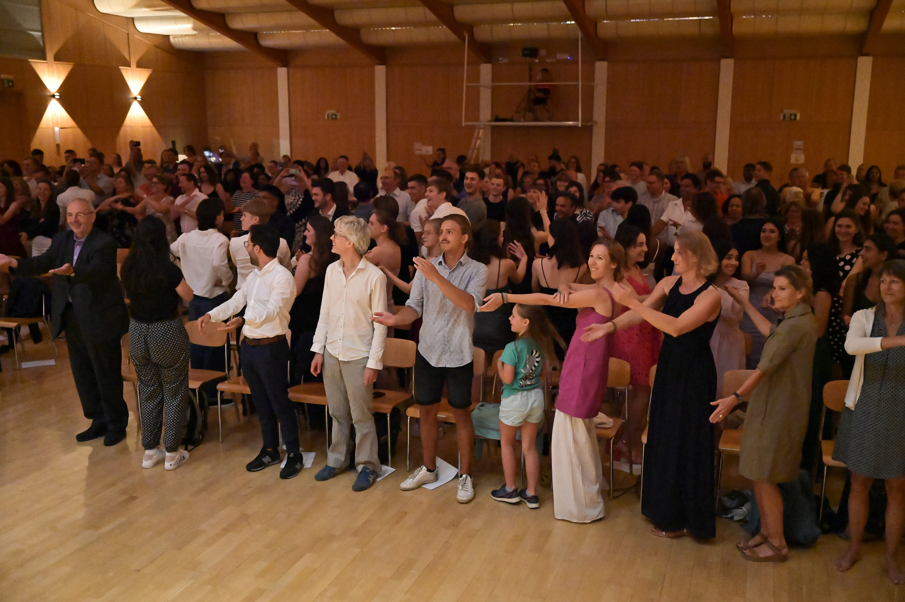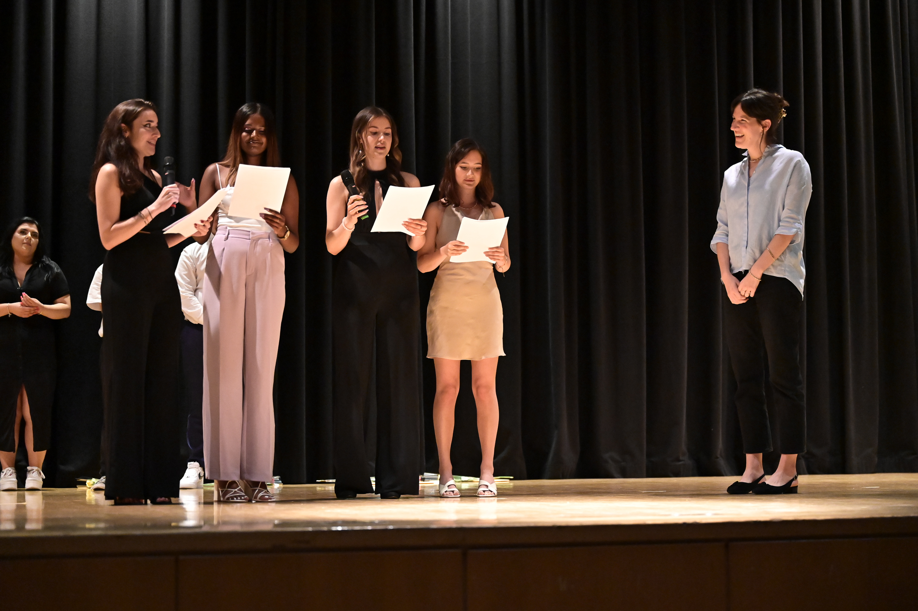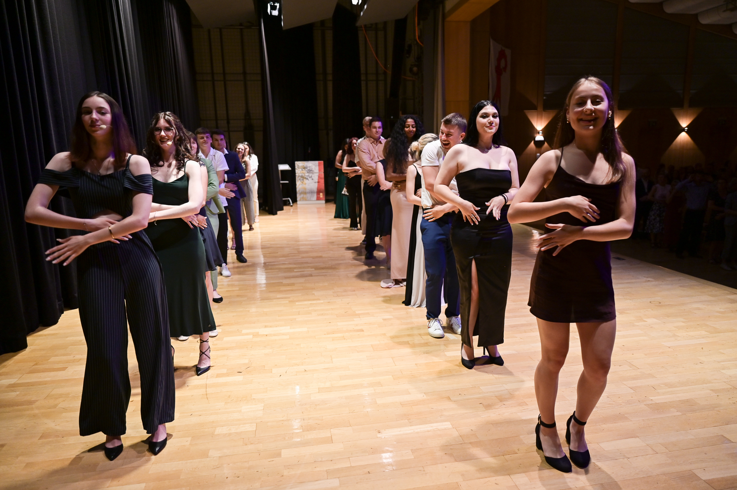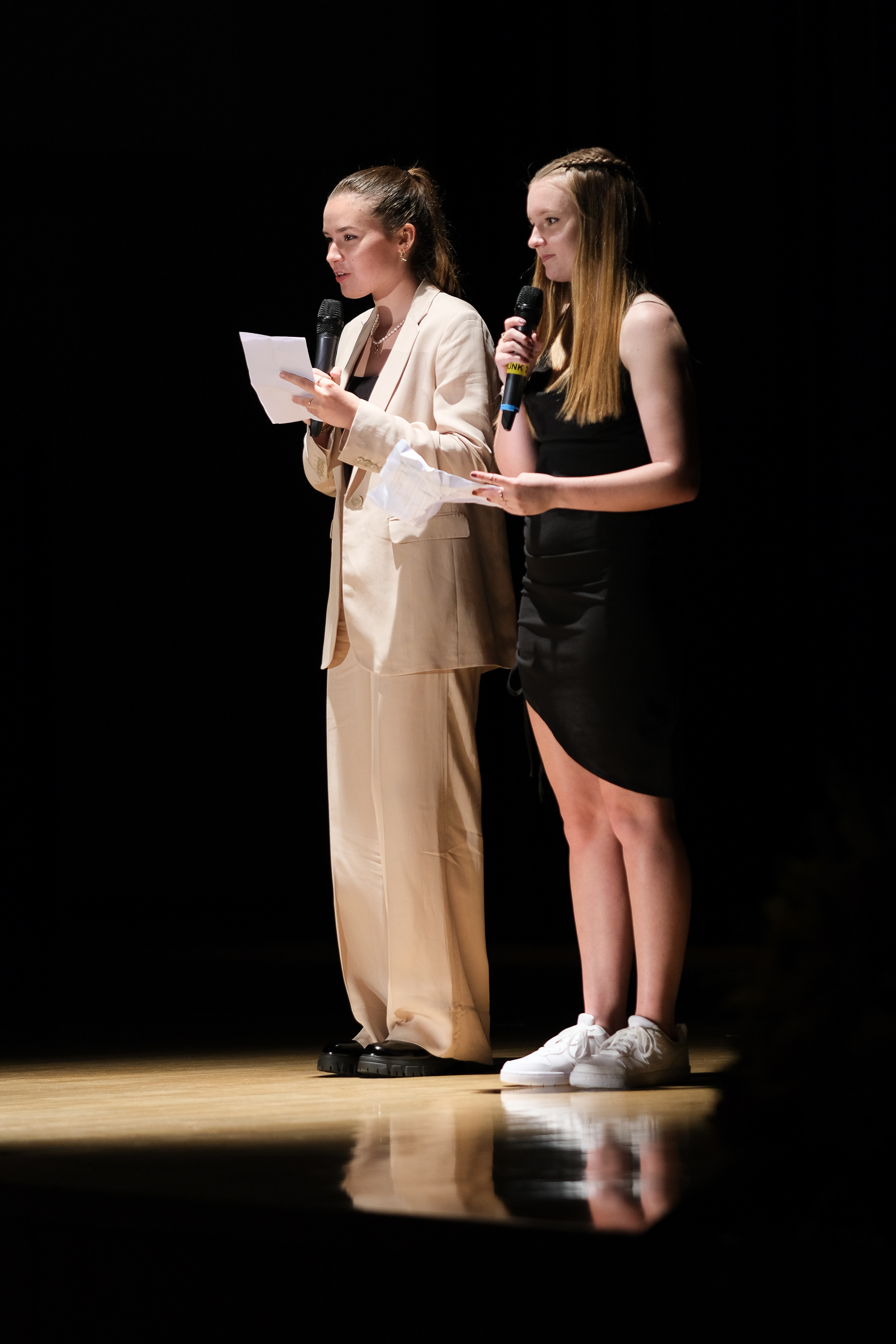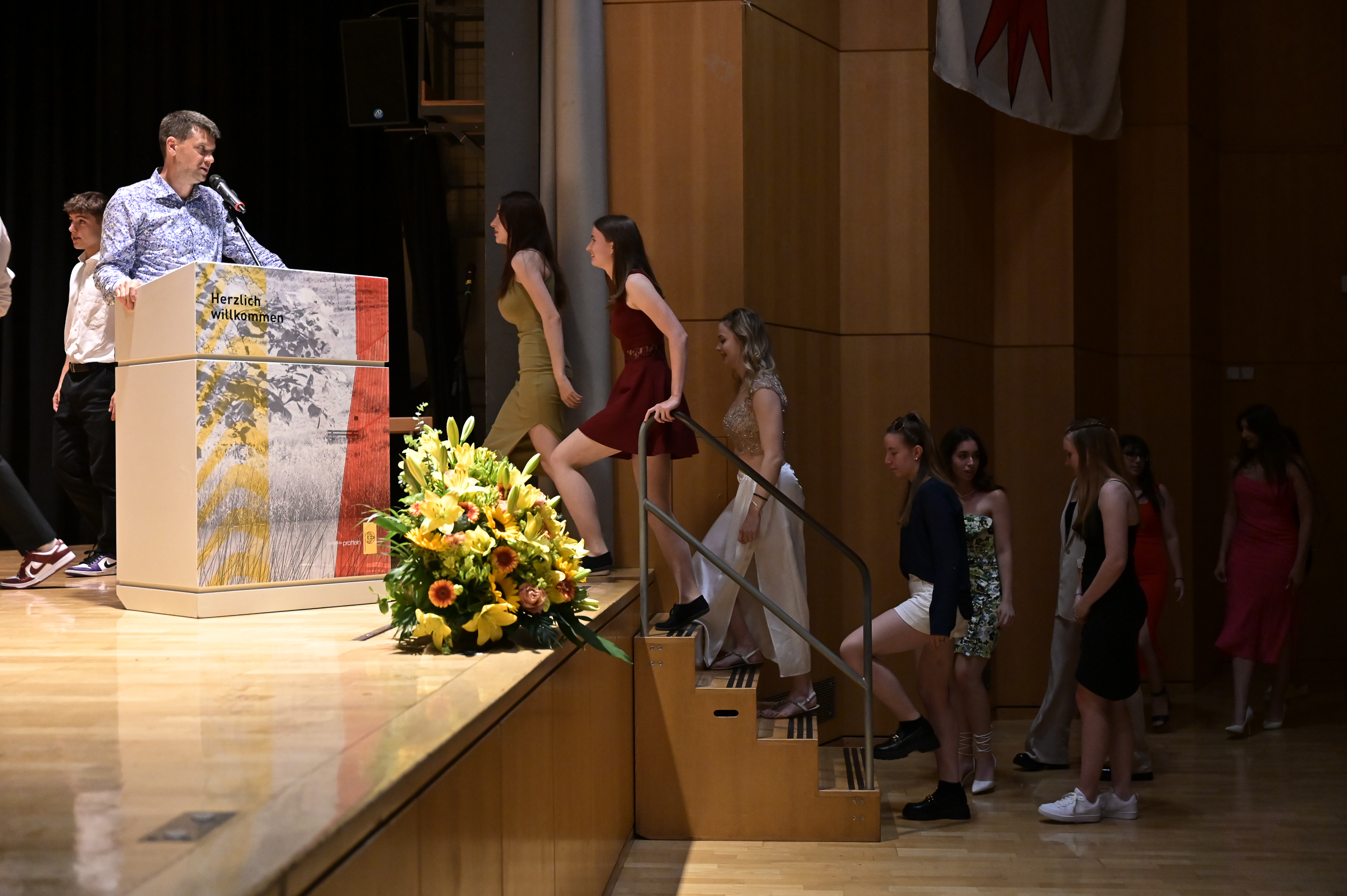 Die Klassenlehrpersonen übergaben die Abschlusszeugnisse, die Klassen bedankten sich mit Reimen und mit weiteren kreativen sowie musikalischen Beiträgen. Als Jahrgangsbeste wurden ausgezeichnet: Laura Berweger mit einem Notenschnitt von 5.8 und Noah Barretta mit einem Schnitt von 5.3. Das Publikum tanzte Macarena, oder versuchte es zumindest. Brigitte Jäggi als Rektorin des Gym Muttenz verabschiedete den FMS-Leiter Jan Pagotto und die beiden Moderatorinnen Chiara Colonnello und Liliane Dietschi (beide F3a) luden ein zum Apéro, den die Klasse F2d servierte.