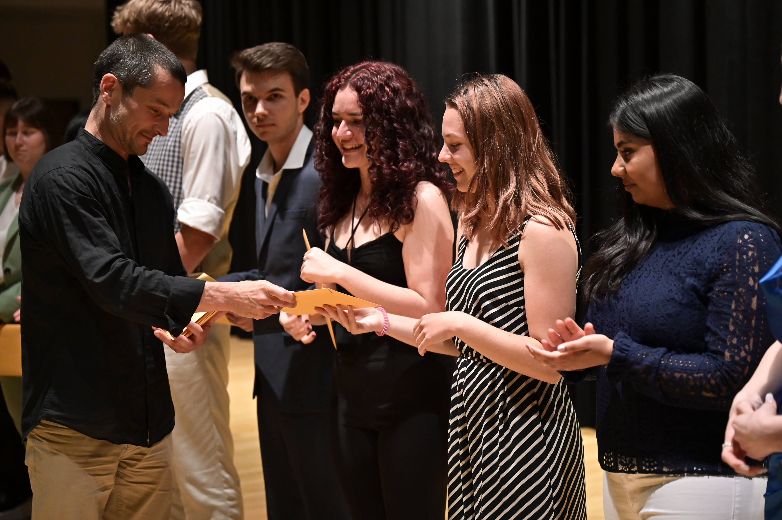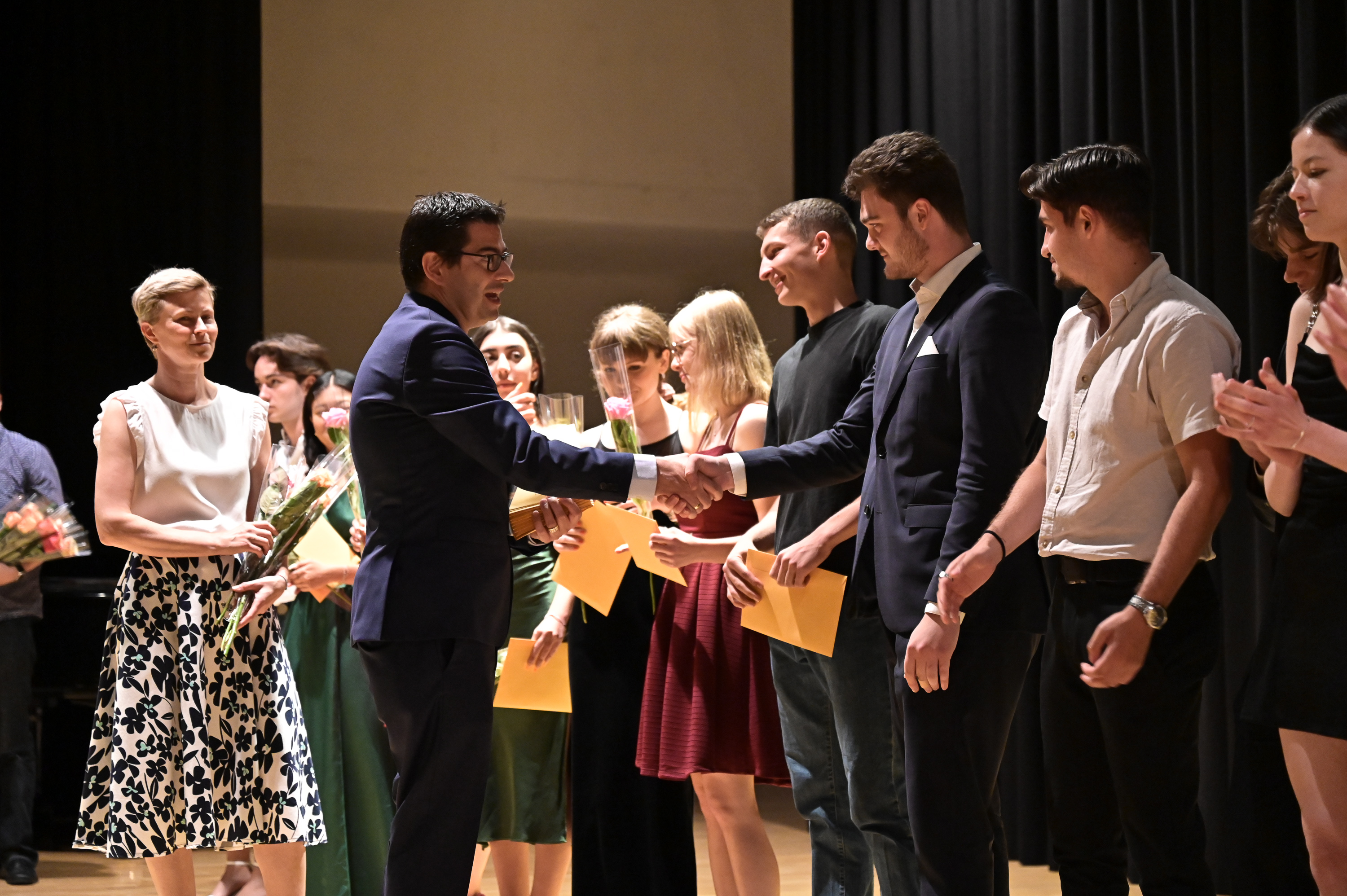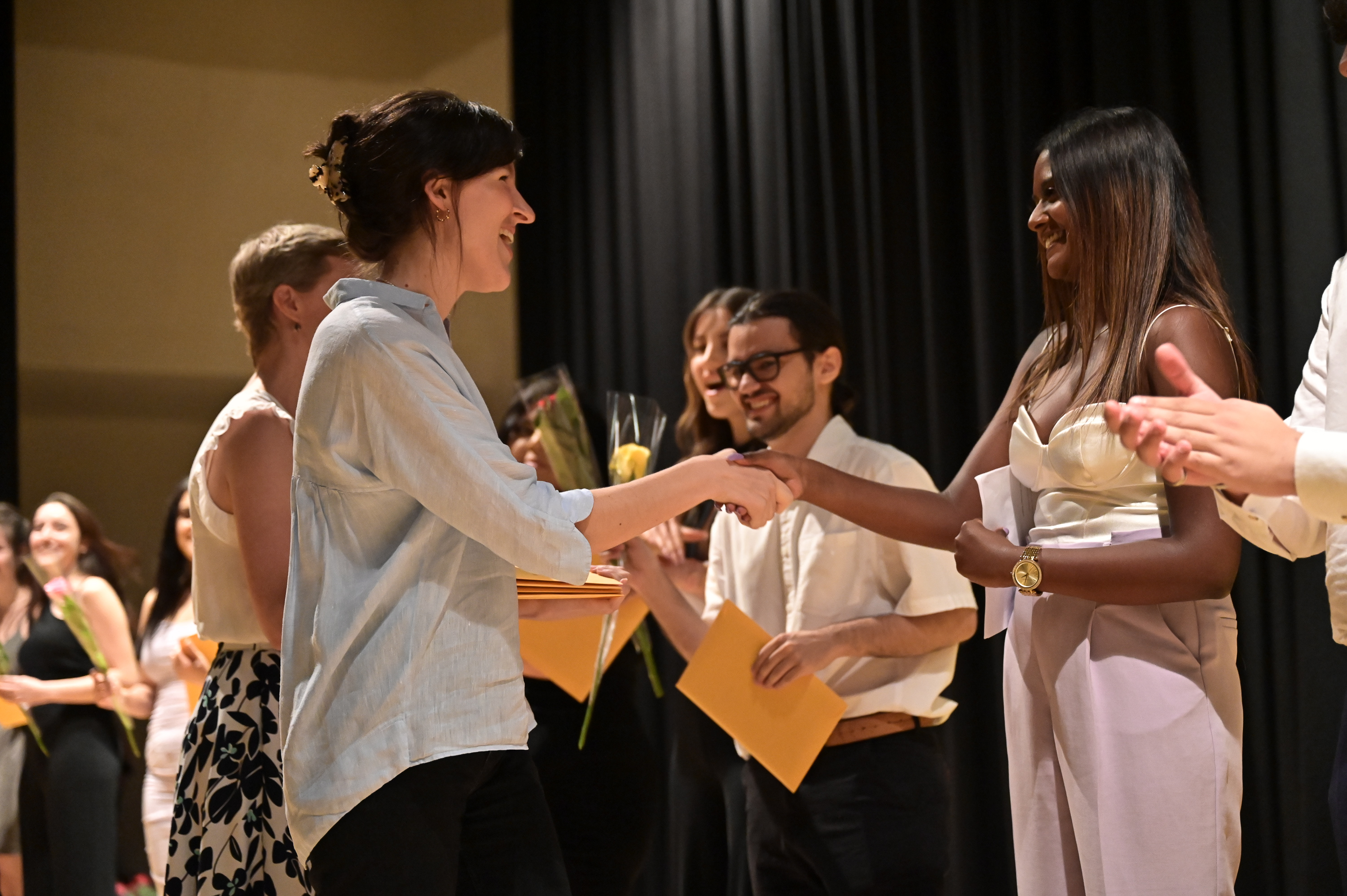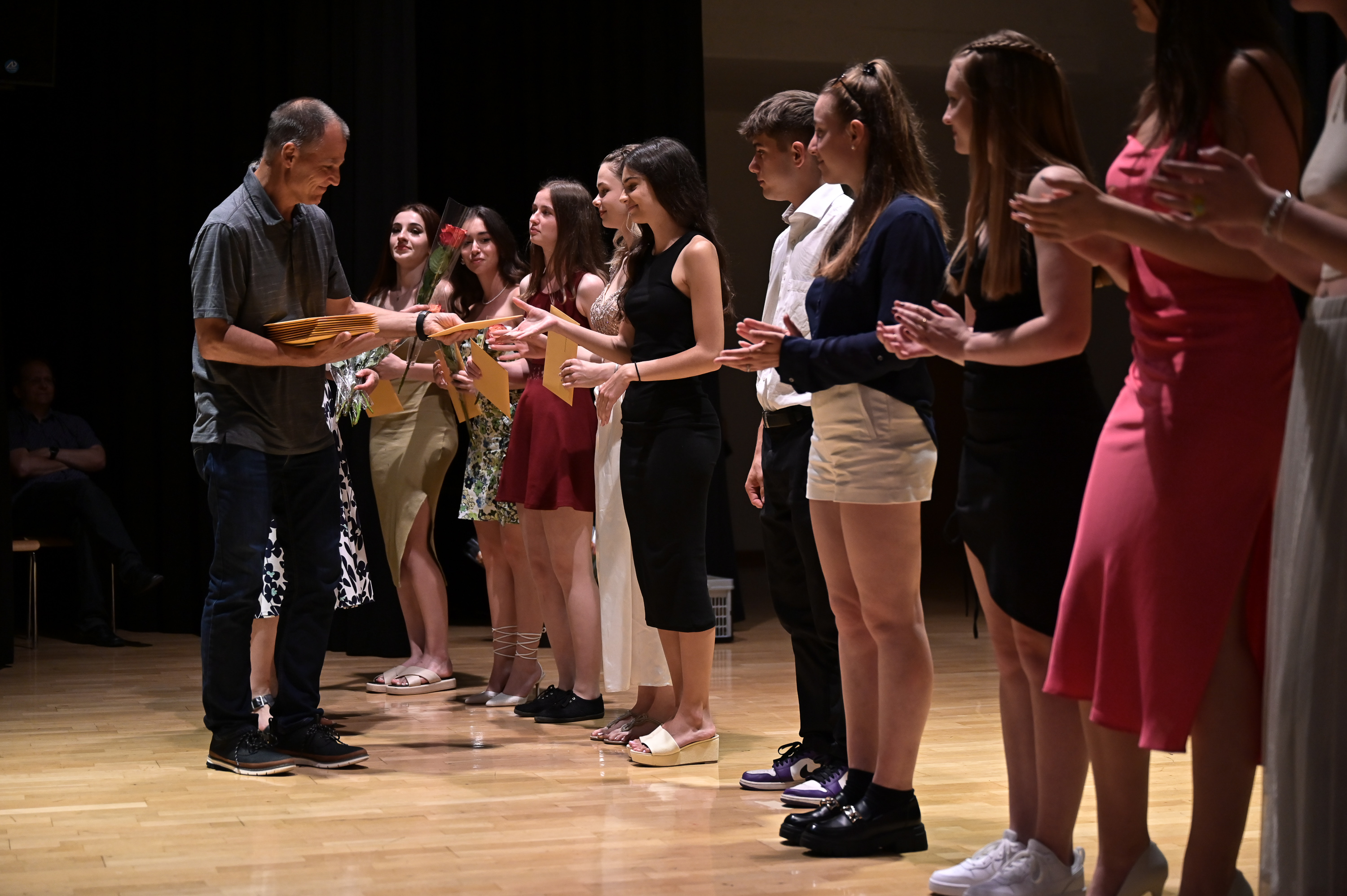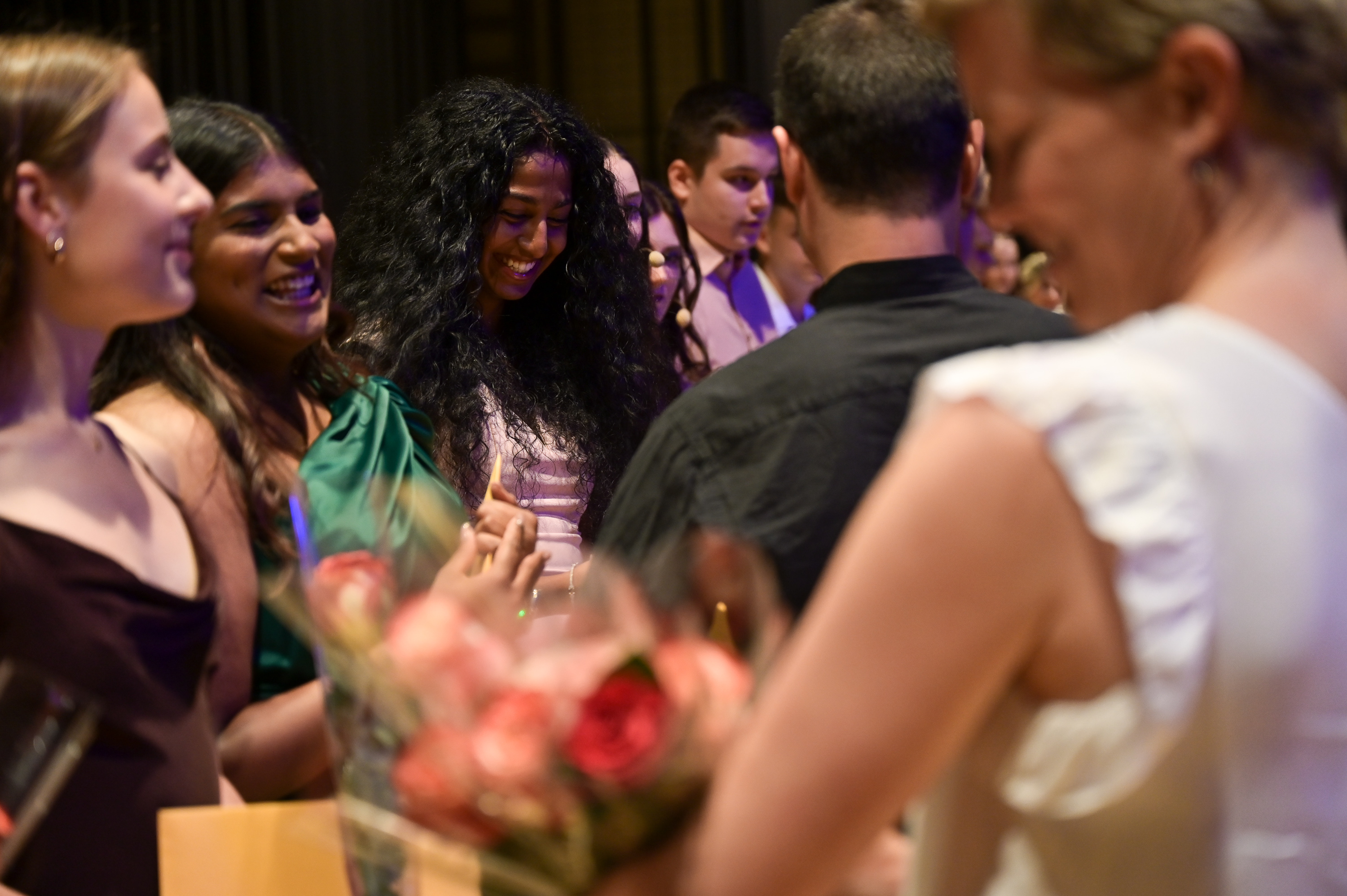 Die Klassenlehrpersonen übergaben die Abschlusszeugnisse, die Klassen bedankten sich mit Reimen und mit weiteren kreativen sowie musikalischen Beiträgen. Als Jahrgangsbeste wurden ausgezeichnet: Laura Berweger mit einem Notenschnitt von 5.8 und Noah Barretta mit einem Schnitt von 5.3. Das Publikum tanzte Macarena, oder versuchte es zumindest. Brigitte Jäggi als Rektorin des Gym Muttenz verabschiedete den FMS-Leiter Jan Pagotto und die beiden Moderatorinnen Chiara Colonnello und Liliane Dietschi (beide F3a) luden ein zum Apéro, den die Klasse F2d servierte.