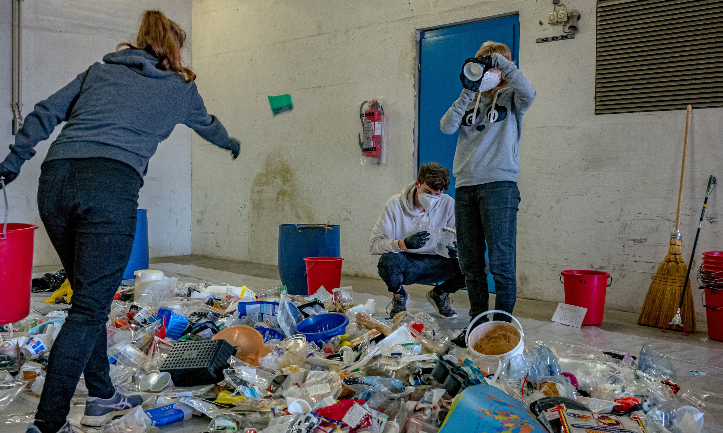 Mit Unterstützung eines Experten der Firma Carbotech AG sortierten wir an drei Nachmittagen den Inhalt von fünfzig zufällig ausgewählten Sammelsäcken nach den sechs verschiedenen Kunststoffarten. In den meisten Fällen war das Herausfinden der Art von Plastik einfach, da diese auf dem Kunststoff vermerkt war. Nichtsdestotrotz kam es des Öfteren vor, dass wir den Experten konsultieren mussten. Er half uns, ungekennzeichnete Objekte den sechs Plastik-Arten zuzuteilen.