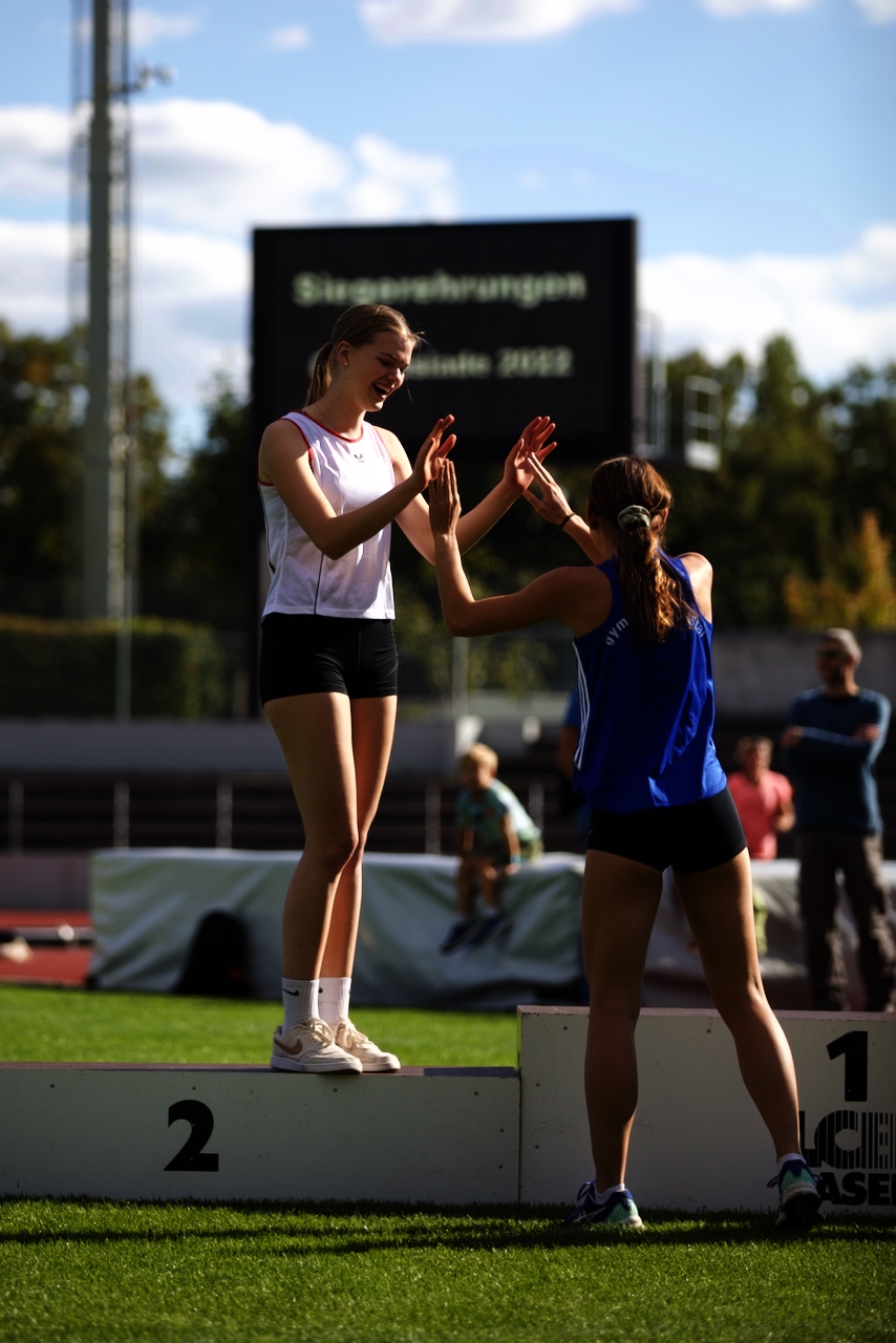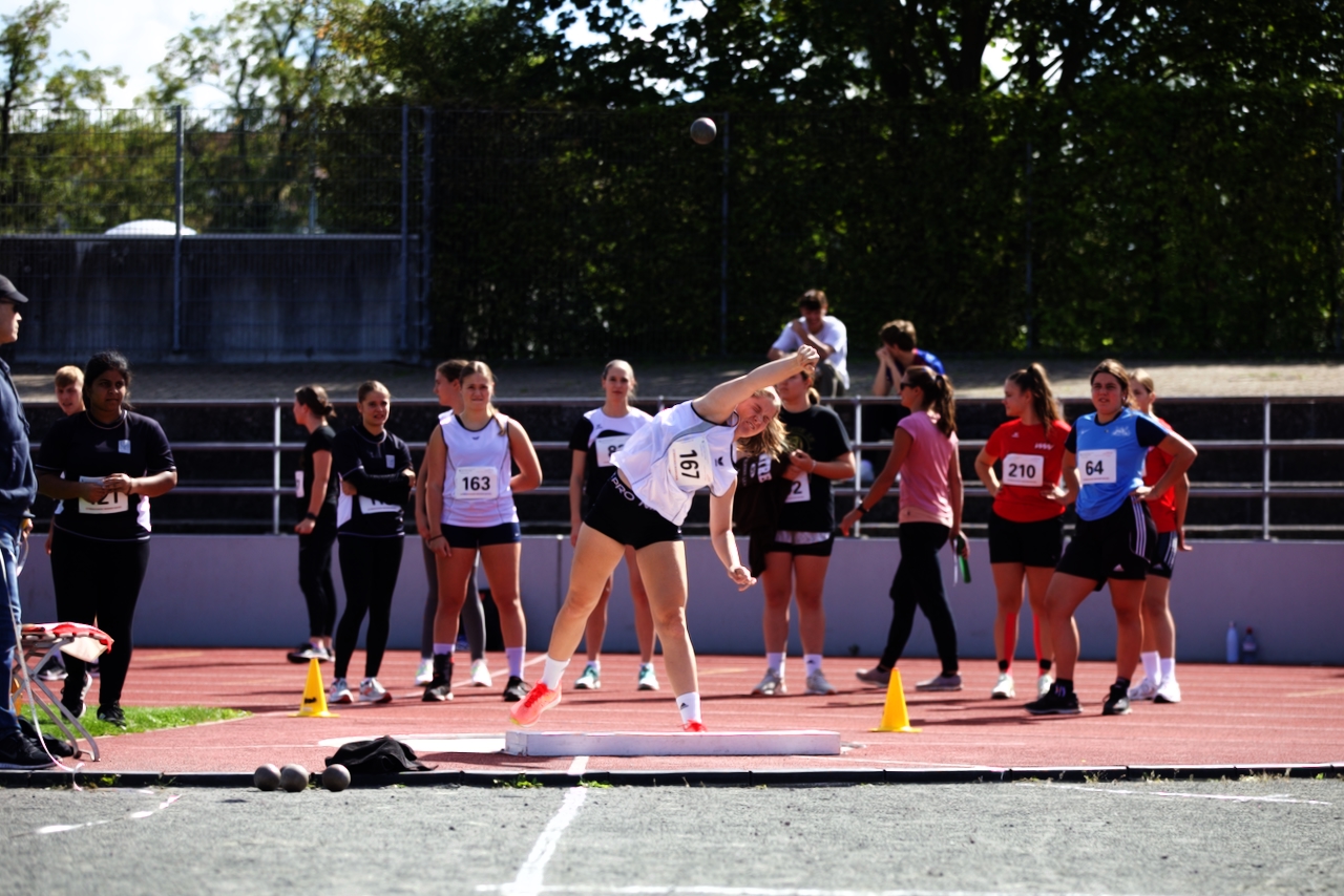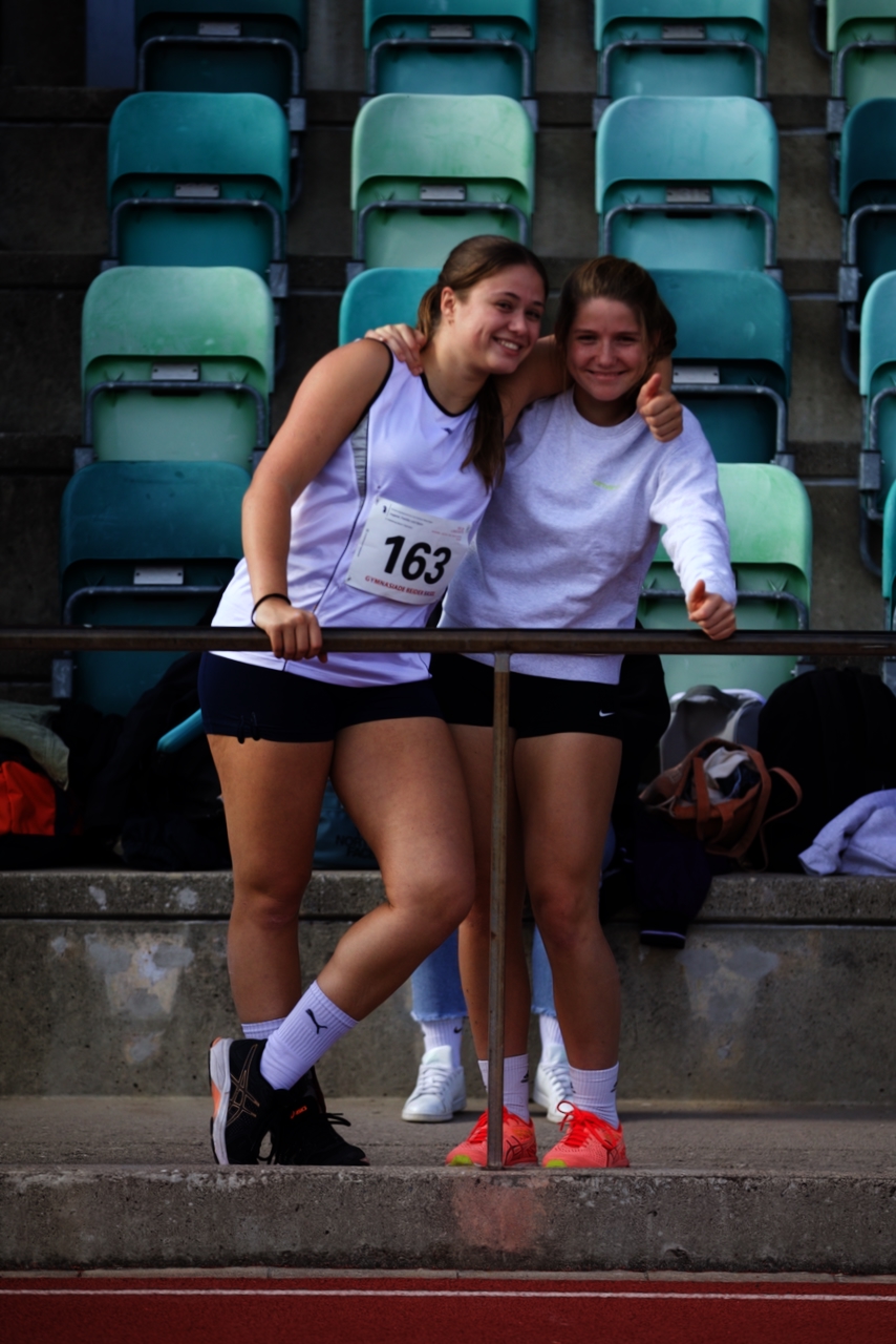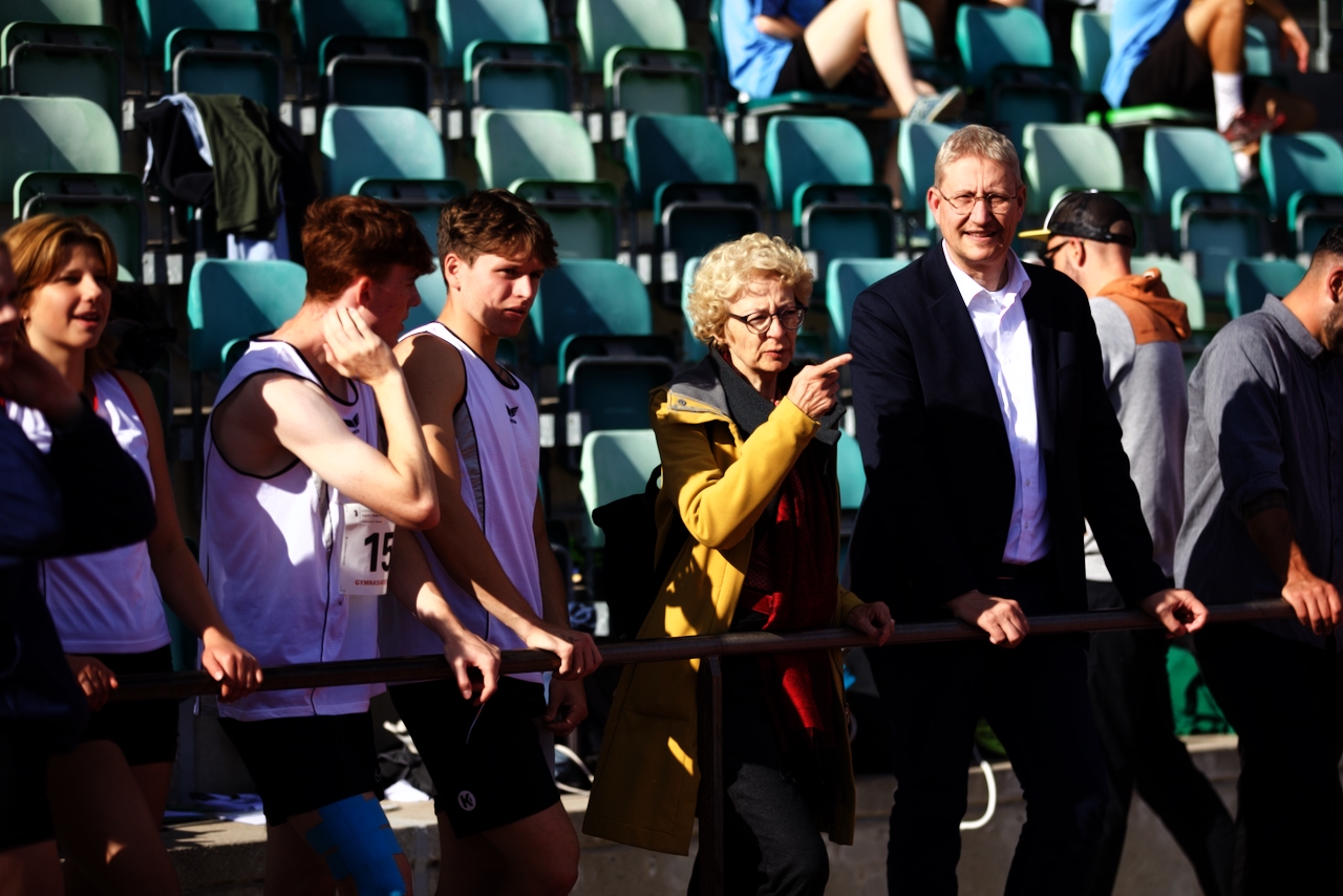 Gymnasiade ist aber auch, wenn die Ergebnisse der einzelnen Athlet:innen für ein Team zählen. Es werden Tipps ausgetauscht und alle werden angefeuert. Aber vor allem wird auch gejubelt, wenn jemandem der eigenen Schule eine gute Leistung gelingt, wenn jemand aufs Podest kommt oder sein Letztes gibt fürs Team. Annas und Lees Endspurts bleiben sicher in Erinnerung. Auch die starken 400m-Läufen von Manuel (läuft in 55s allen Spezialisten davon!) und Lara und die schnellen 300m-Sprints von Moritz und Irina in den Schwedenstaffen. Zum Schluss des Wettkampfes ist die Stimmung immer besonders gut. Da können die Sportskanonen auf lautstarke Unterstützung zählen.