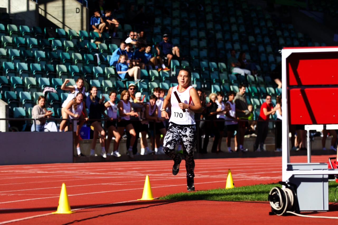 „Was ist eigentlich die Gymnasiade?“, wurde ich in der letzten Woche gefragt. Heute, zwei Tage nach dem Anlass, würde ich einfach das Bild oben zeigen. Bei traditionell gutem Wetter treffen sich gute Athlet:innen (nicht nur aus der Leichathletik – Silas, Manuel, Moritz und Joel sind Ballsportler) unter professionellen Bedingungen zu einem Wettkampf. Man erhofft sich eine gute Leistung für sich selbst. Man unterstützt seinen Disziplinenpartner oder seine Partnerin. Man rennt gemeinsam in Staffeln und holt Resultate für seine Schule. Gemeinsam kämpft man um Punkte für sein Team – das Gym Muttenz.