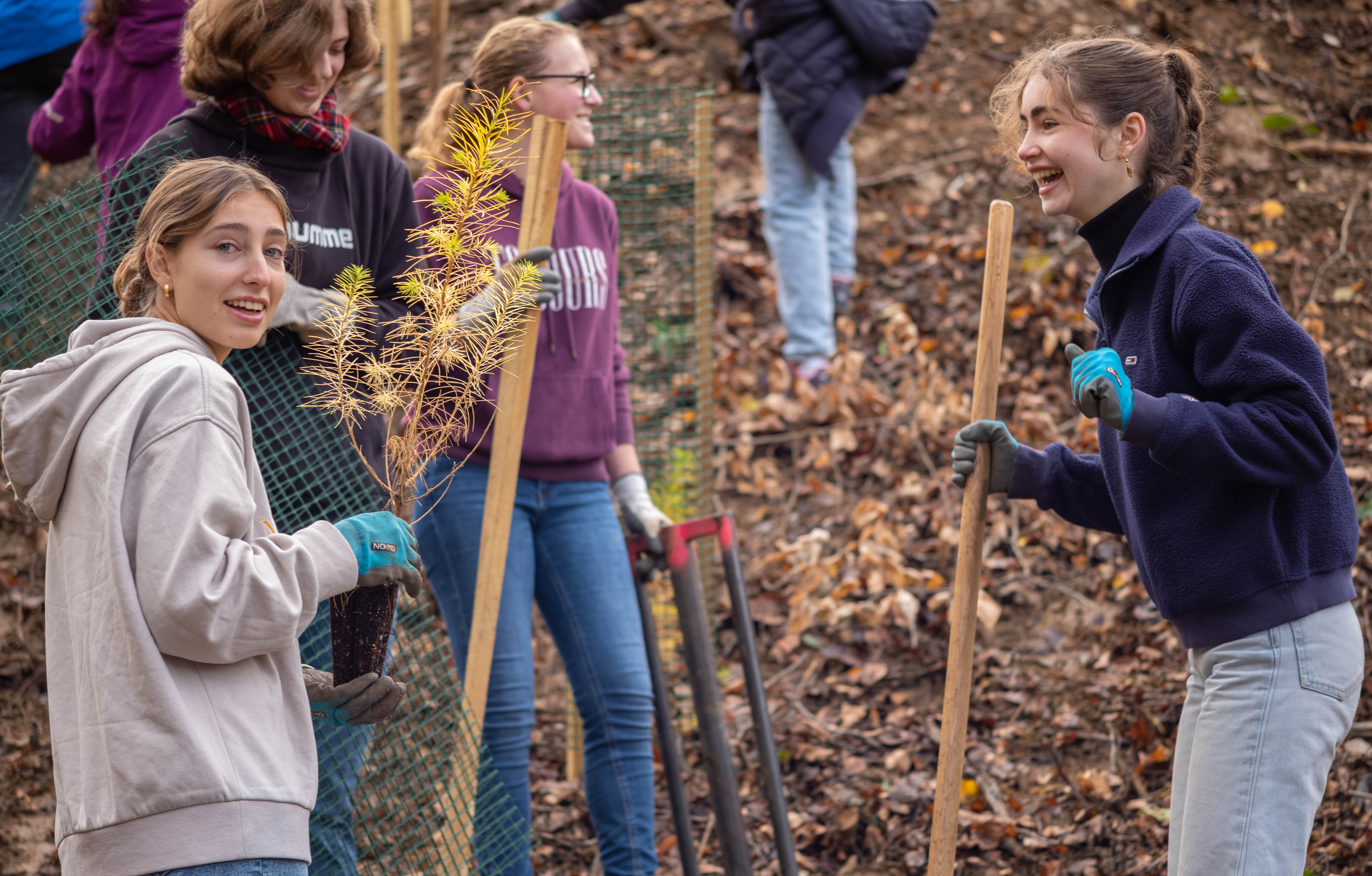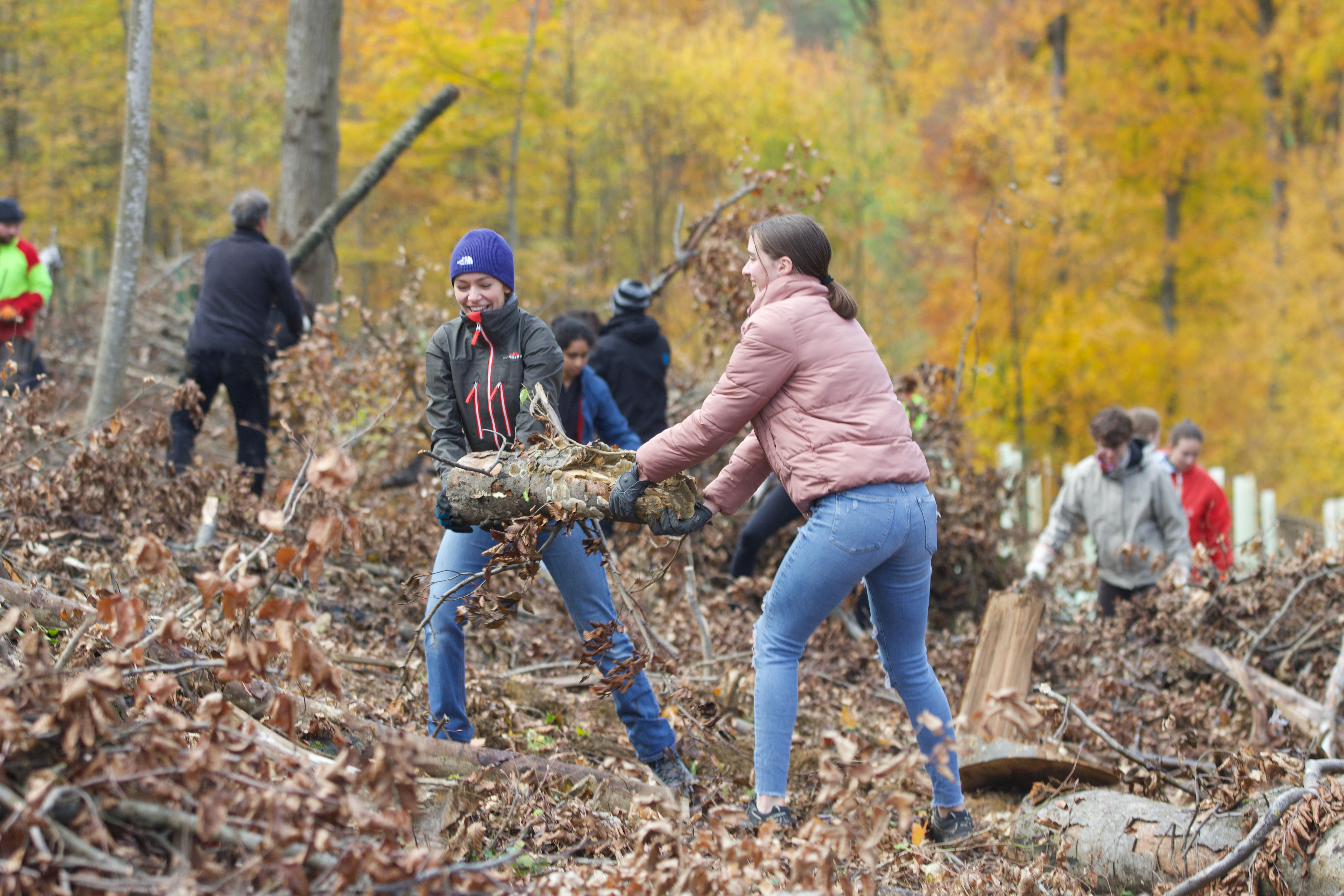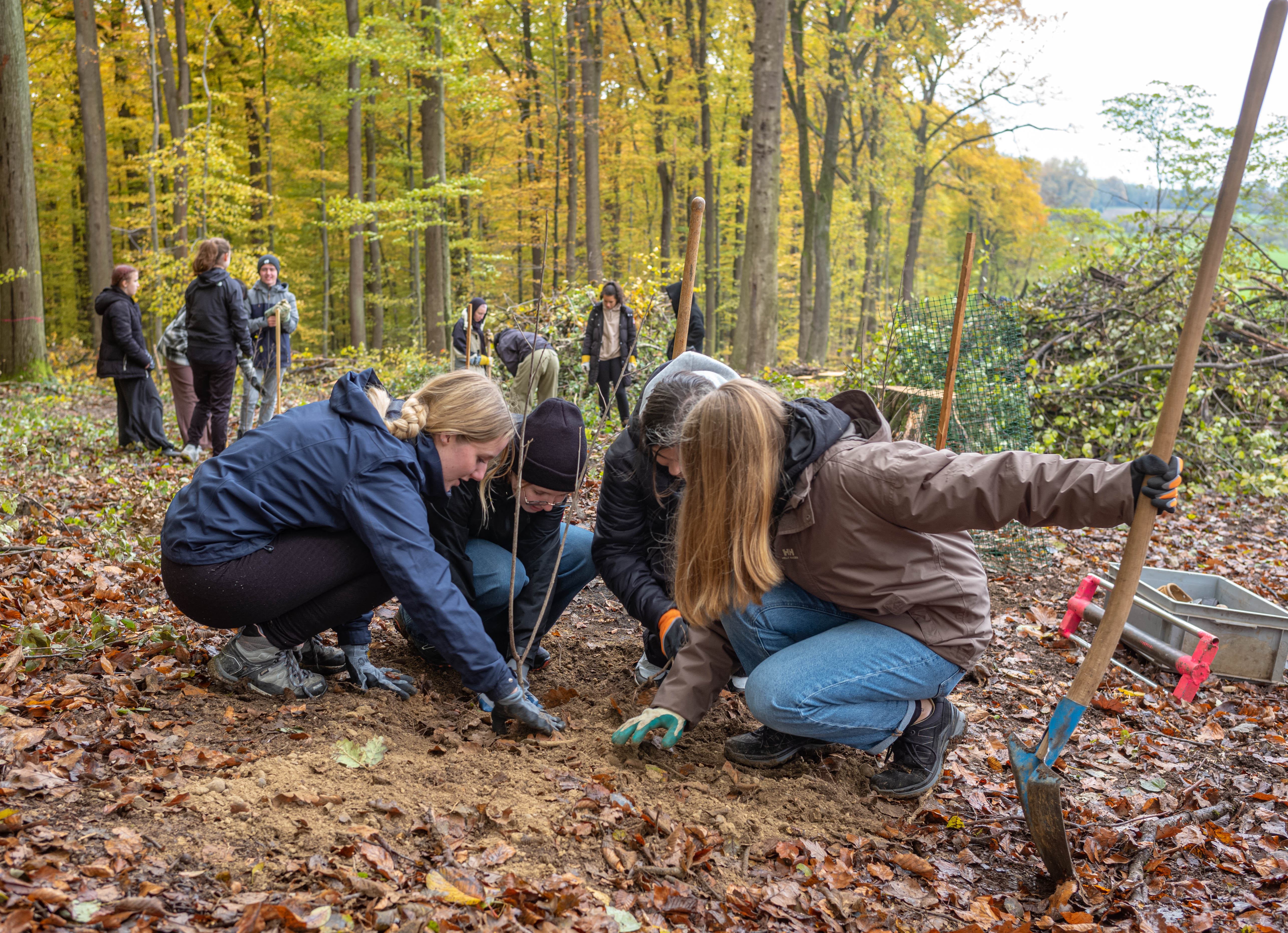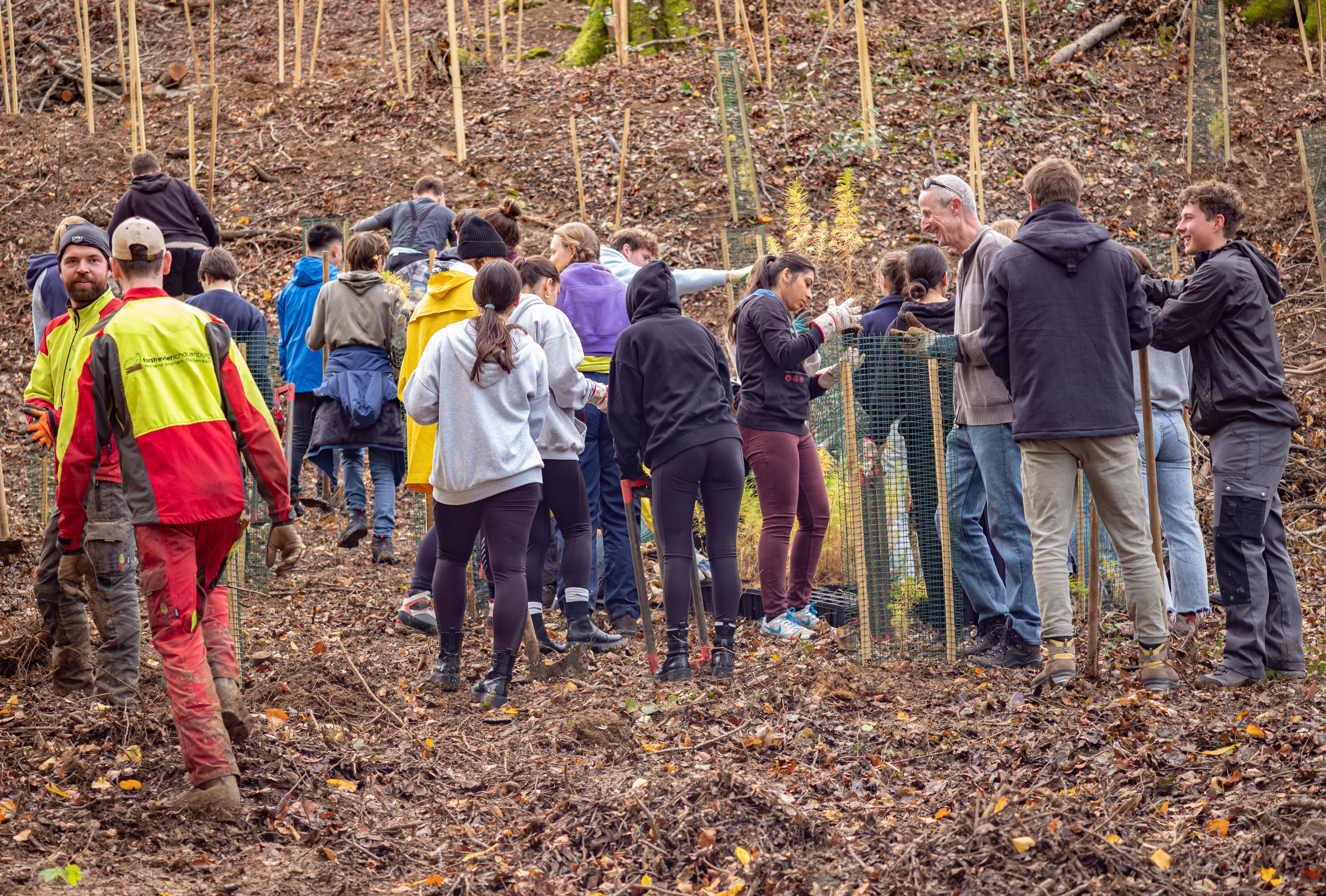 Ob mit Trainerhose und Turnschuhen oder in perfekter Arbeitskluft, spätestens beim Baumpflanzen spielte die Kleidung keine Rolle mehr. Sie waren voll bei der Sache und haben ganze Arbeit geleistet. (Text: Sonja Kulka, Caroline Löw, Lucas Linder / Fotos: Daniel Nussbaumer, Adrian Marbacher, Lucas Linder)