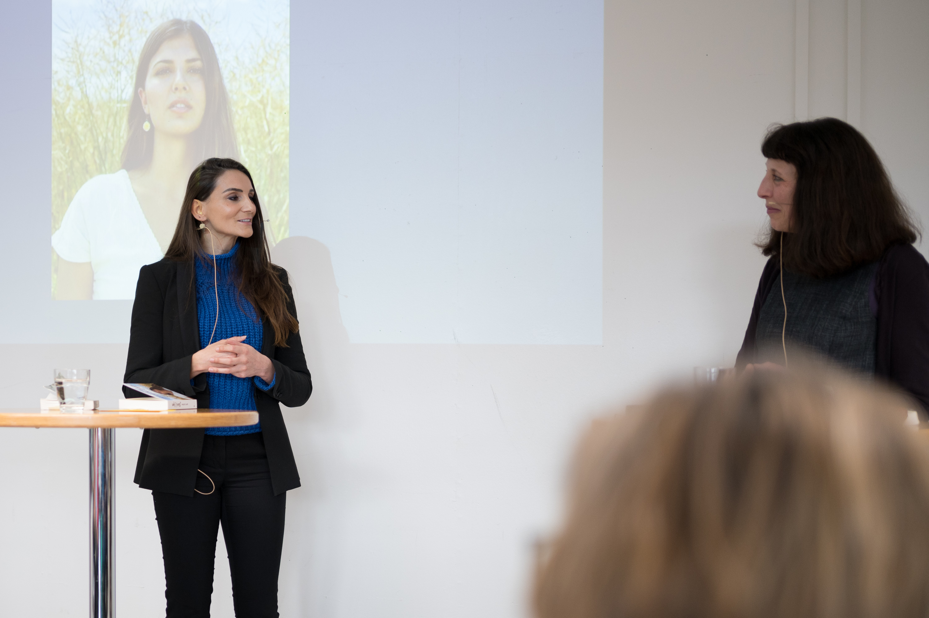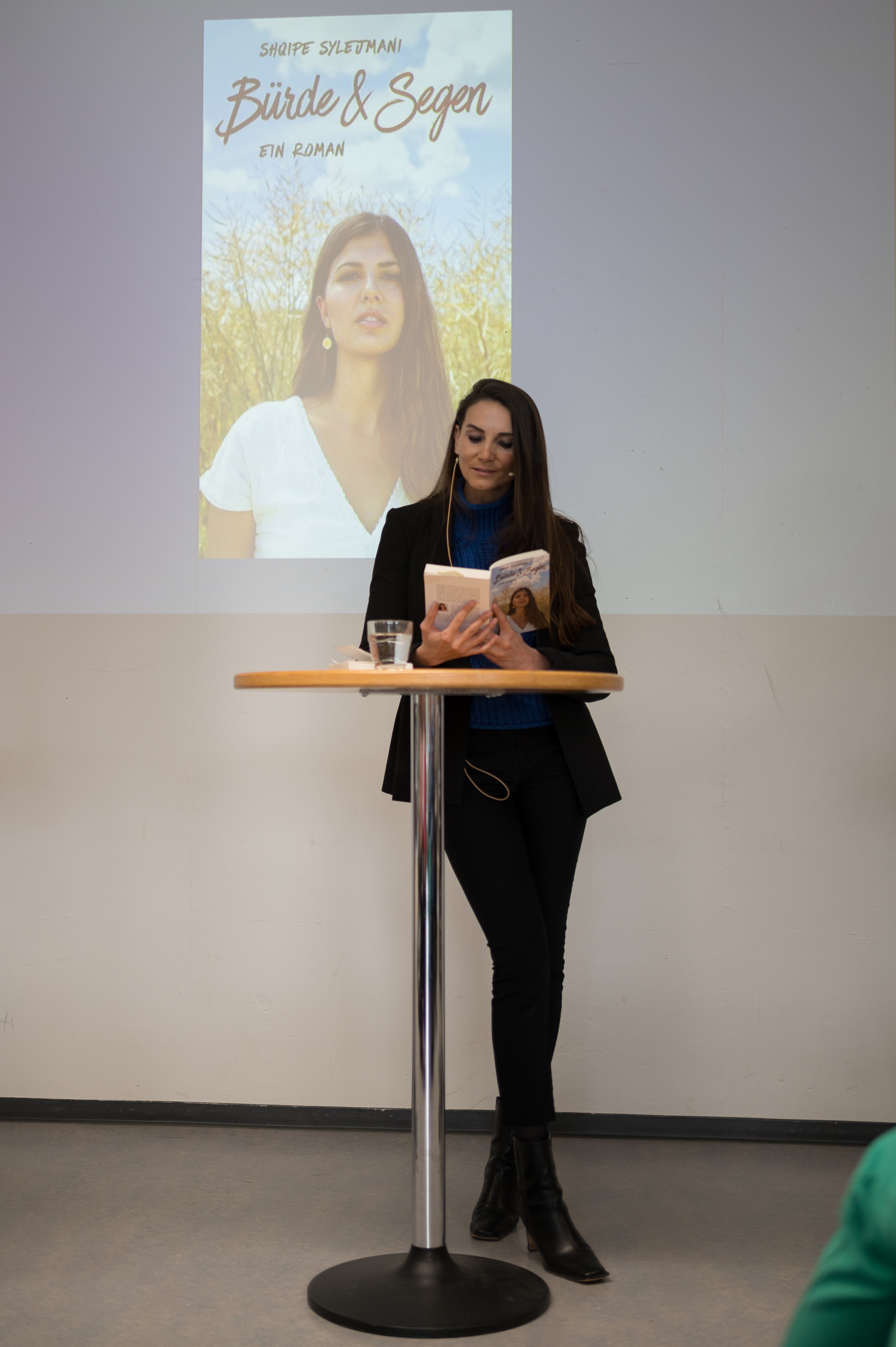 Fatjona Haziri greift das erste Buch auf. Es handelt von Shote. Sie ist eine Albanerin aus der Schweiz und hat kein Ziel im Leben, sodass sie eine Reise durch Albanien, Kosovo, Montenegro und Nordmazedonien macht. Die Reise entsteht dadurch, dass sie das Tagebuch ihrer Grossmutter hat, die verstorben ist und die durch diese Länder reisen wollte. Shote will dabei ihr Lebensziel finden. Dabei lernt sie drei verschiedene Personen kennen; Luan, der für die Liebe, Hava, die für die Freundschaft, und Gjon, der für die Familie steht. Shqipe liest uns das erste Kapitel aus ihrem Buch «Bürde & Segen» vor, das auch auf Albanisch und Englisch erhältlich ist. Nach dem dritten Satz habe ich bereits Tränen in den Augen. Mit einer sanften und langsamen Stimme liest sie 20 Minuten lang gefühlvoll vor. Das Publikum hört gebannt zu, denn es ist das persönlichste Kapitel, da es 1 zu 1 im Leben der Autorin passiert ist. Shote erzählt von ihrer Grossmutter, die letztes Jahr gestorben ist. Sie sitzt vor ihrer Haustüre in Pristina und beobachtet ihre Nachbarn in ihrem Quartier. Diese denken sich: Was für ein faules Mädchen aus der Schweiz, nur am Schreiben und keine Sorgen, da sie alles hat, was sie will! Ihr Grossvater kommt aus der Tür hinaus und redet mit ihr. Sie reden über die Liebe der Grossmutter, die zur Frau und die im Leben. So auch über die Hoffnung im Leben und alles, was man tut, tut man für sich selbst. So erzählt er ihr eine Anekdote, die von einem Dorfältesten erzählt, der einen weisen Wanderer zum Essen eingeladen hatte. Der Wanderer bedankte sich mehrmals und sagte: «Was der Mensch tut, tut er am Ende immer nur für sich selbst». Der Dorfälteste dachte, dass der Wanderer das Festmahl nicht schätzte, und liess sein Brot für den nächsten Tag vergiften. Als der Wanderer davon ging, gab er sein Brot einem Krieger. Dieser starb vor Schmerzen und war der Sohn des Dorfältesten. So fielen ihm die weisen Worte des Wanderers ein. Shote verlässt ihr Zuhause und macht genau das, was der Wanderer tut: Sie erzählt die Anekdoten weiter und bewahrt, obwohl sie in der Schweiz lebt, somit die albanische Kultur und Seele. Und genau das tut die Autorin Shqipe Sylejmani mit ihren Werken auch.