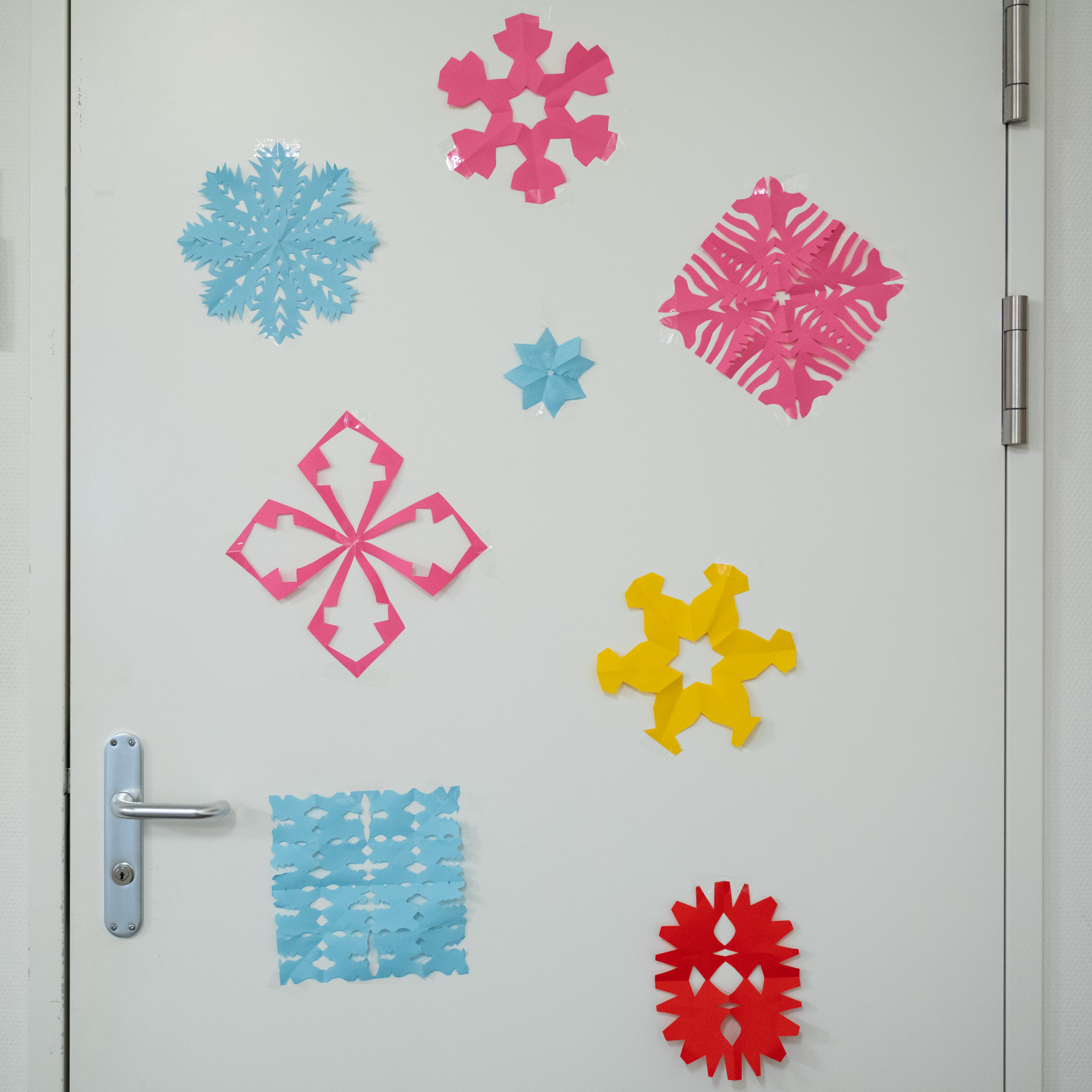 Die Motivation zum Lernen soll nicht an der Umgebung scheitern! Deswegen hat die sich FMS-Leitung die Anregungen zu Herz genommen und kurzerhand Platz an den Wänden im Gang und in den Zimmern geschafft und eine vorweihnachtliche Dekorationsaktion ins Leben gerufen: Jede Klasse durfte sich in einem Zimmer oder einem Teil des Aufenthaltsbereichs kreativ betätigen. Sechs Klassen haben sich darauf ins Zeugs gelegt. Es wurde engagiert geschnitten, gezeichnet, Fotos ausgedruckt, geklebt und gehängt. „Frau Herrmann, gälle Sie, mit dere Deko griege mir sicher der erschti Platz!?“ – hat es im Gang im vierten Stock mehr als einmal getönt.