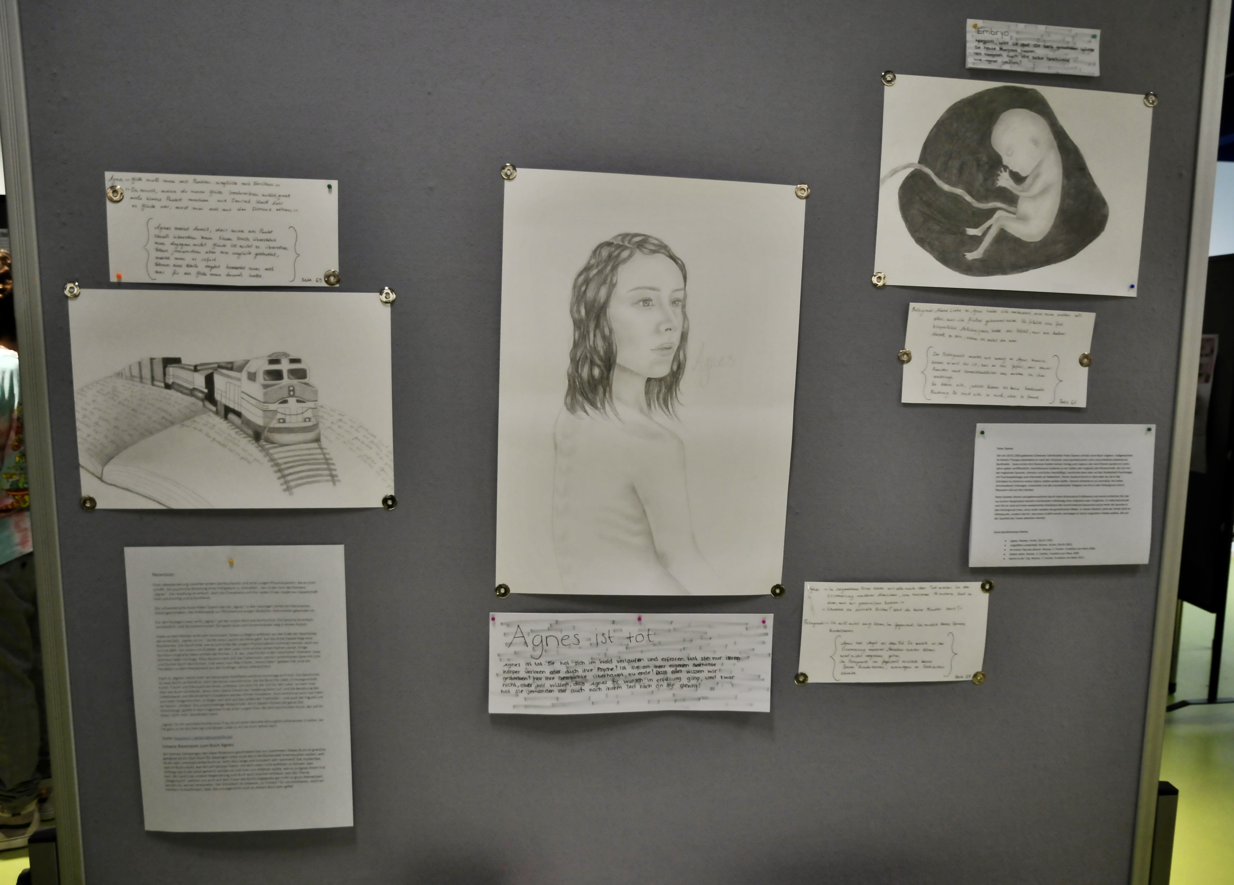 Da alle ersten Klassen an dem Projekt beteiligt waren, war die eher funktionale Aula im BZM nicht nur angefüllt mit bunten Büchertischen, sondern auch mit angeregten Gesprächen über die ausgestellten Werke. Literatur ist am vorletzten Schultag vor den Weihnachtsferien im BZM lebendig geworden, und vielleicht hat sich ja jemand dazu anregen lassen, eines dieser Werke über die Ferien zu lesen: