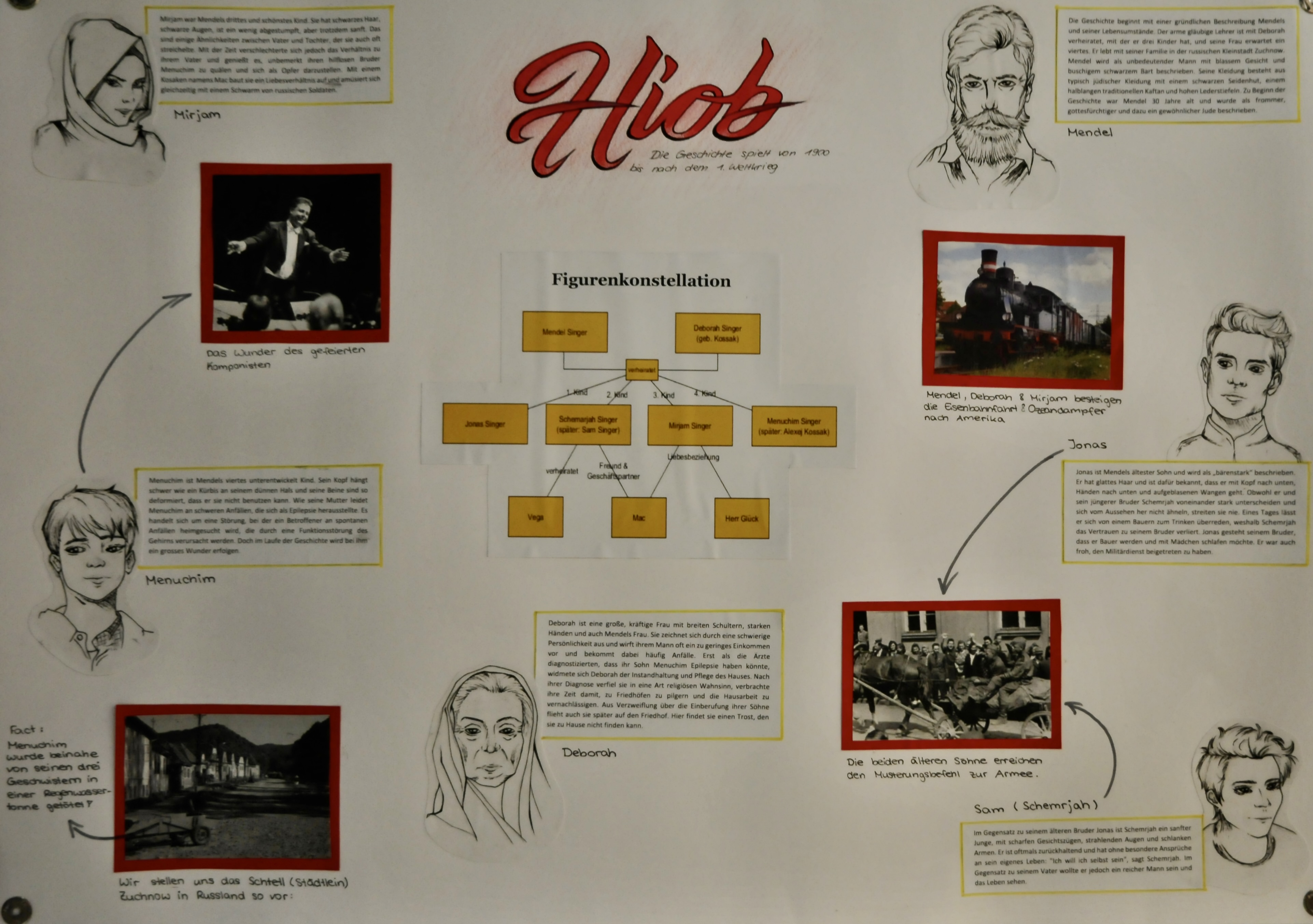 Aber all diese Elemente geben noch kein Gesamtbild ab. Und das war es ja, was die ungefähr 100 anwesenden Schüler*innen und die 10 Lehrpersonen sehen wollten: Interessiert mich das ganze Werk auch? Spricht es mich an? Dieses Gesamtbild boten die aufwändig gestalteten Büchertische, auf denen nicht nur Inhaltsangaben in Form von Filmen vorgestellt wurden oder kleine Snacks standen. Die Tische waren beeindruckend anschaulich und haben ihre Bücher mit Mindmaps und Figurenclustern, mit Boxhandschuhen und Bleistiftzeichnungen, mit Playmobil-Figuren und Plüschtieren lebendig werden lassen.