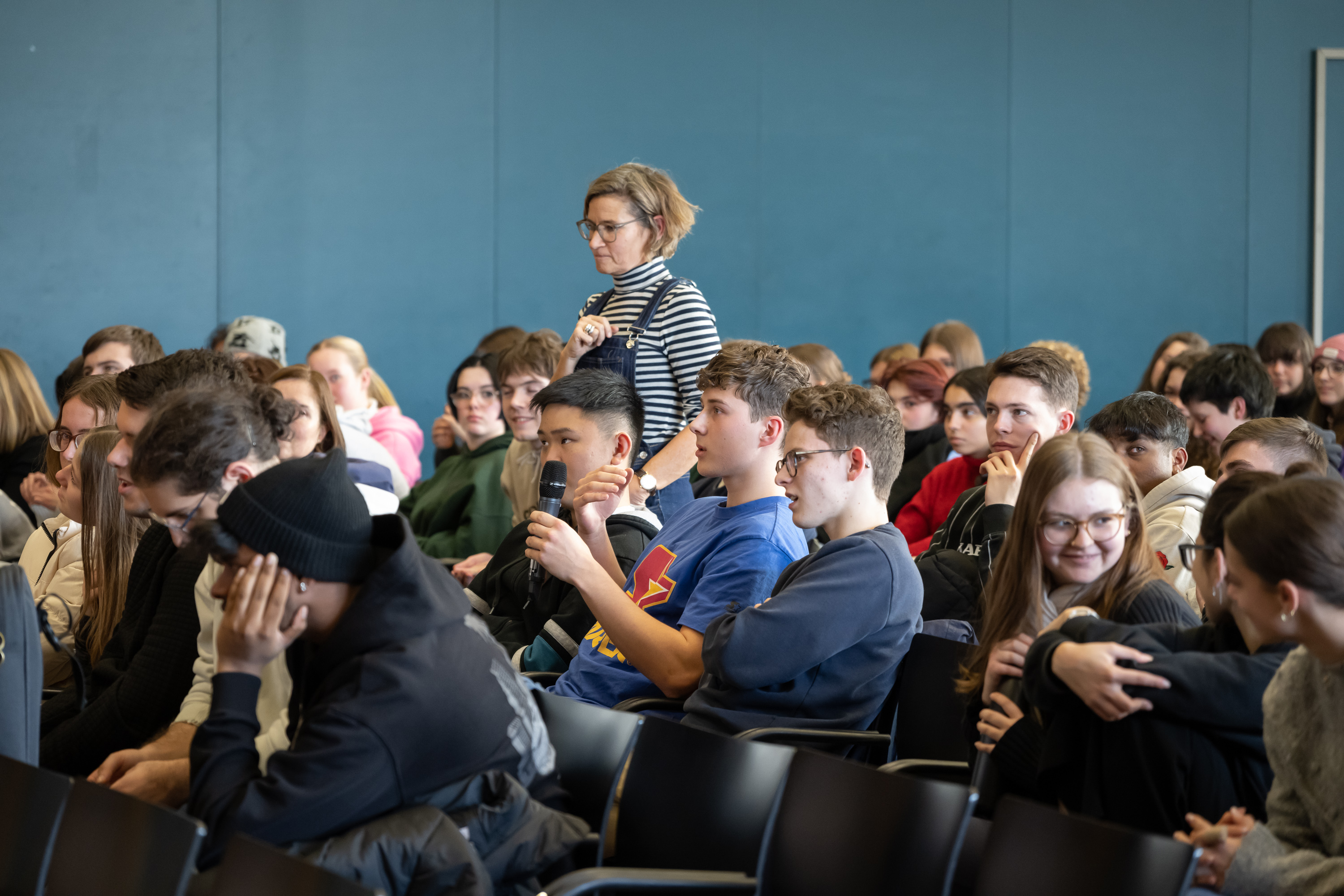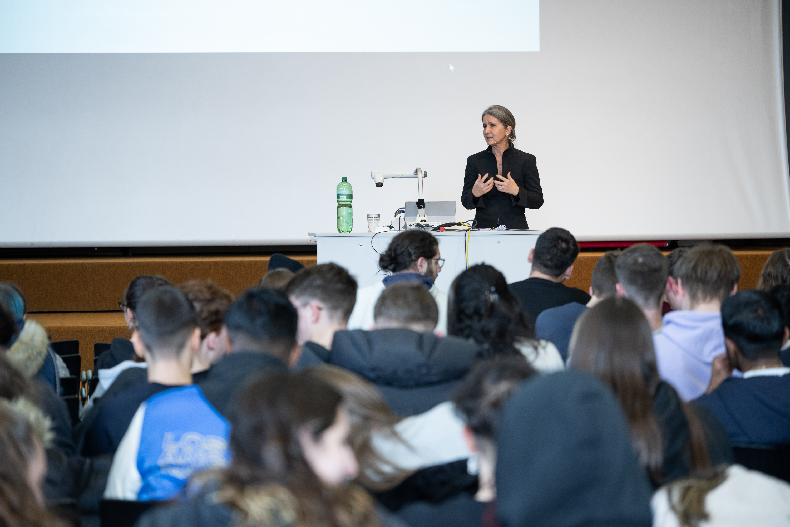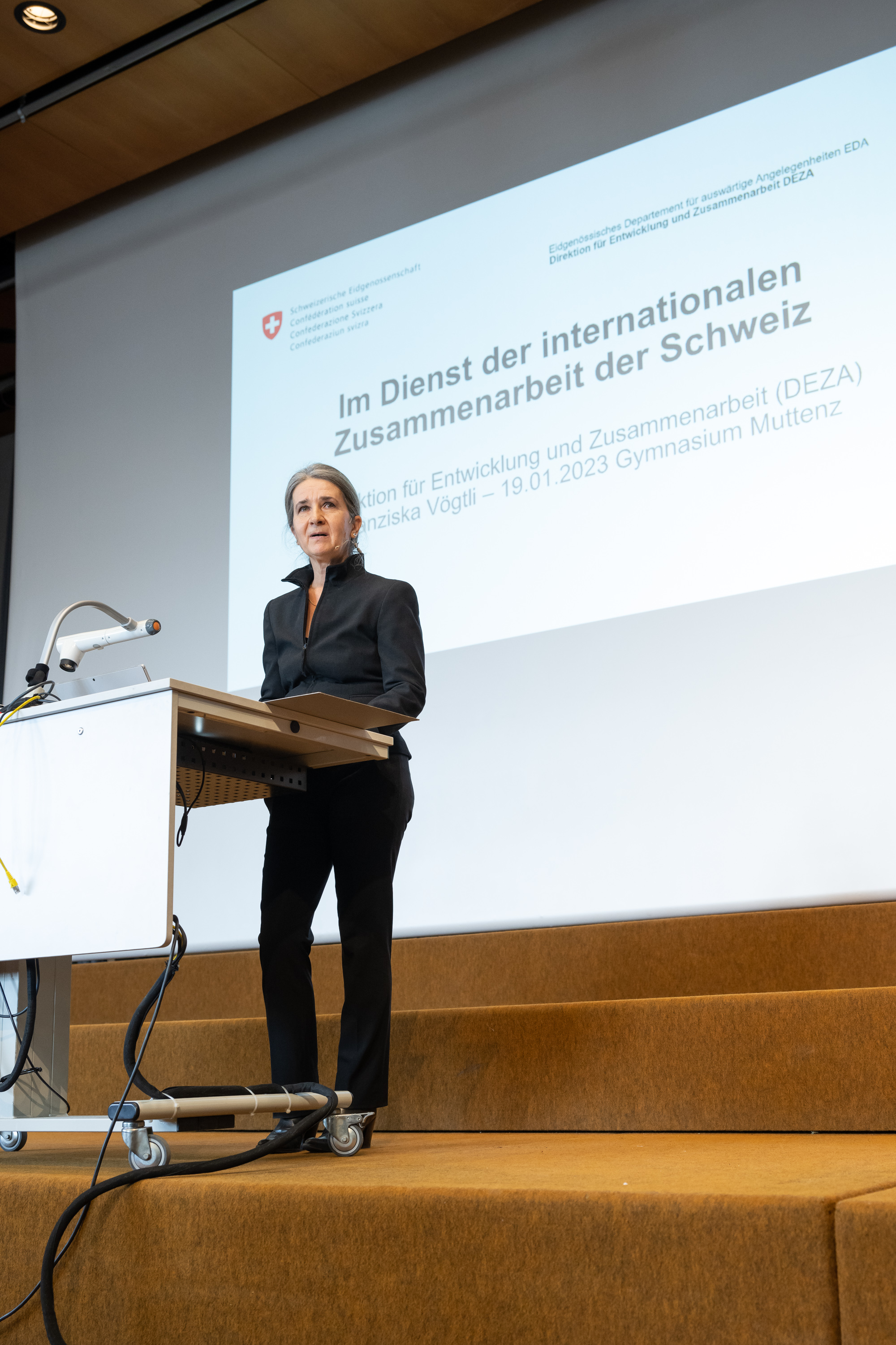 Des Weiteren erläutert Franziska Vögtli den Ausbildungsweg für junge Menschen, die gerne eine diplomatische Karriere einschlagen möchten – sicherlich hat sich die eine oder der andere Schüler*in davon angesprochen gefühlt.