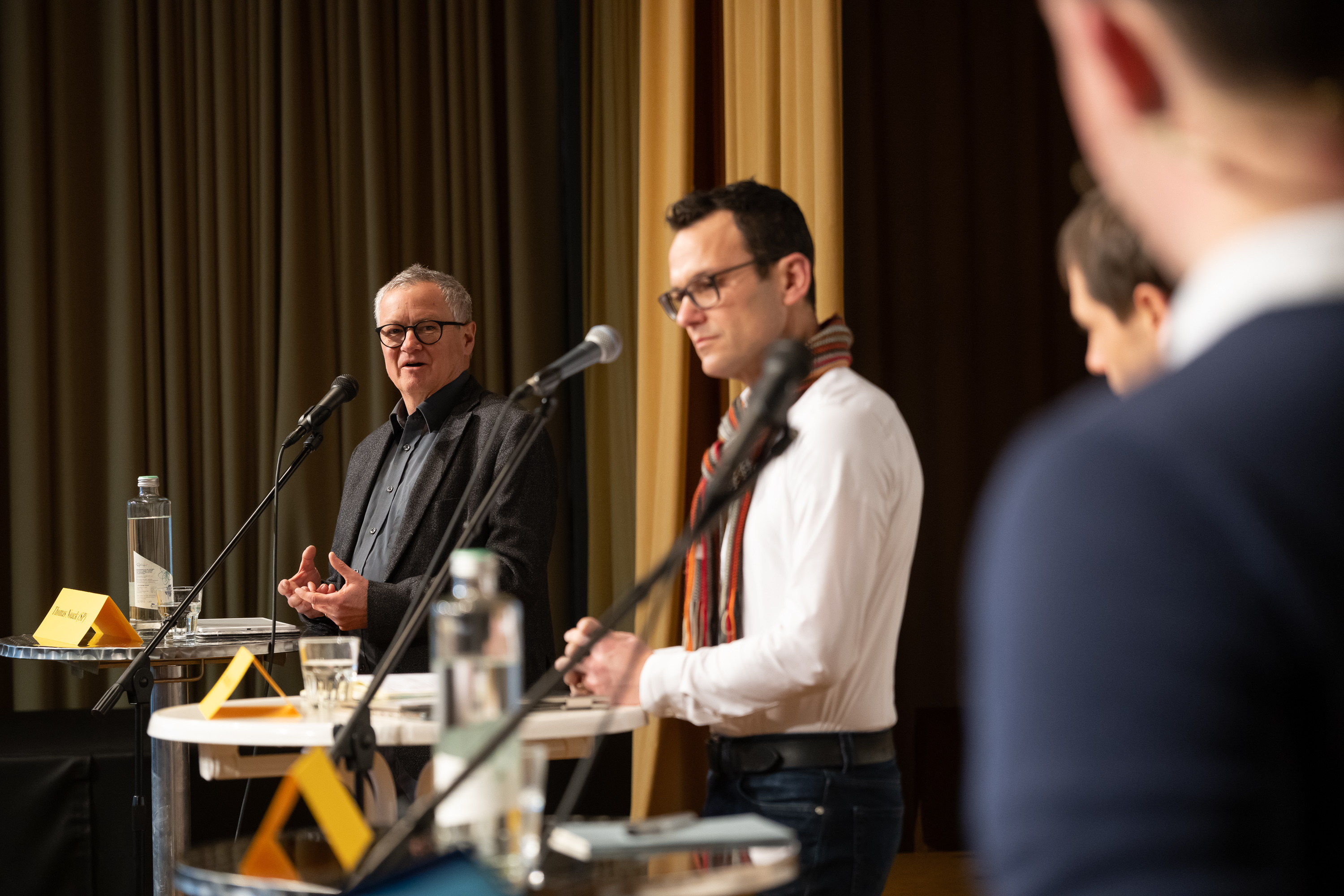 In diesem Zusammenhang müsse – auch mit Blick auf die Schulen – vor allem an den digitalen Kompetenzen gearbeitet werden. Passend dazu richtete sich Noack direkt an die Schüler:innen: «Die Digitalisierung liefert einen nahezu uneingeschränkten Zugang zu Wissen. Wir brauchen eine neue Art, damit umzugehen. Sie müssen lernen, das Wissen einzuordnen, Wertschöpfung zu generieren und die Gesellschaft so weiterzubringen.» Bei Ballmer und Jourdan wurde gerade bei diesem Schwerpunkt ihr unternehmerischer, wirtschaftsnahe Standpunkt deutlich, indem sie die Schüler:innen aufforderten, künftig innovative Firmen zu gründen.
