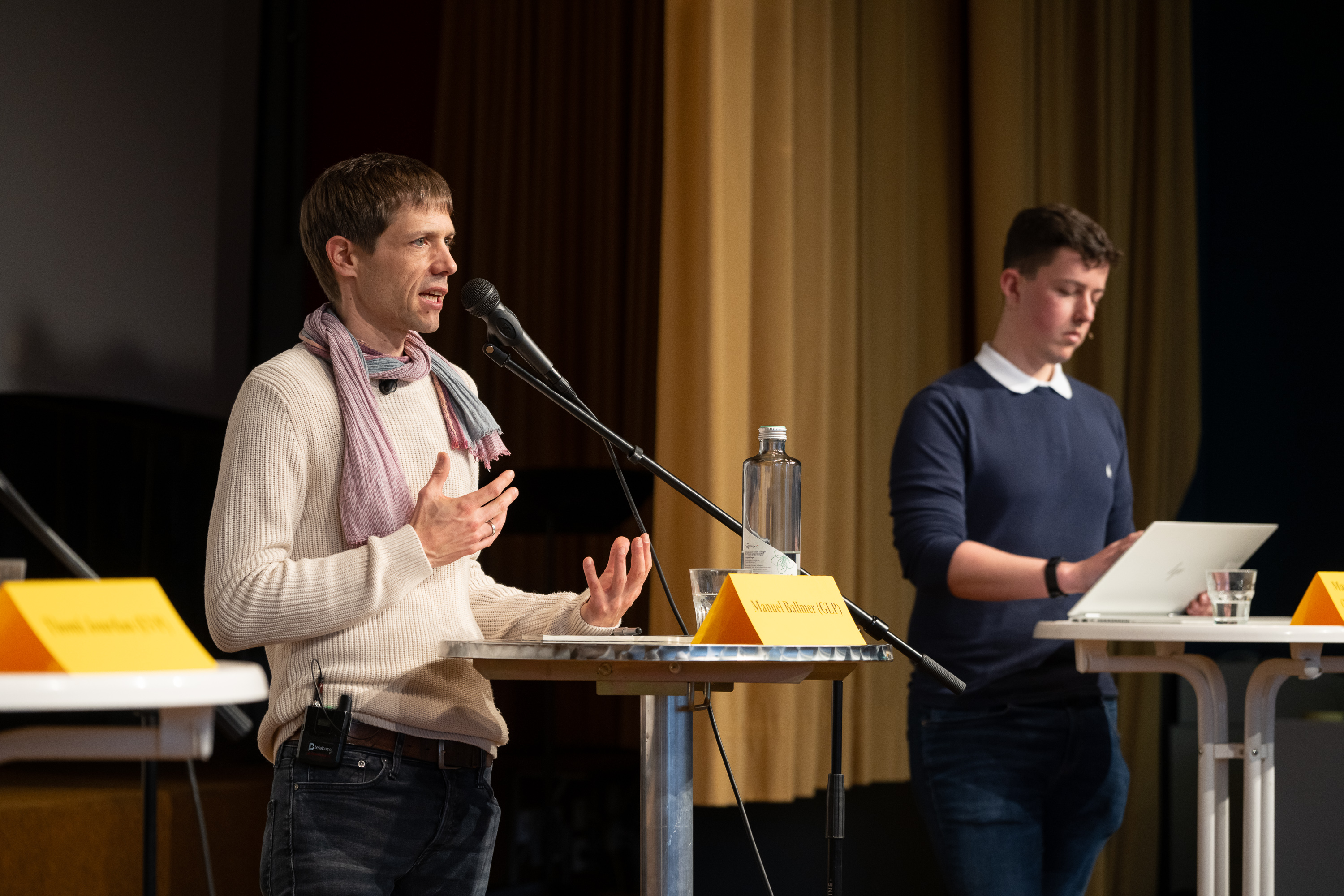 Nun waren die Schüler:innen an der Reihe und stellten einige kritische Fragen. Ob Zivilschutzanlagen für die Unterbringung von Asylsuchenden geeignet seien oder warum Menschen, die aus ferneren Ländern und Kriegen in die Schweiz flüchten, mehr Probleme bei der Aufnahme hätten. Bei der ersten Frage verwiesen die Politiker darauf, dass auch unpopuläre Entscheidungen gefällt werden müssten und dass eine Zivilschutzanlage als Notlösung akzeptabel sei. Bei den Antworten auf die zweite Frage zeigte sich – bei genauem Hinhören – eine Meinungsverschiedenheit. Während Noack der Schülerin beipflichtete und diese Ungleichheit als Defizit bezeichnete, meinte Ballmer, dass die Schweiz etwa mit syrischen Geflüchteten «nicht asozial» umgehe.