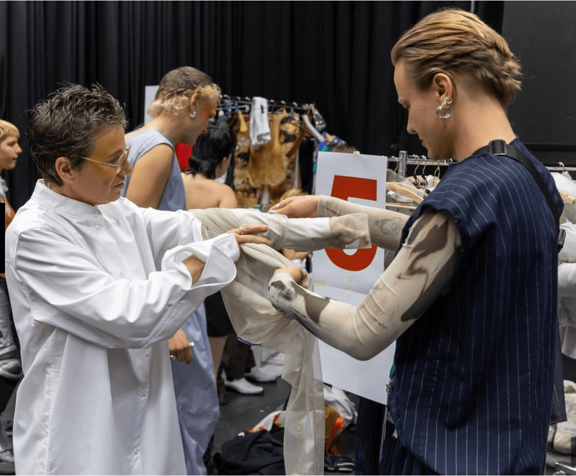 Doing Fashion ist eine Kultur und Mode-Design ist eine kulturelle Praxis. Wie koordinieren wir ästhetische und zirkuläre Methoden und Abläufe, wenn wir Mode machen? Und wie begegnen wir Forderungen nach Diversität und Verantwortung im Kontext postkolonialer Diskurse – und markieren zugleich unseren kritischen Standpunkt?