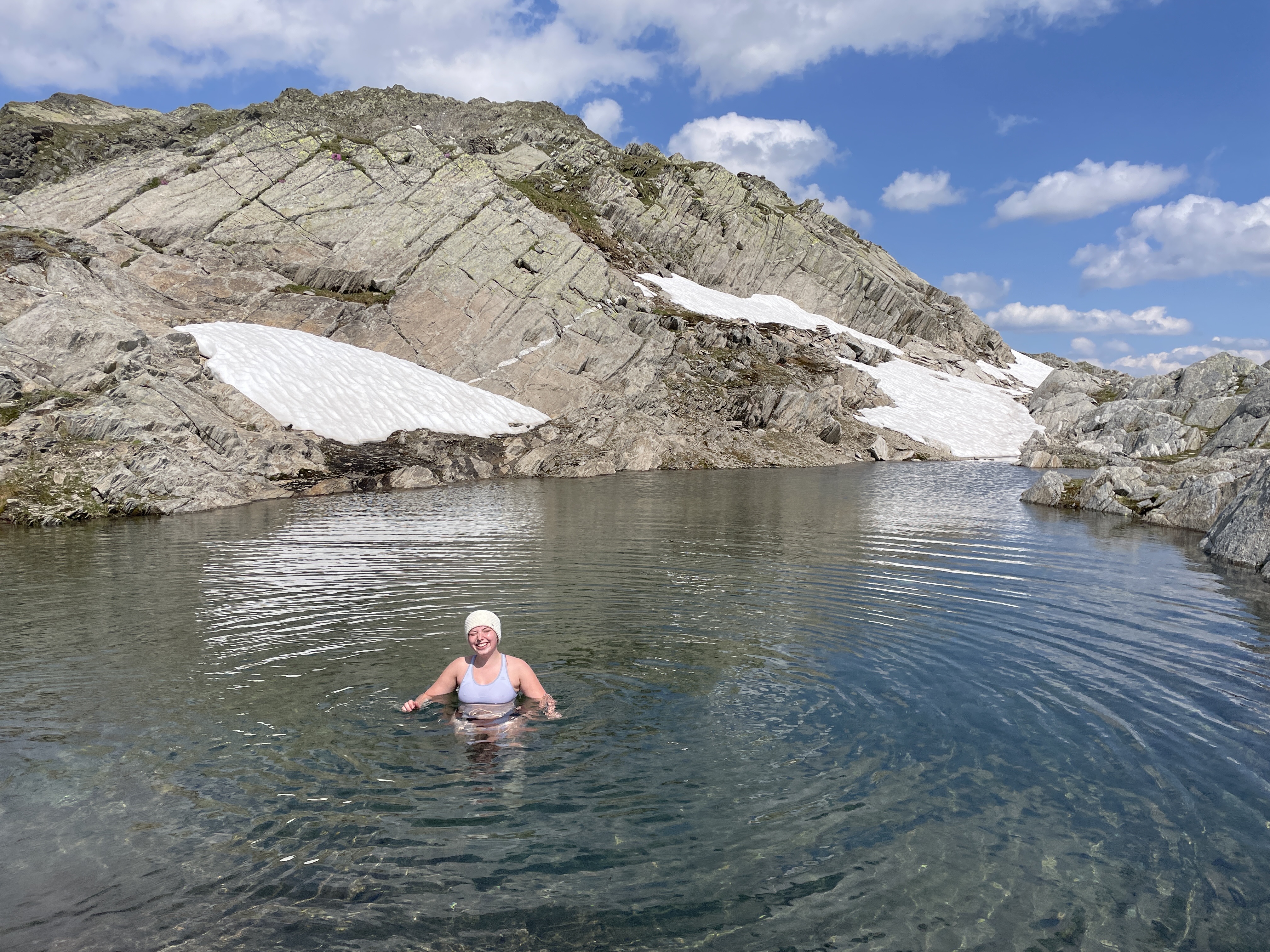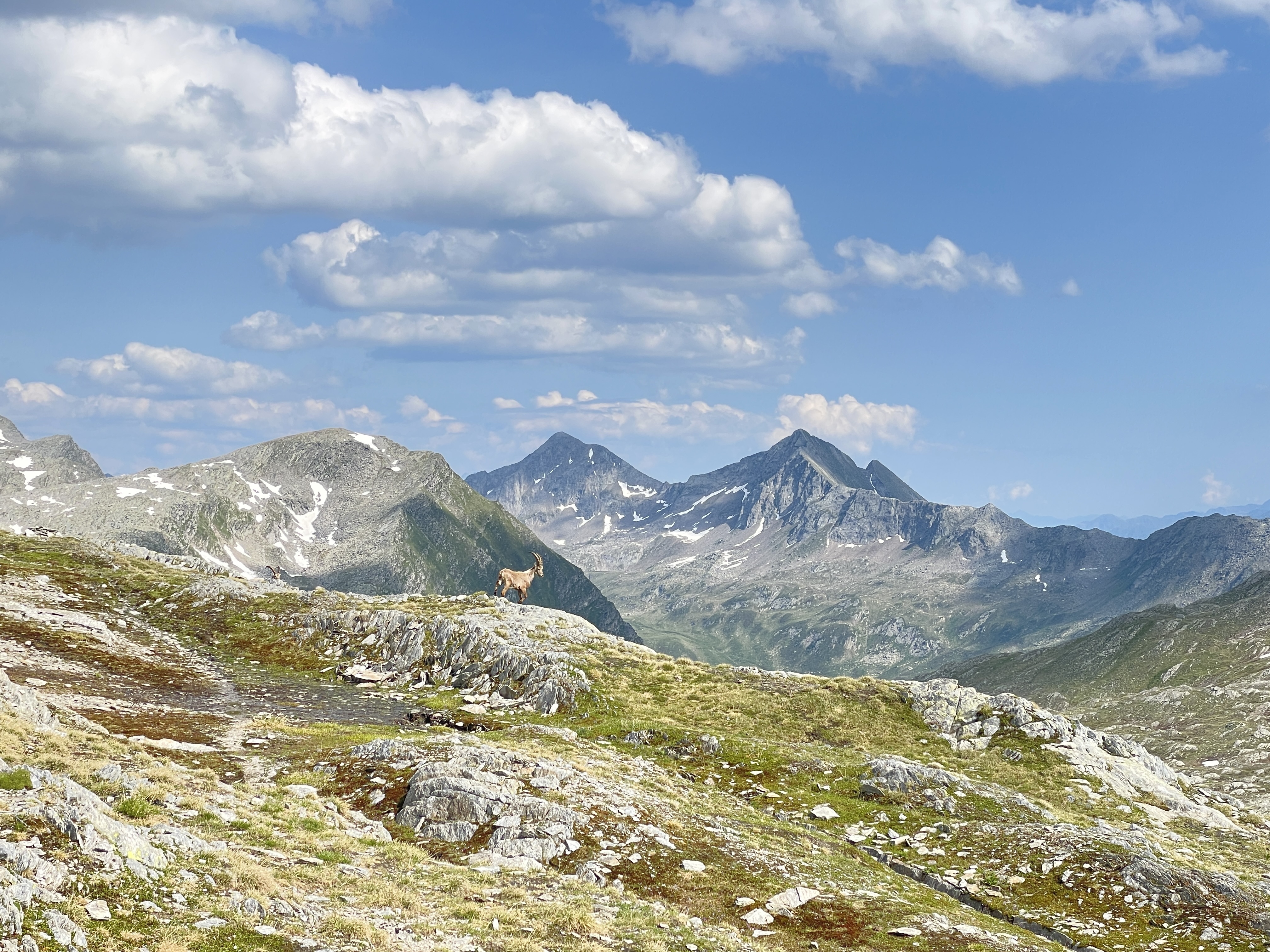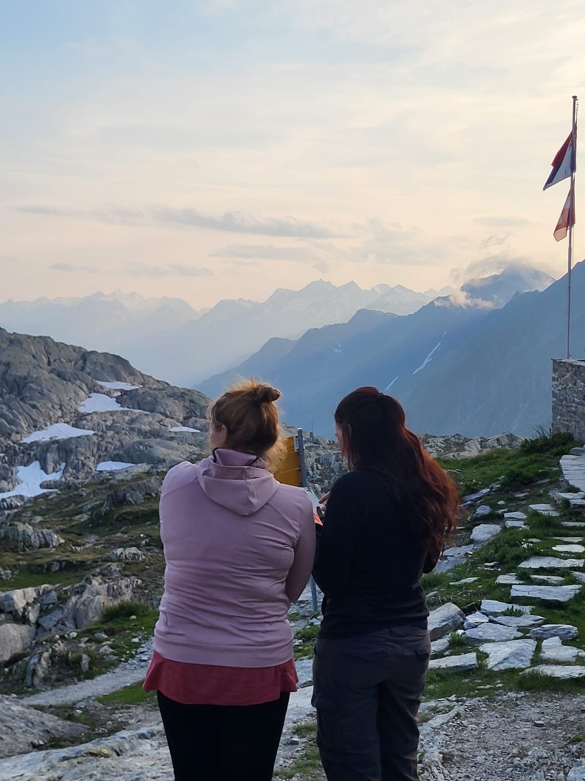 Bei der Hütte angekommen sah man in die erleichterten, glücklichen und gleichzeitig auch erschöpften Gesichter der Trekker*innen. Die Gruppe genoss den schönen Sonnenschein musikhörend und lesend in Liegestühlen, schlafend auf einer Bank oder im Bergsee. Viele der Gruppe unterzogen sich dem Härtetest und gingen im hüttennahen Bergsee baden. Kalt, aber nach der Anstrengung durchaus angenehm, liess sich der Abstecher in den See mit der wunderschönen Aussicht auf die Berglandschaft super geniessen. Nachdem auch die Zimmer bezogen und jeder genügend Pause bekommen hatte, wurden in der Ferne die ersten Steinböcke ausfindig gemacht. Hätten wir zu jenem Zeitpunkt gewusst, dass wir sie eine halbe Stunde später gleich vor der Hütte beobachten können, hätten wir uns einiges an Speicherplatz auf unseren Handys sparen können. Gemeinsam mit anderen Wandernden sassen wir im gemütlichen Esszimmer der Capanna und durften ein gutes und ausgiebiges 4-Gänge-Menü geniessen. Gemüsesuppe gefolgt von Salat und Älplermakronen bis hin zur Schokoladencreme. Es fehlte uns an nichts. Währenddessen fanden sich auf den Felsen vor der Hütte immer mehr Steinböcke zusammen, was eines unserer grössten Highlights der ganzen Woche blieb. Der ein oder andere mag sich jetzt wohl fragen, warum diese Tiere so nahe zur Hütte kommen. Die Tiere werden mit Salzlecksteinen angefüttert und lassen sich so jeden Abend blicken. Den Anblick dieser freien, flinken und doch so stolzen Tiere in einer atemberaubenden Gebirgslandschaft sehen zu dürfen, war ein Erlebnis, welches wir nicht so schnell vergessen werden. Dieser erste Tag ging mit wundervollen Erinnerungen, tollen Gesprächen und einer erschöpften Truppe erfolgreich zu Ende.