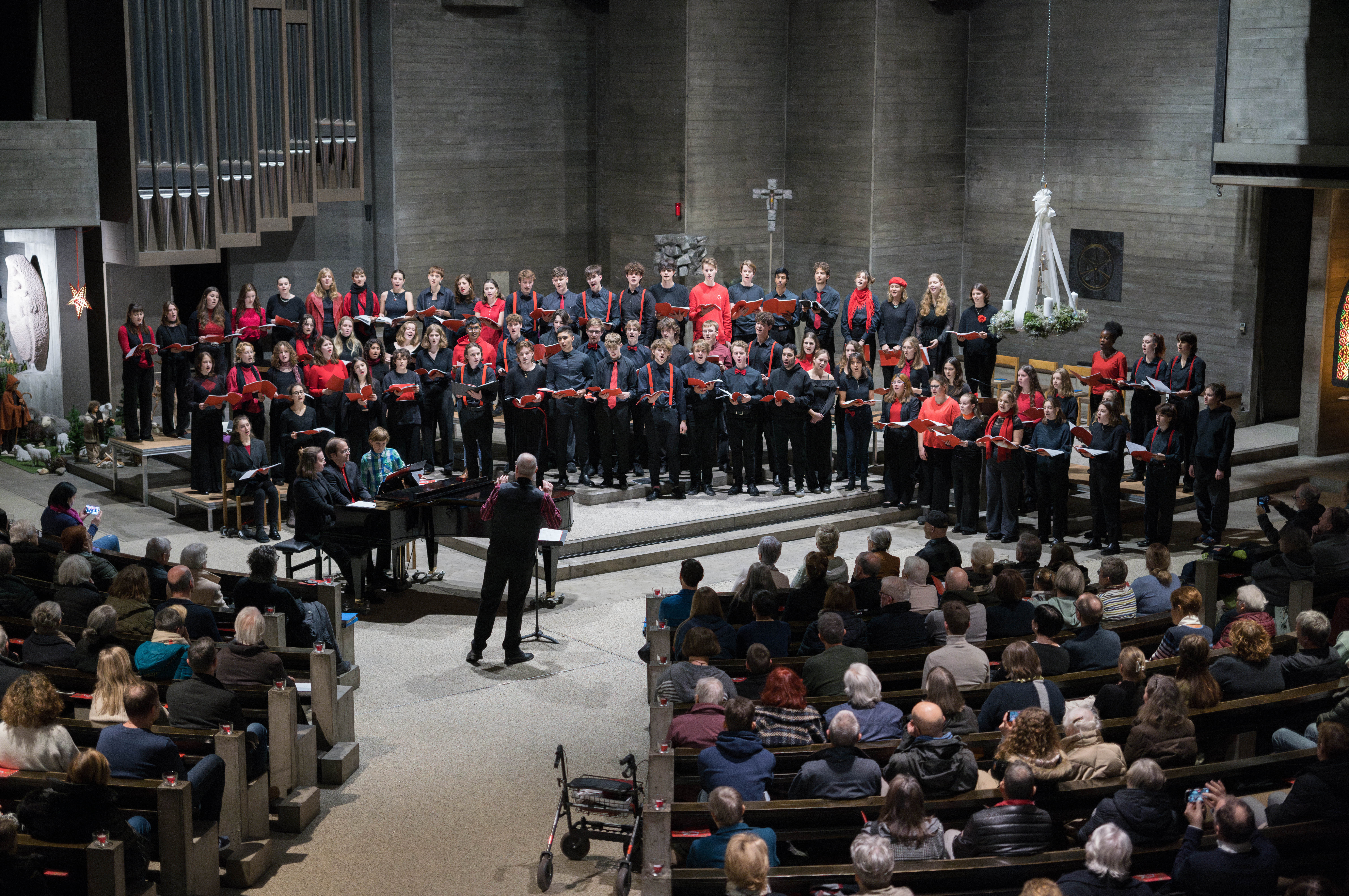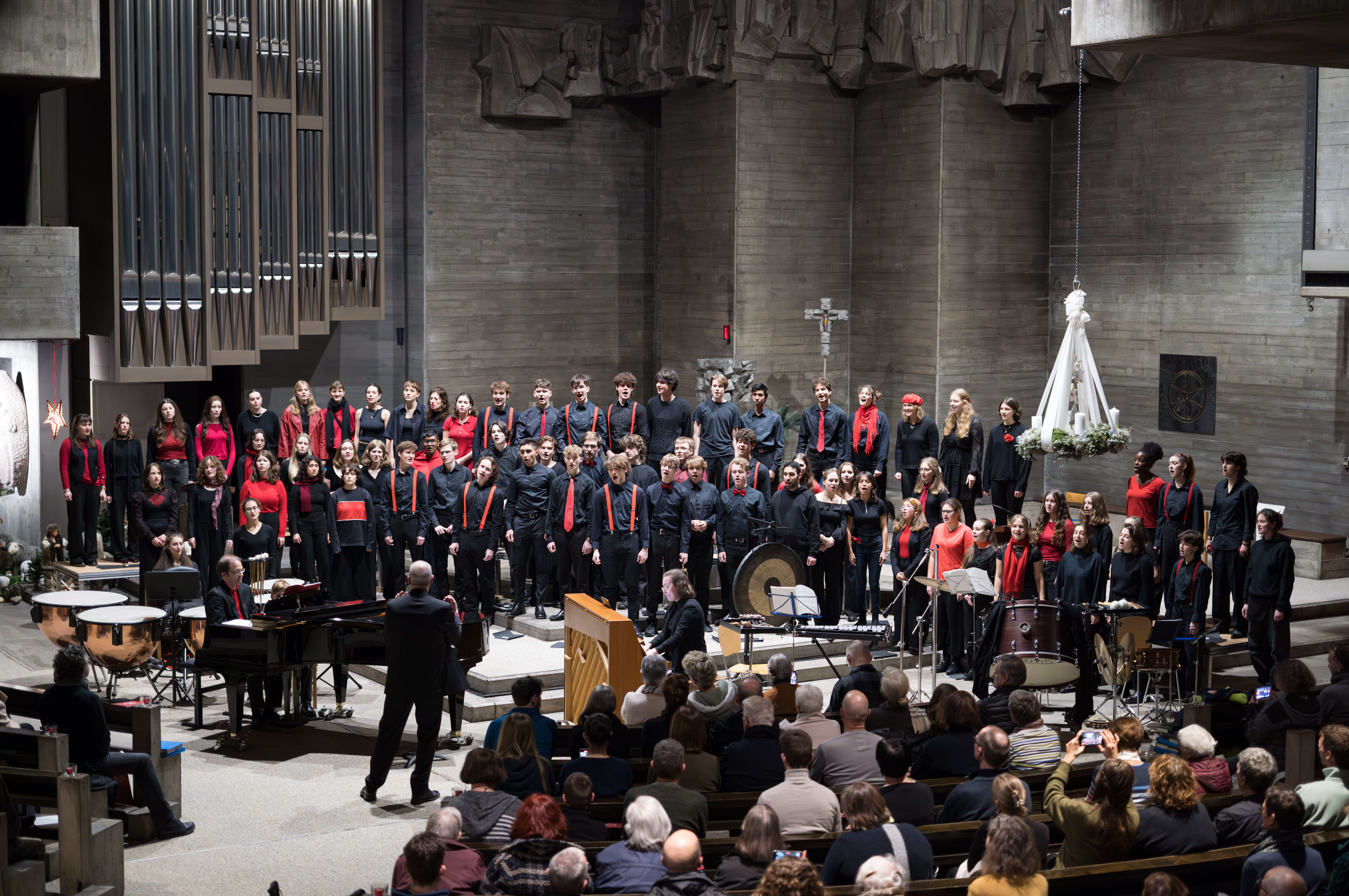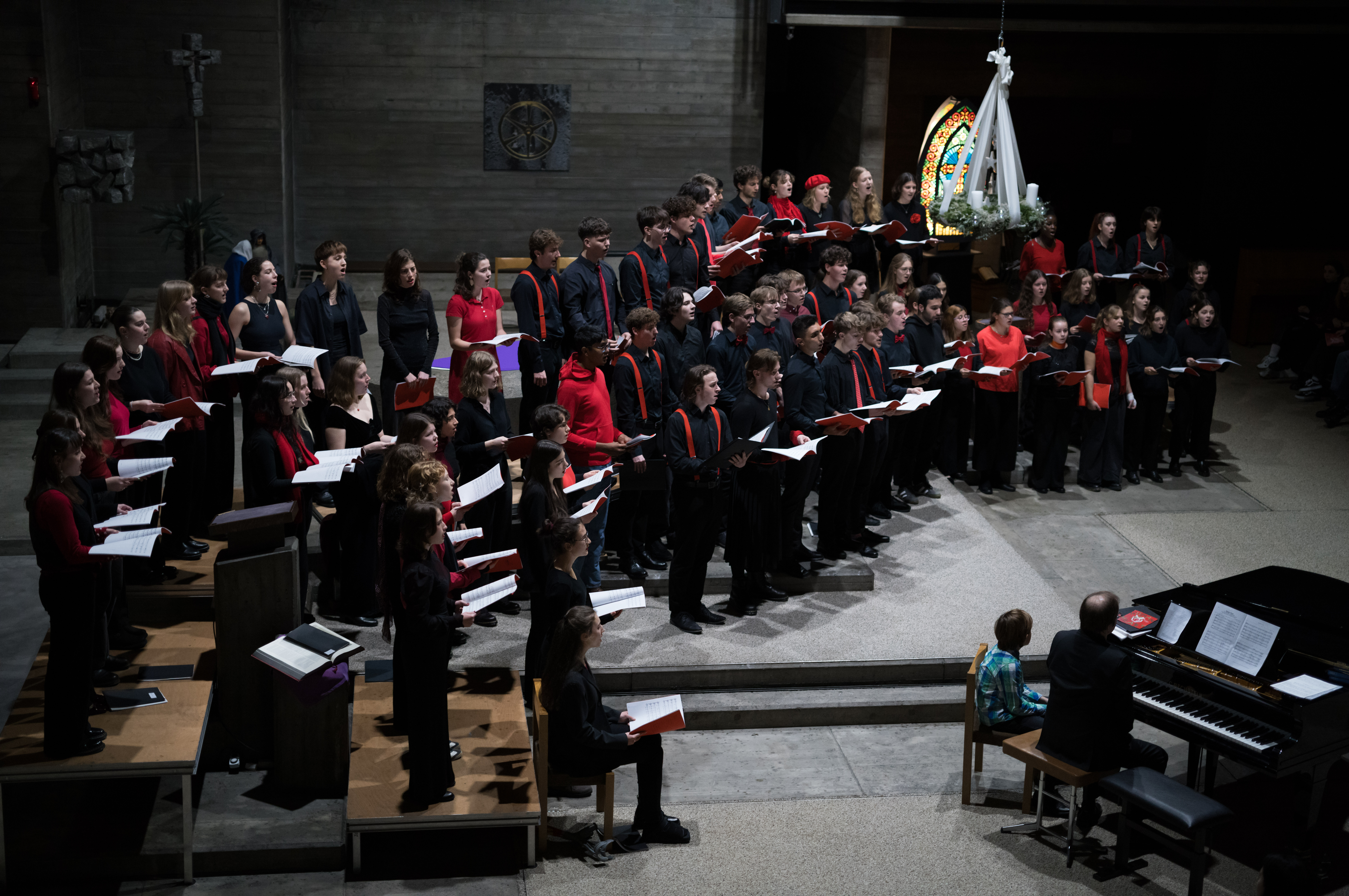 Joanna Ewa Dymurska: Im Pfarreisaal herrscht bereits eine spürbare Aufregung. Die Atmosphäre ist elektrisierend, und letzte Schliffe an den Kostümen werden vorgenommen. Es ist wieder so weit: Das diesjährige Weihnachtskonzert steht bevor. Die Schülerinnen und Schüler betreten voller Selbstbewusstsein die Kirche und verteilen sich im Saal, bereit, mit dem Lied „Spirit of God“ zu starten.