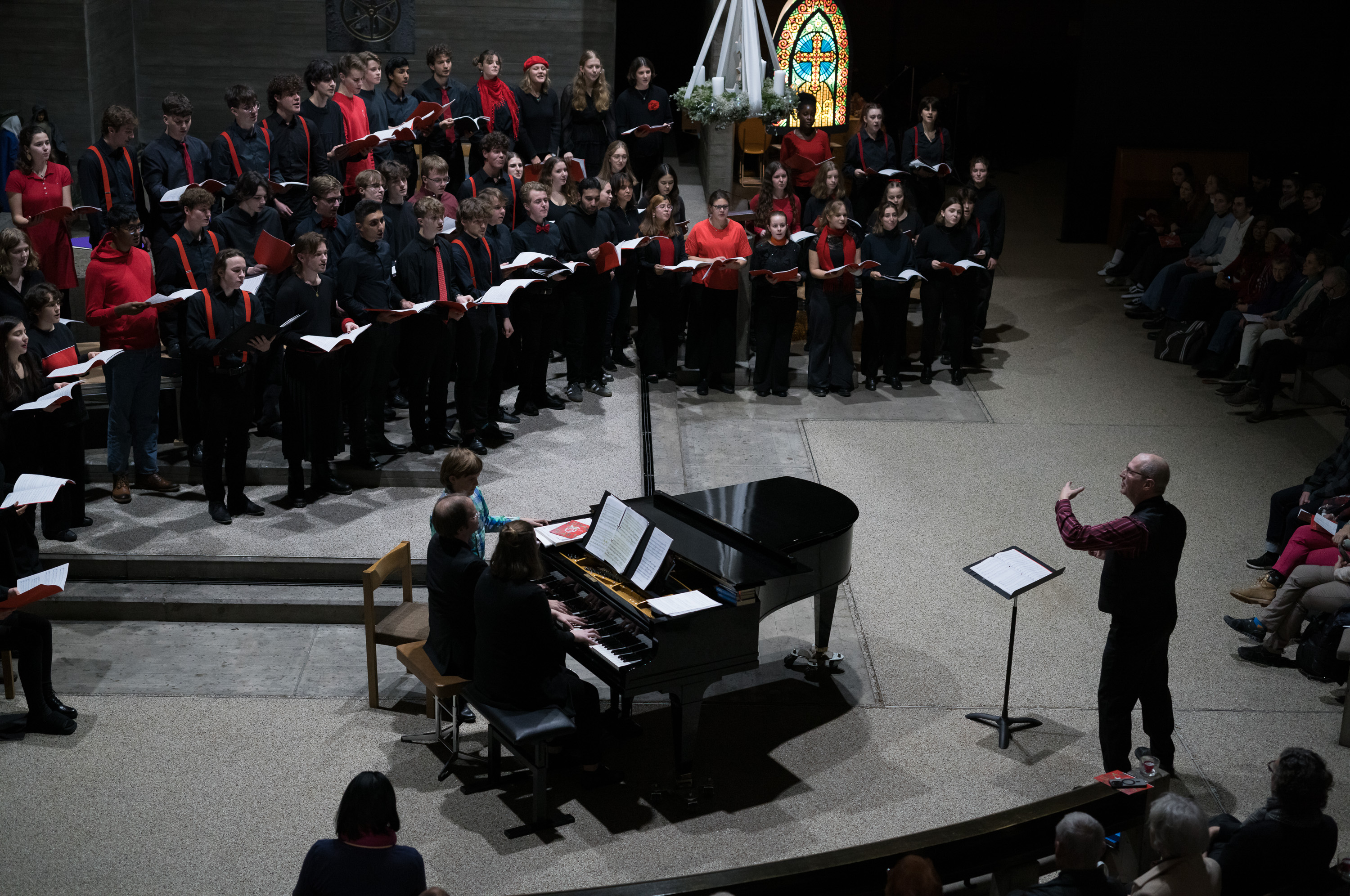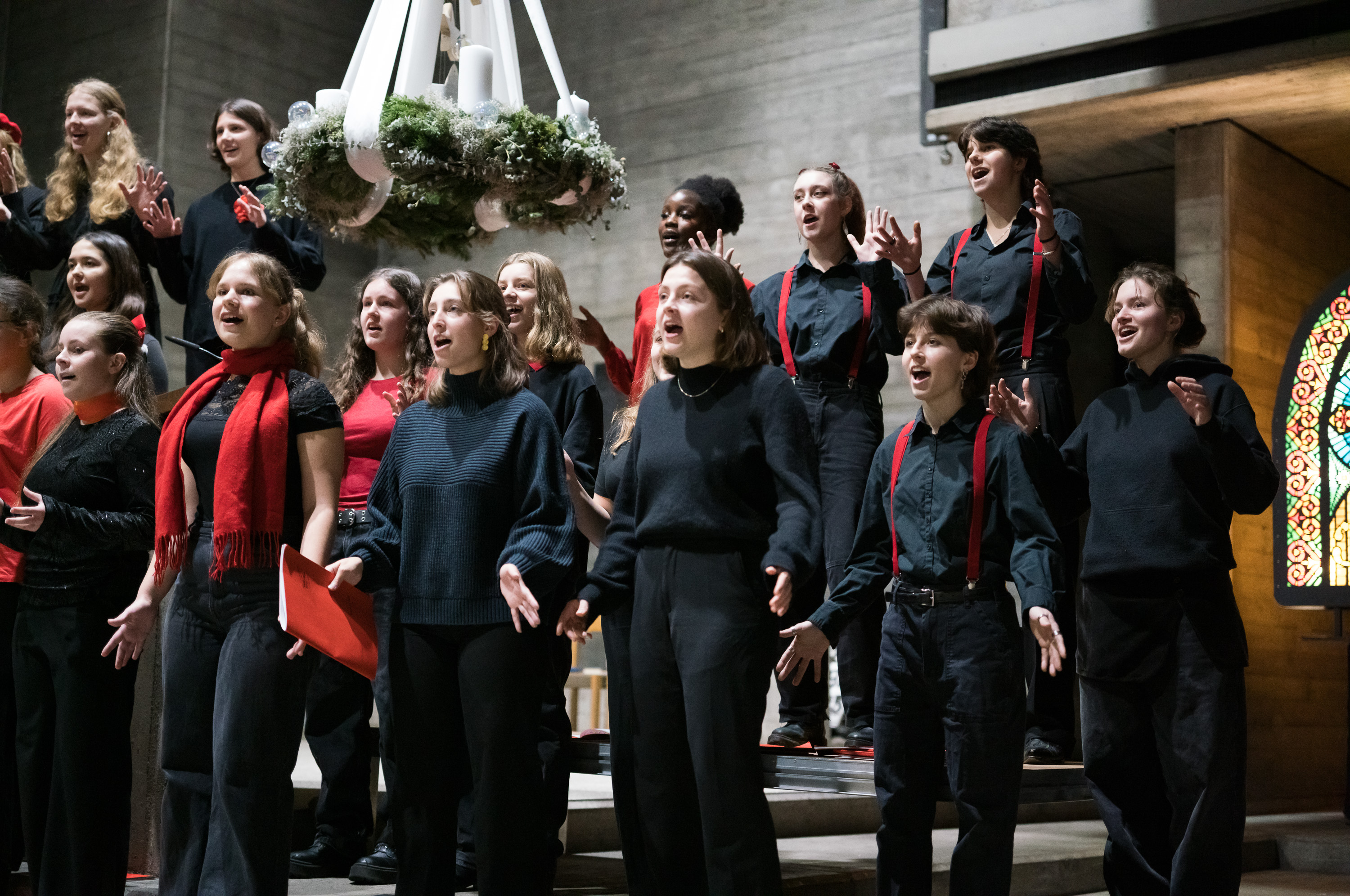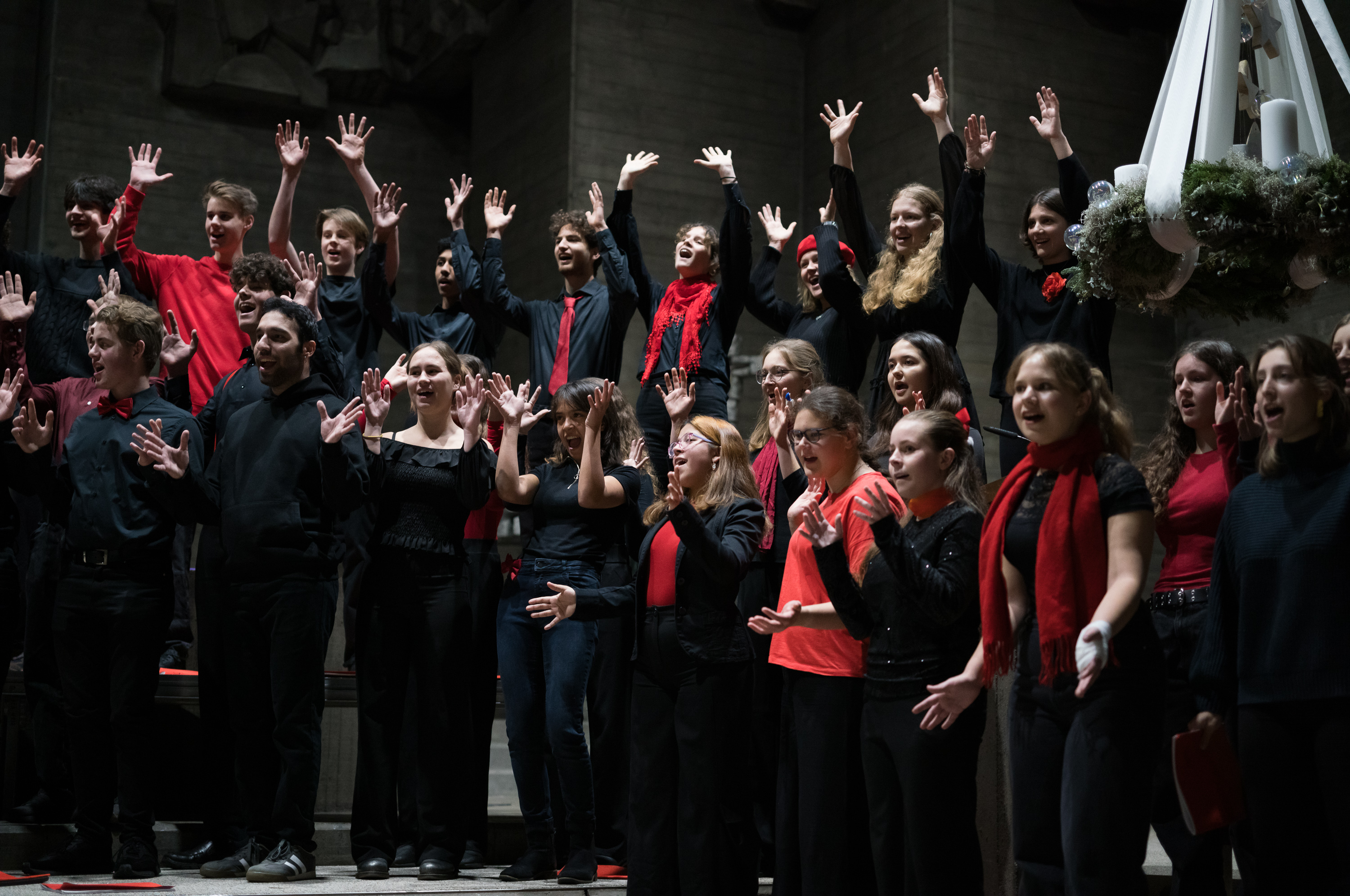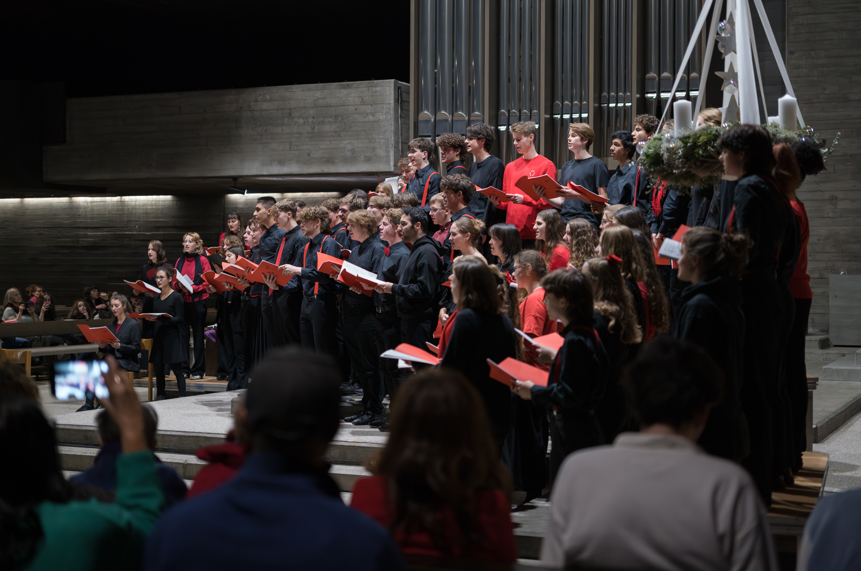 Elina Maria Umbricht: Ich sitze mit meiner Familie im Publikum und lausche gespannt den Klängen des Chores. Von hinten betreten die Sängerinnen und Sänger den Raum und bewegen sich in Richtung Bühne. Doch anstatt sich erwartungsgemäss vorne aufzustellen, verteilen sie sich im Raum. So erklingen die ersten Töne des diesjährigen Weihnachtskonzerts mit „Spirit of God“ von allen Seiten, und die Zuhörer werden von den ruhigen, harmonischen Klängen umhüllt.