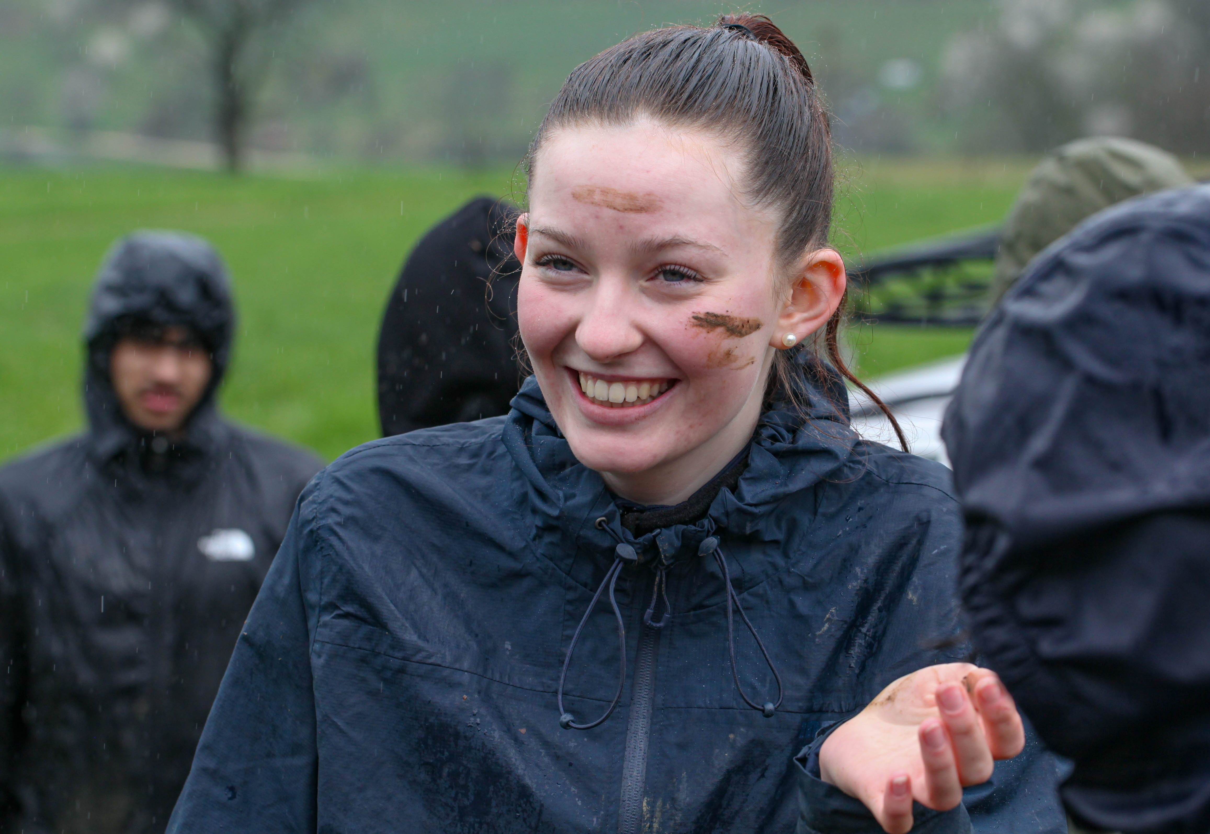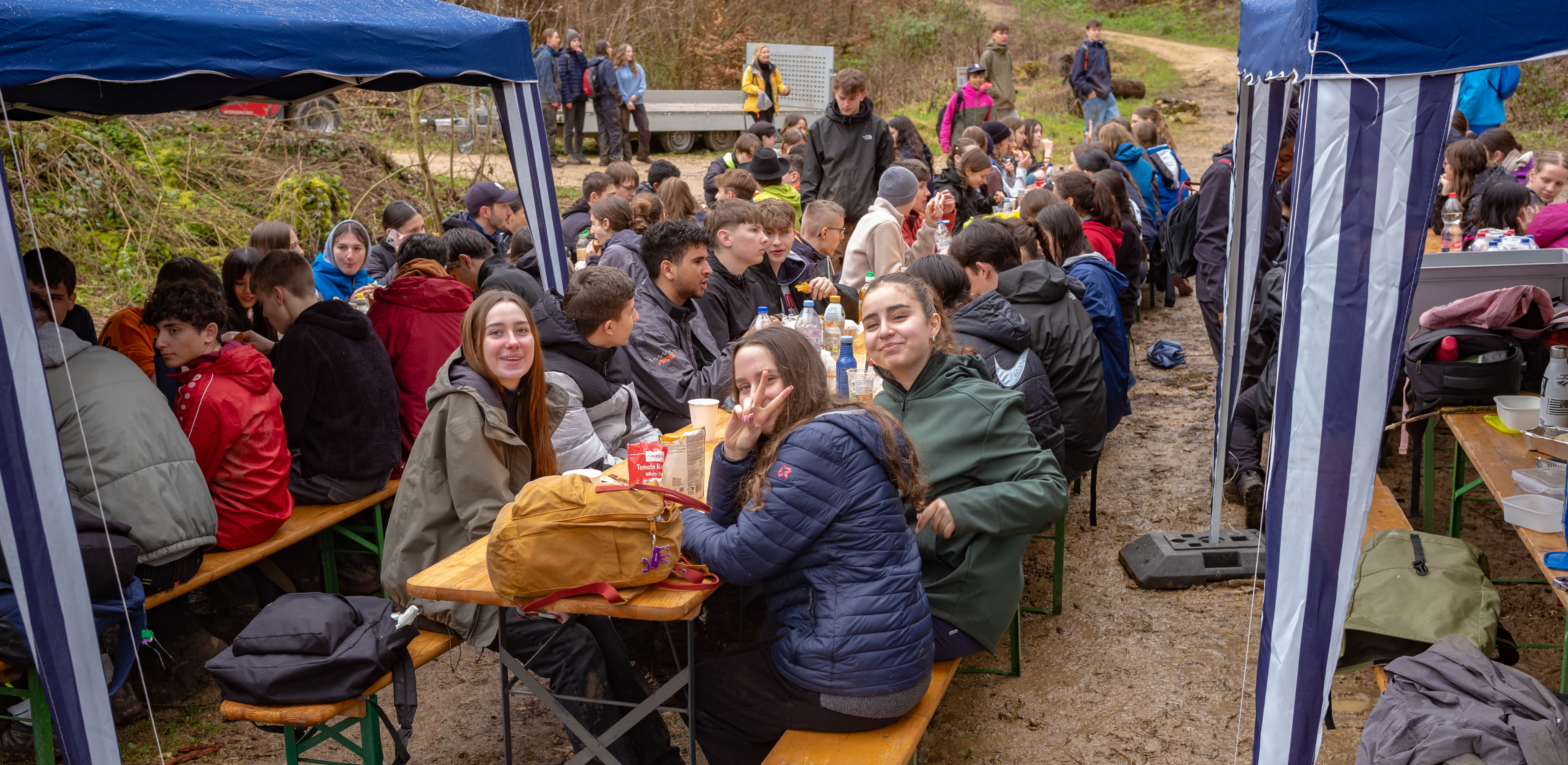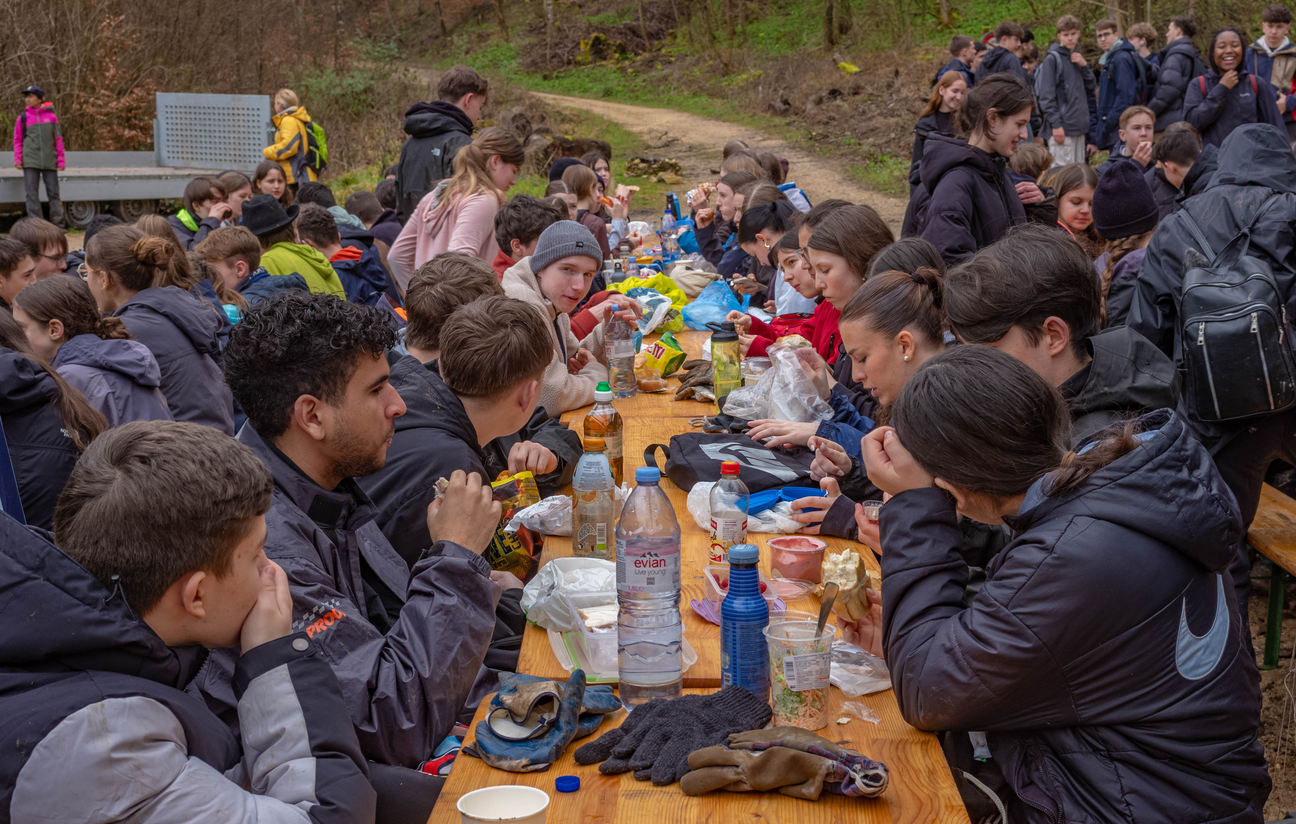 Nach getaner Arbeit trafen sich alle Mitwirkenden an den Grillschalen und Festbänken des Mittagsrastplatzes. Mittlerweile hatte der Regen aufgehört und die Sonne zeigte sich sogar, zumindest gelegentlich. Nachdem alle zufrieden gegessen hatten, bedankte sich der leitende Förster für unseren wertvollen Beitrag zur Bewältigung der Klima- und Biodiversitätskrise. Spätestens jetzt war die verschmierte Mascara nicht mehr ganz so schlimm.