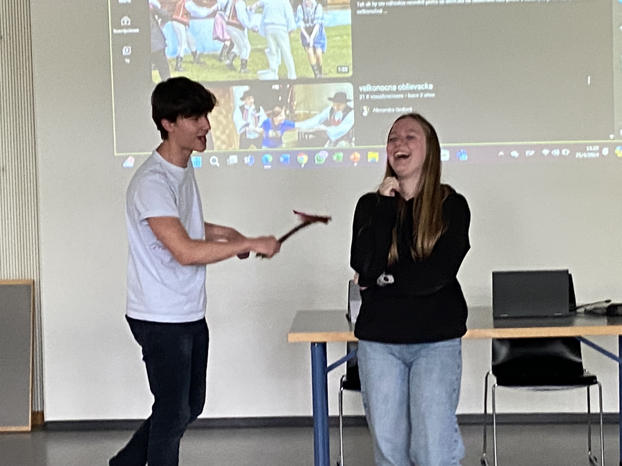 Sie gewährten allen einen faszinierenden Einblick in die Vielfalt und den Reichtum ihrer Heimatländer. Es gab Tanz-Präsentationen: Der Flamenco aus Spanien begeisterte uns mit seinen leidenschaftlichen Bewegungen und die Cueca aus Chile mit fröhlichen und rhythmischen Schritten, während der Haka aus Neuseeland mit seiner Ausdruckskraft und kulturellen Bedeutung beeindruckte. Es gab auch einen Origami-Workshop, der von einer thailändischen Schülerin präsentiert wurde, und wir übten uns in der Aussprache von unaussprechlichen französischen und brasilianischen Sätzen. Schüler:innen aus der Slowakei stellten uns ihre Ostertradition «Šibačka» vor, bei der Frauen mit bemalten Ostereiern beschenkt und mit Wasser bespritzt werden, um Gesundheit und Fruchtbarkeit zu fördern.