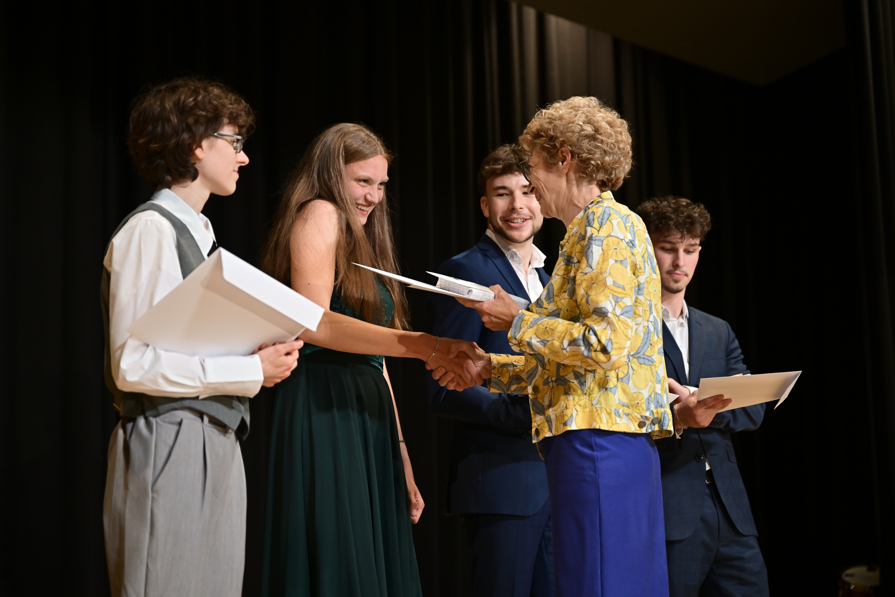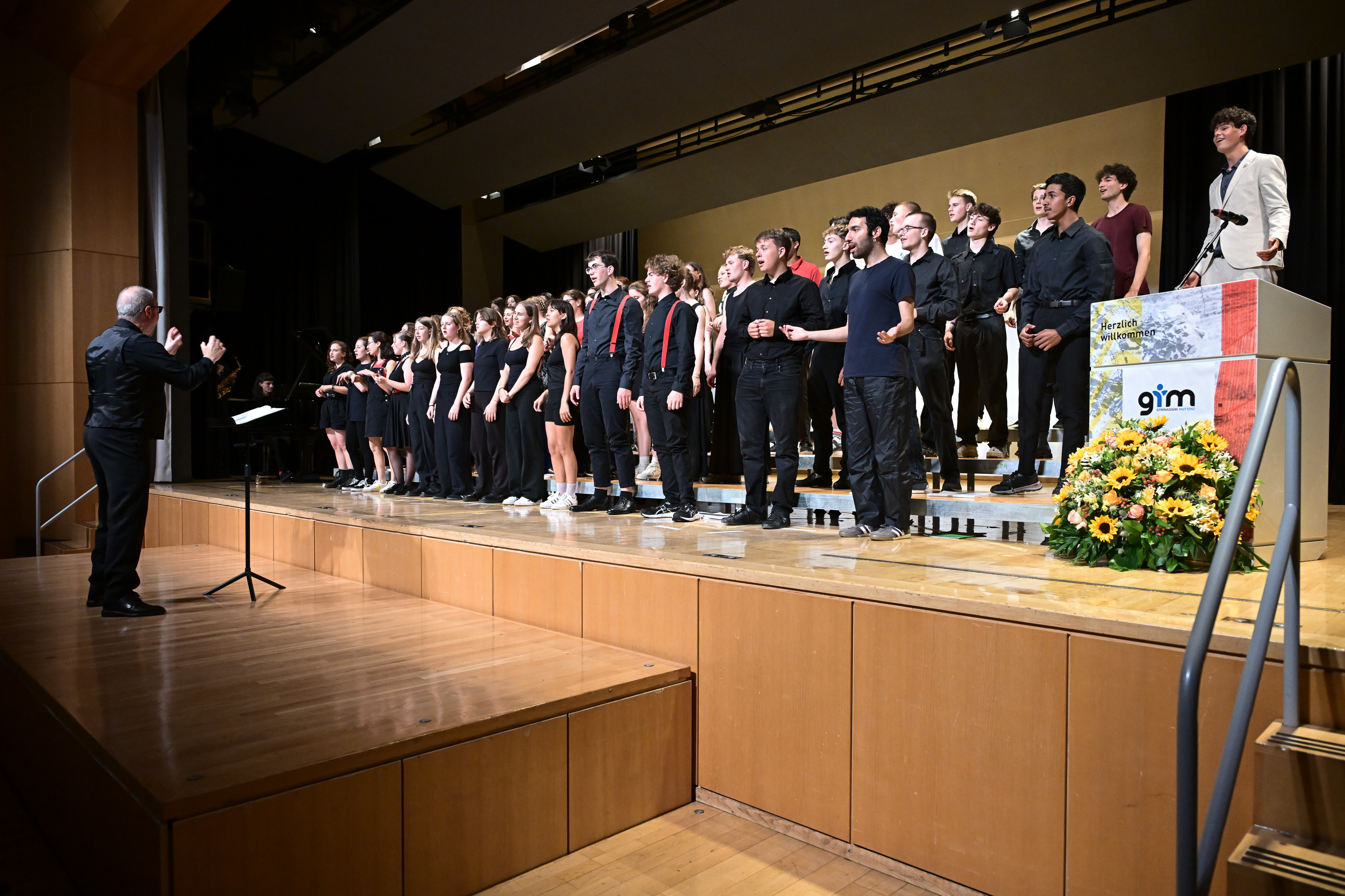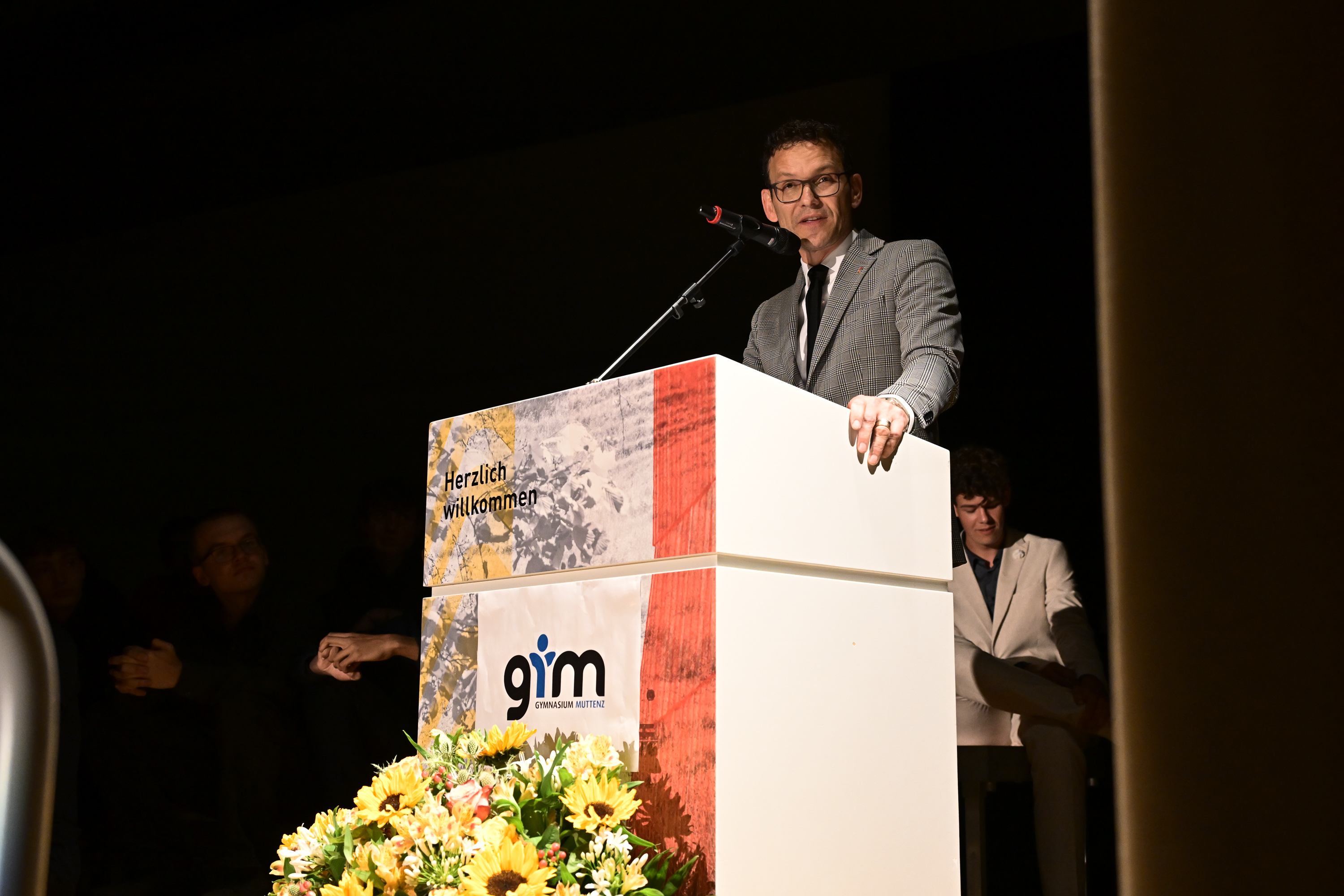 Applaus und ein Appell zugunsten der direktmenschlichen Begegnung kamen auch vom amtierenden Gesundheitsdirektor des Kantons, Regierungsrat Thomi Jourdan, der im Jahr 1993 am Gymnasium Muttenz selbst seine Matur gemacht hatte. In einem Slam-Beitrag von zwei Schülerinnen und in der Rede eines Maturanden klangen dann sarkastischere Töne an – feierlich, rhythmisch und fröhlich umrahmt von Beiträgen des Gym Chors, einer Schlagzeug-Performance und dem Musical-Wahlkurs. Bevor dieser „La Vie Bohème“ feierte, hatte die Schulratspräsidentin Susanna Käch noch das Wort ergriffen, um unserer Rektorin Brigitte Jäggi für das unermüdliche Engagement zu danken und um die besondere Leistung der ersten Frau im Amt der Rektorin eines Baselbieter Gymnasiums zu loben. Hierbei speziell erwähnt wurden die Pionierrolle des Gym Muttenz bei der Digitalisierung und die Erlangung und Bestätigung des MINT-Labels, verliehen von der Schweizerischen Akademie der Wissenschaften.