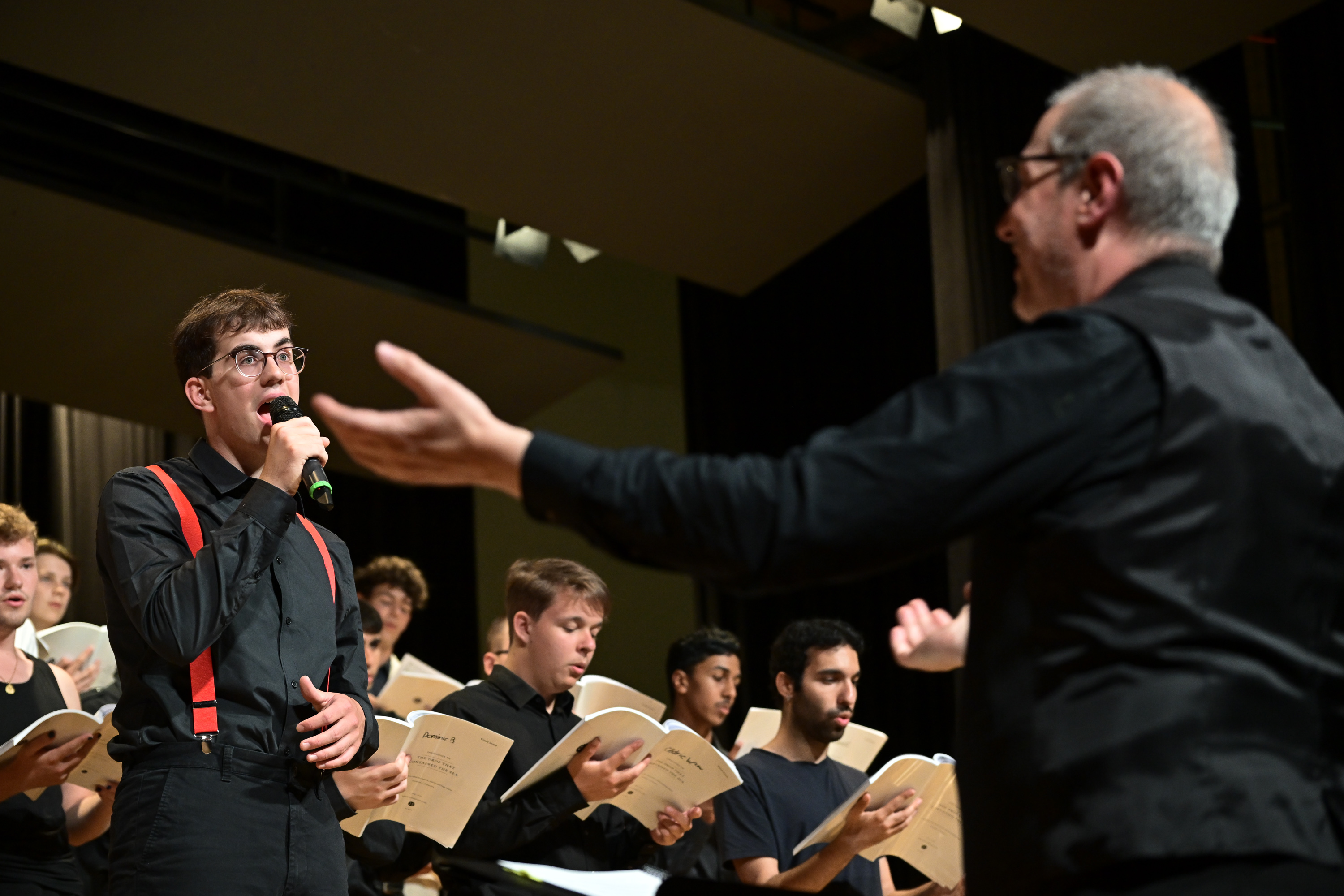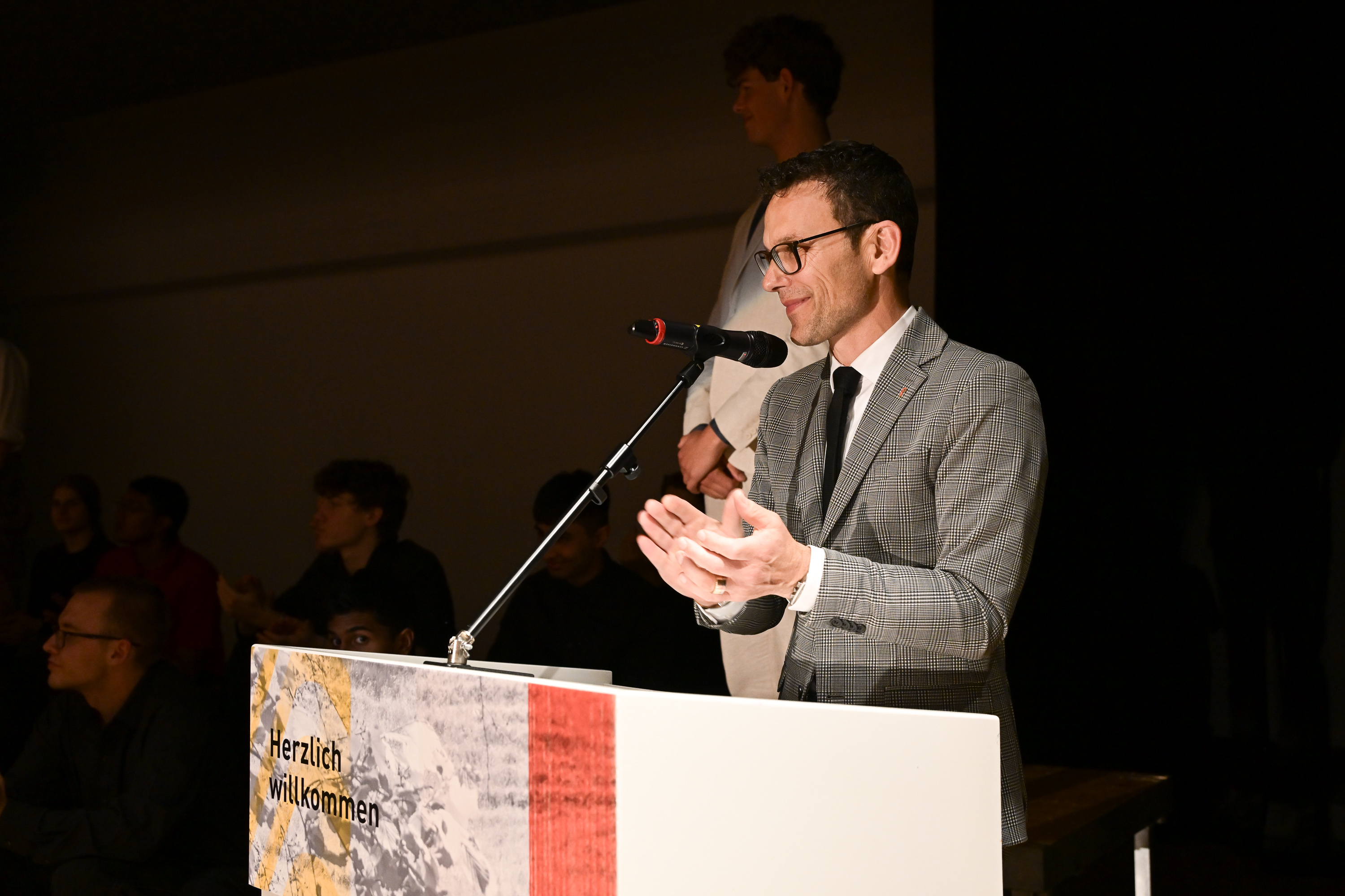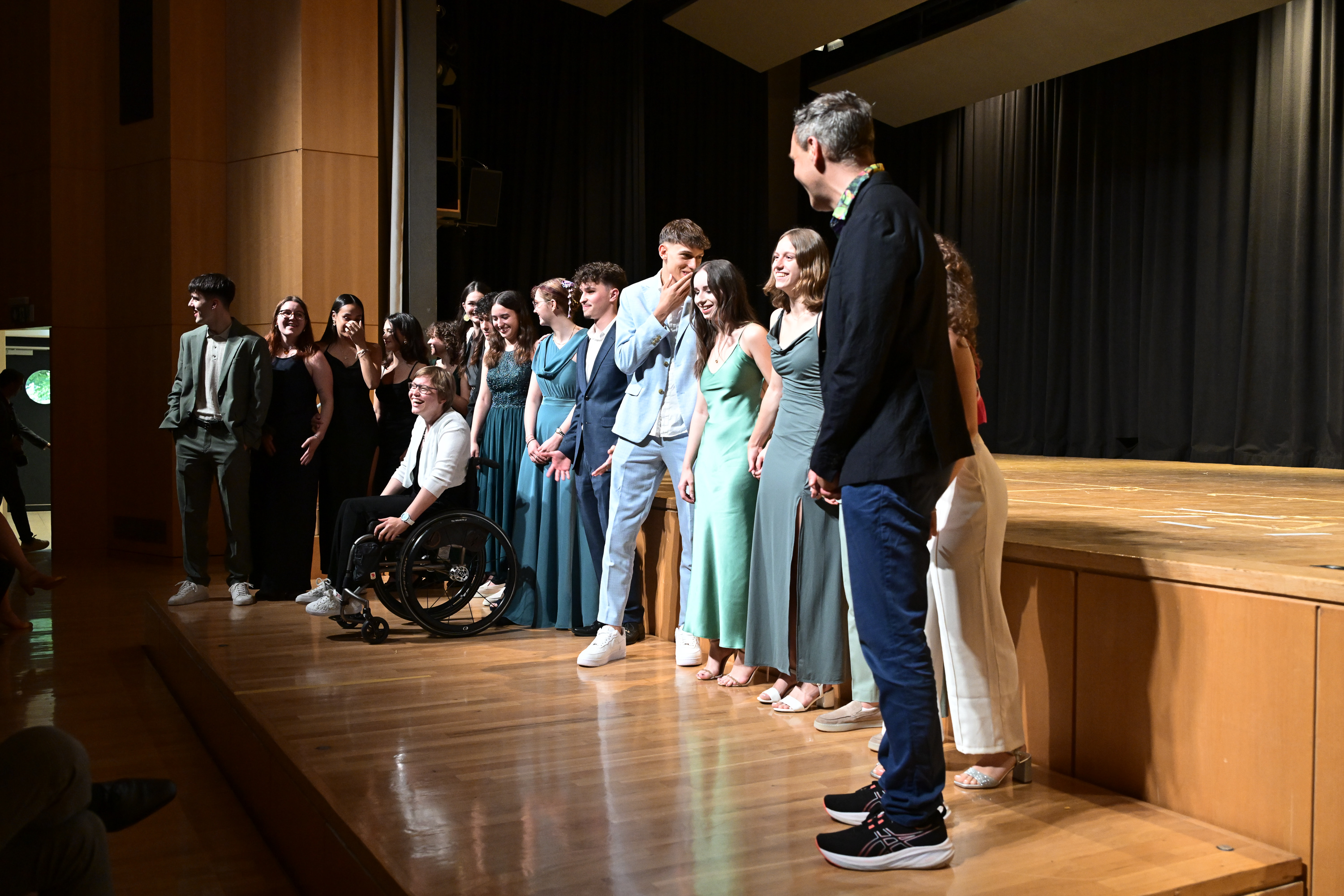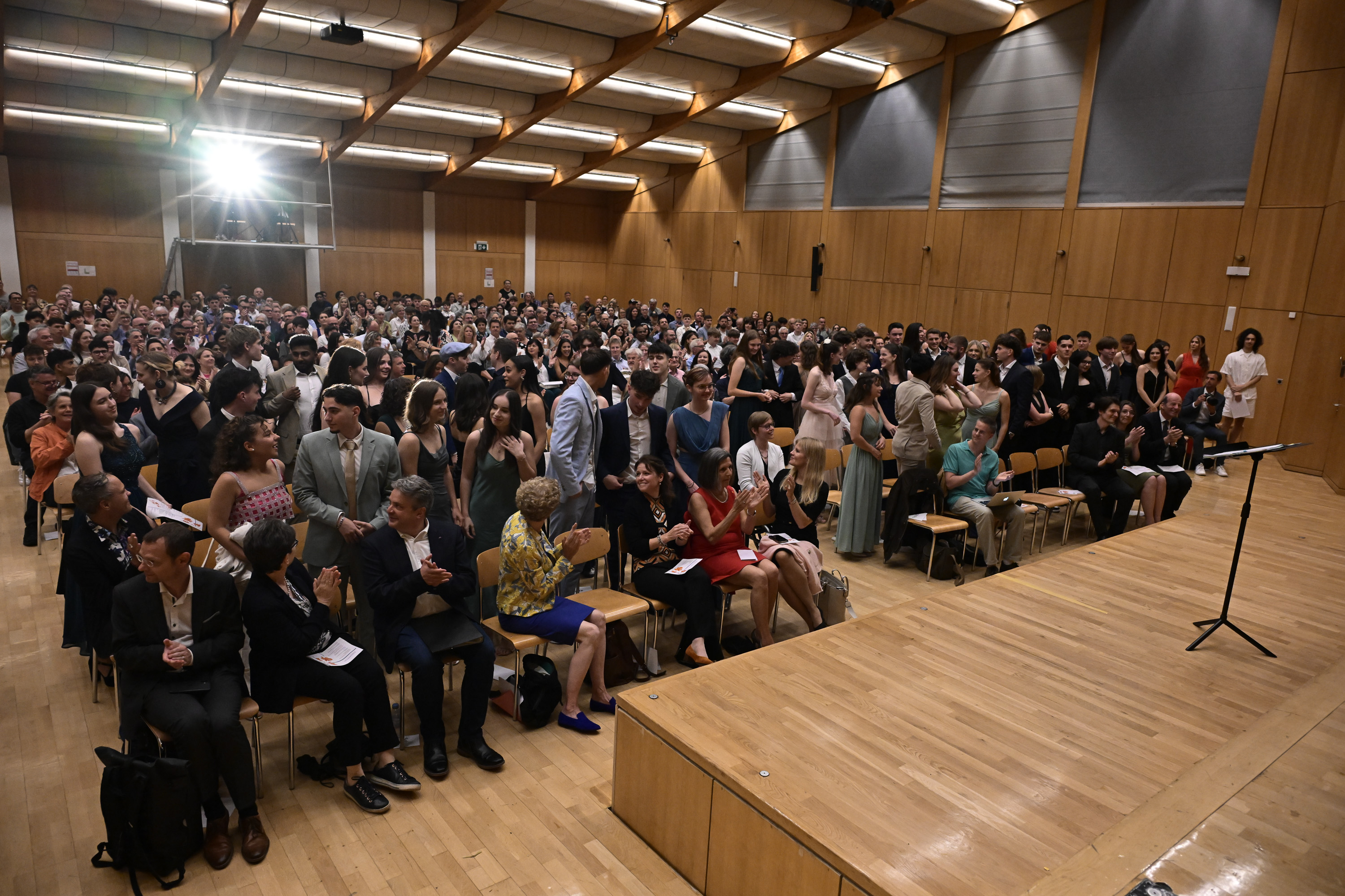 Applaus und ein Appell zugunsten der direktmenschlichen Begegnung kamen auch vom amtierenden Gesundheitsdirektor des Kantons, Regierungsrat Thomi Jourdan, der im Jahr 1993 am Gymnasium Muttenz selbst seine Matur gemacht hatte. In einem Slam-Beitrag von zwei Schülerinnen und in der Rede eines Maturanden klangen dann sarkastischere Töne an – feierlich, rhythmisch und fröhlich umrahmt von Beiträgen des Gym Chors, einer Schlagzeug-Performance und dem Musical-Wahlkurs. Bevor dieser „La Vie Bohème“ feierte, hatte die Schulratspräsidentin Susanna Käch noch das Wort ergriffen, um unserer Rektorin Brigitte Jäggi für das unermüdliche Engagement zu danken und um die besondere Leistung der ersten Frau im Amt der Rektorin eines Baselbieter Gymnasiums zu loben. Hierbei speziell erwähnt wurden die Pionierrolle des Gym Muttenz bei der Digitalisierung und die Erlangung und Bestätigung des MINT-Labels, verliehen von der Schweizerischen Akademie der Wissenschaften.