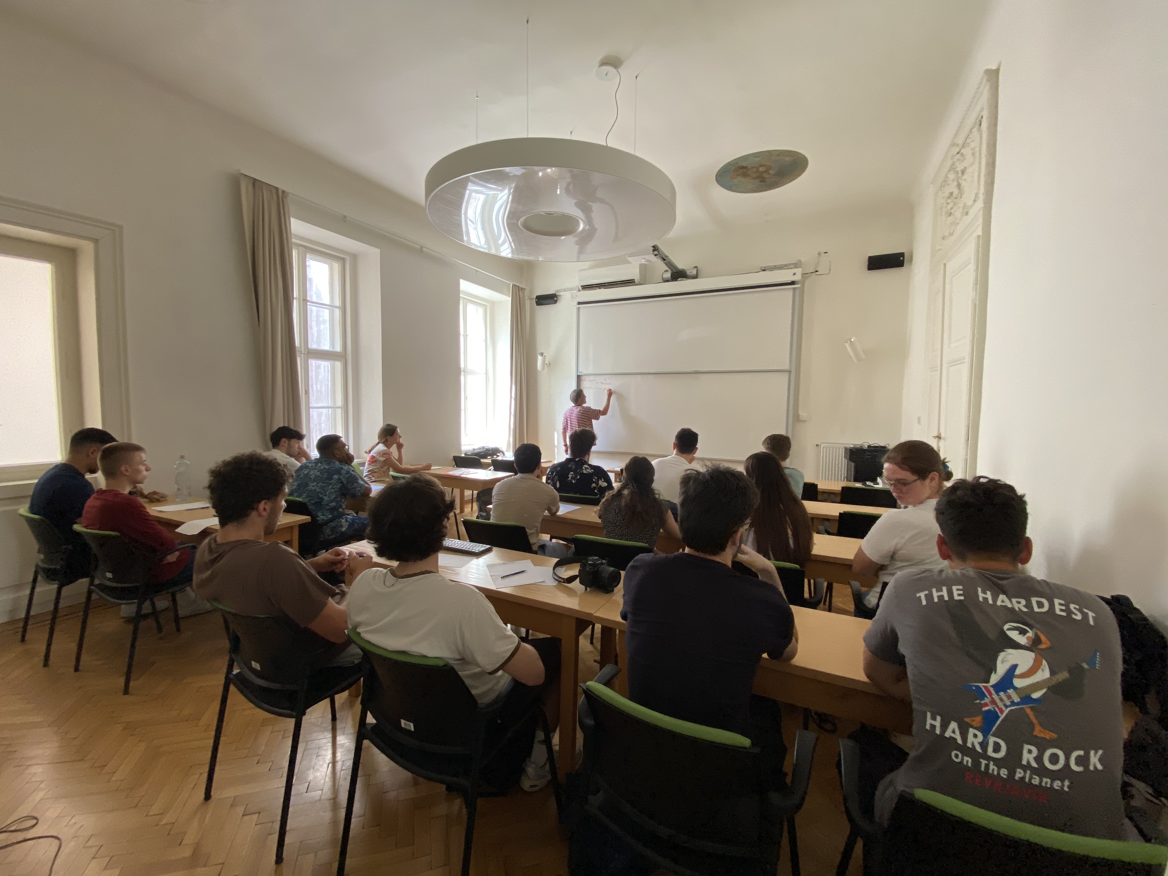 Am Alfréd Rényi Institute of Mathematics, dem Forschungsinstitut für Mathematik der Ungarischen Akademie der Wissenschaften, treffen sich Mathematiker, um die Geheimnisse der Zahlen zu entschlüsseln. Am 26. Juni hat die Klasse 3A zusammen mit ihren Lehrpersonen Iryna Roth und Alex van den Brandhof das phänomenale Institut in Budapest während ihrer Bildungsreise besucht. Gábor Tardos, ein herausragender Mathematiker des Instituts, nahm die Klasse auf eine spannende Führung durch das Institut mit.
