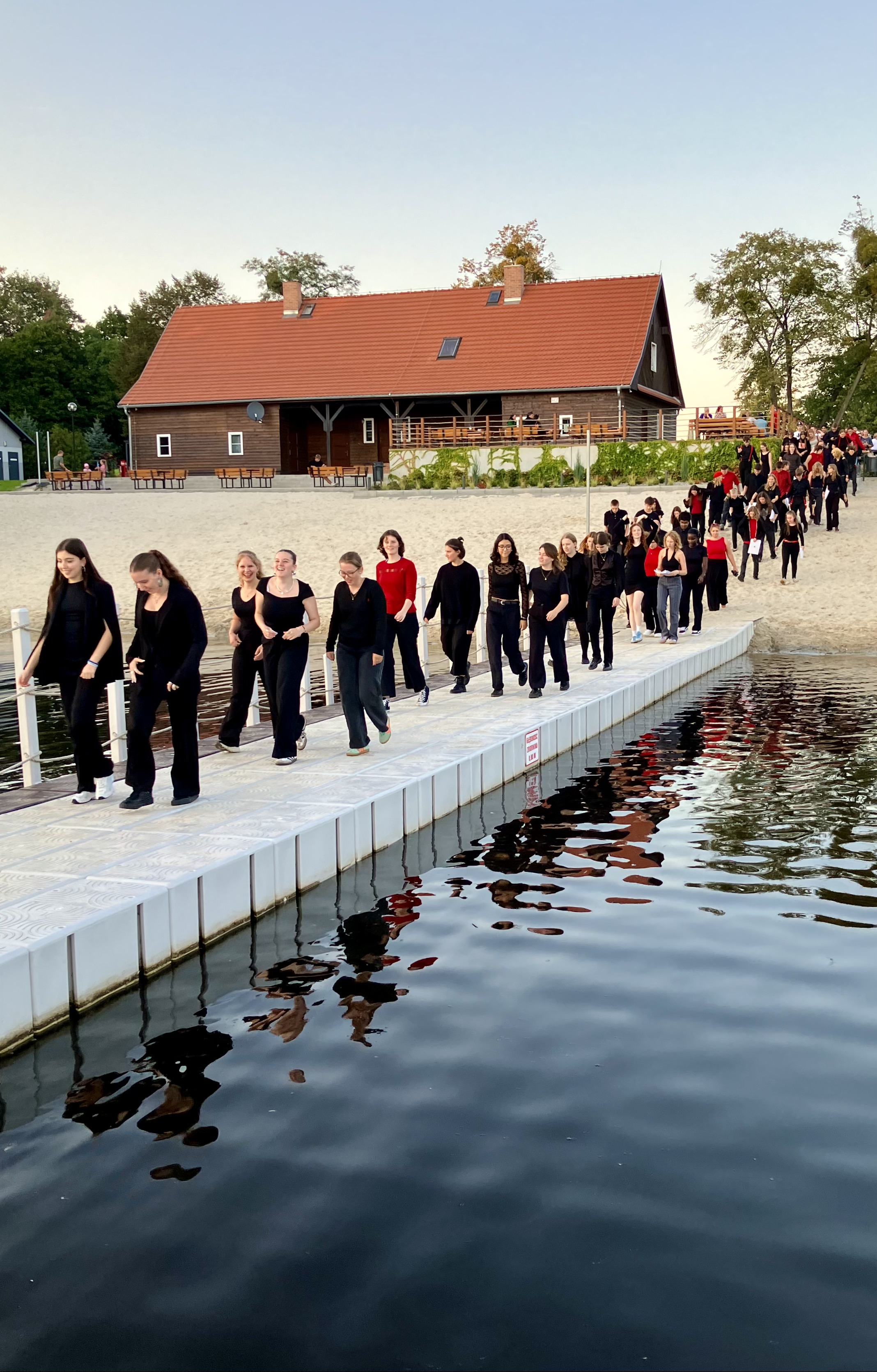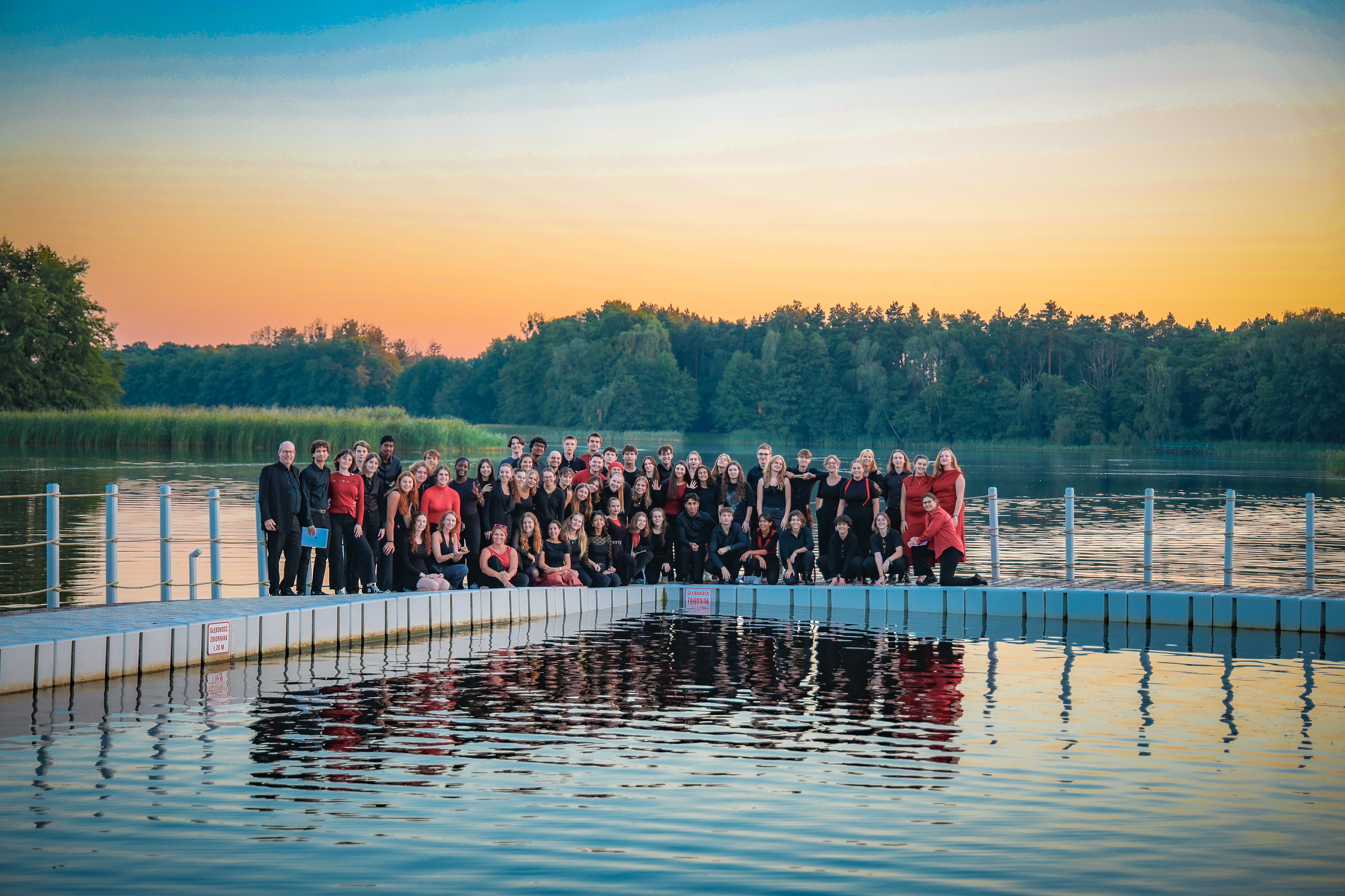 - Wir sangen das erste Open-Air-Konzert der Gym Chor-Geschichte. Das war ein Zufall, weil das Konzert in Środa wegen einem tragischen Unfall ein paar Stunden vor unserer Ankunft verschoben werden musste. Und nur das Amfiteatr neben dem See von Zaniemyśl war verfügbar. Das sonnig-warme Wetter war ein Glücksfall. Die Polen haben sich ein Bein ausgerissen und viel Geld investiert, um uns und alles Nötige inklusive Vollverstärkung dorthin zu bringen. Über 600 Personen besuchten das Konzert!