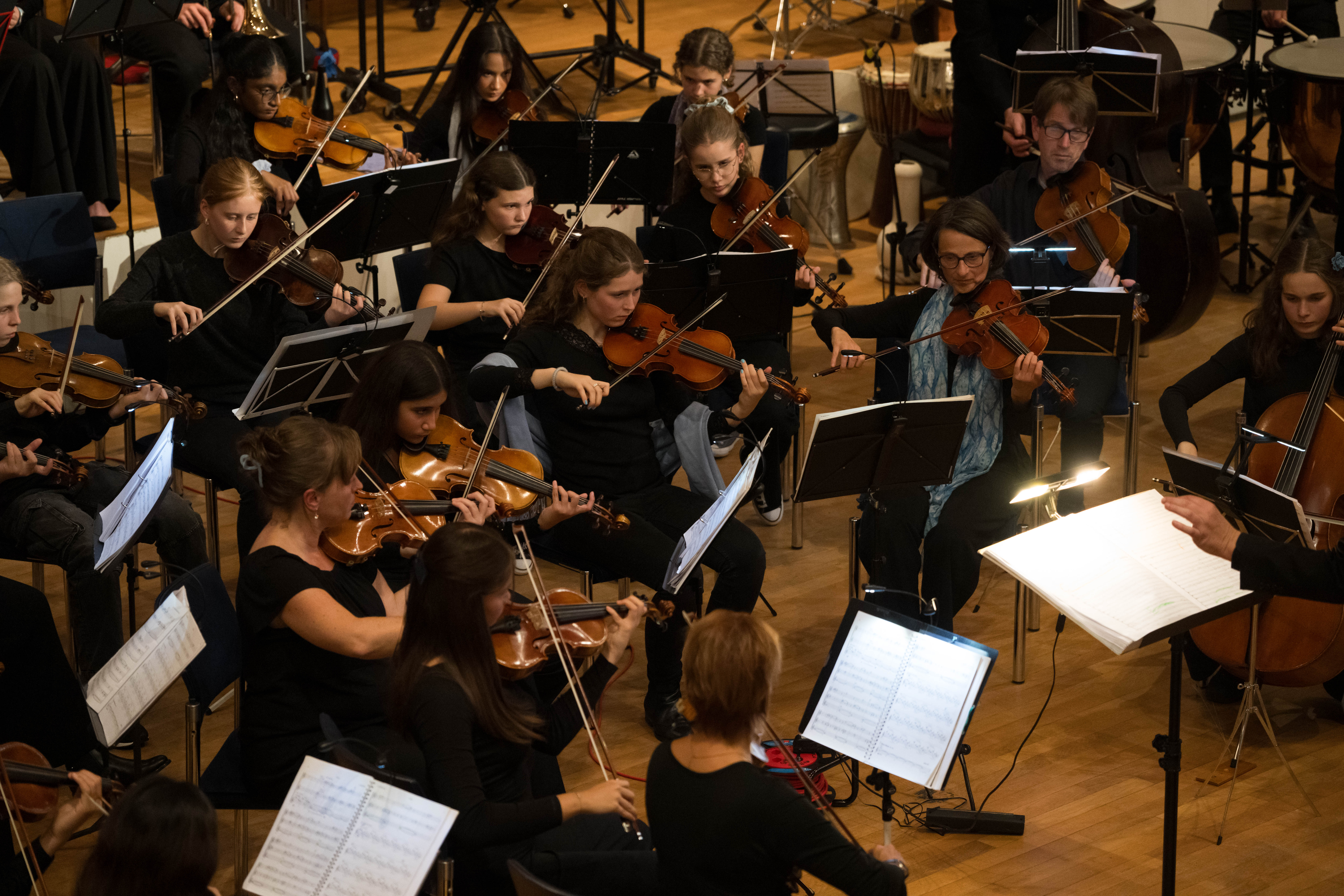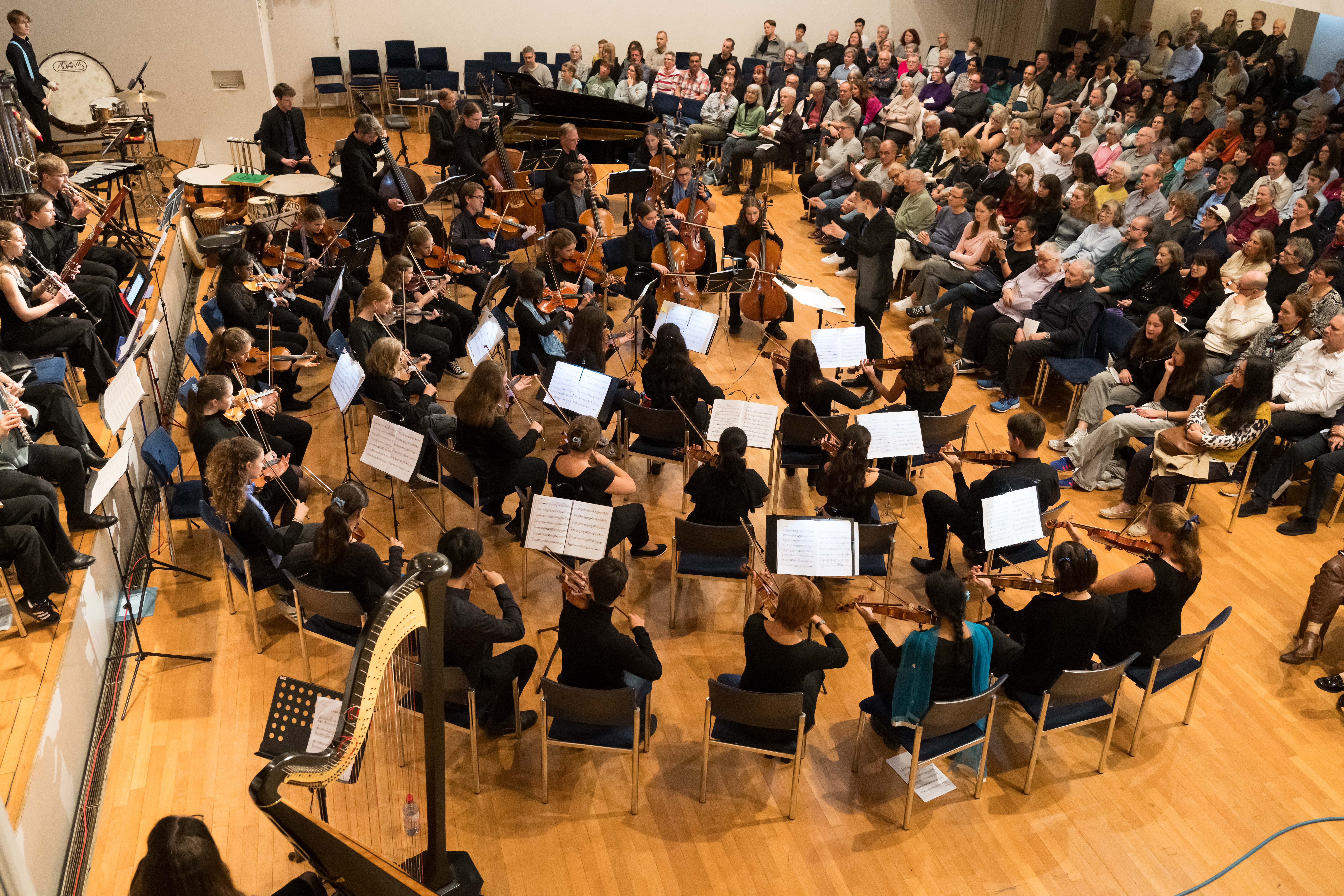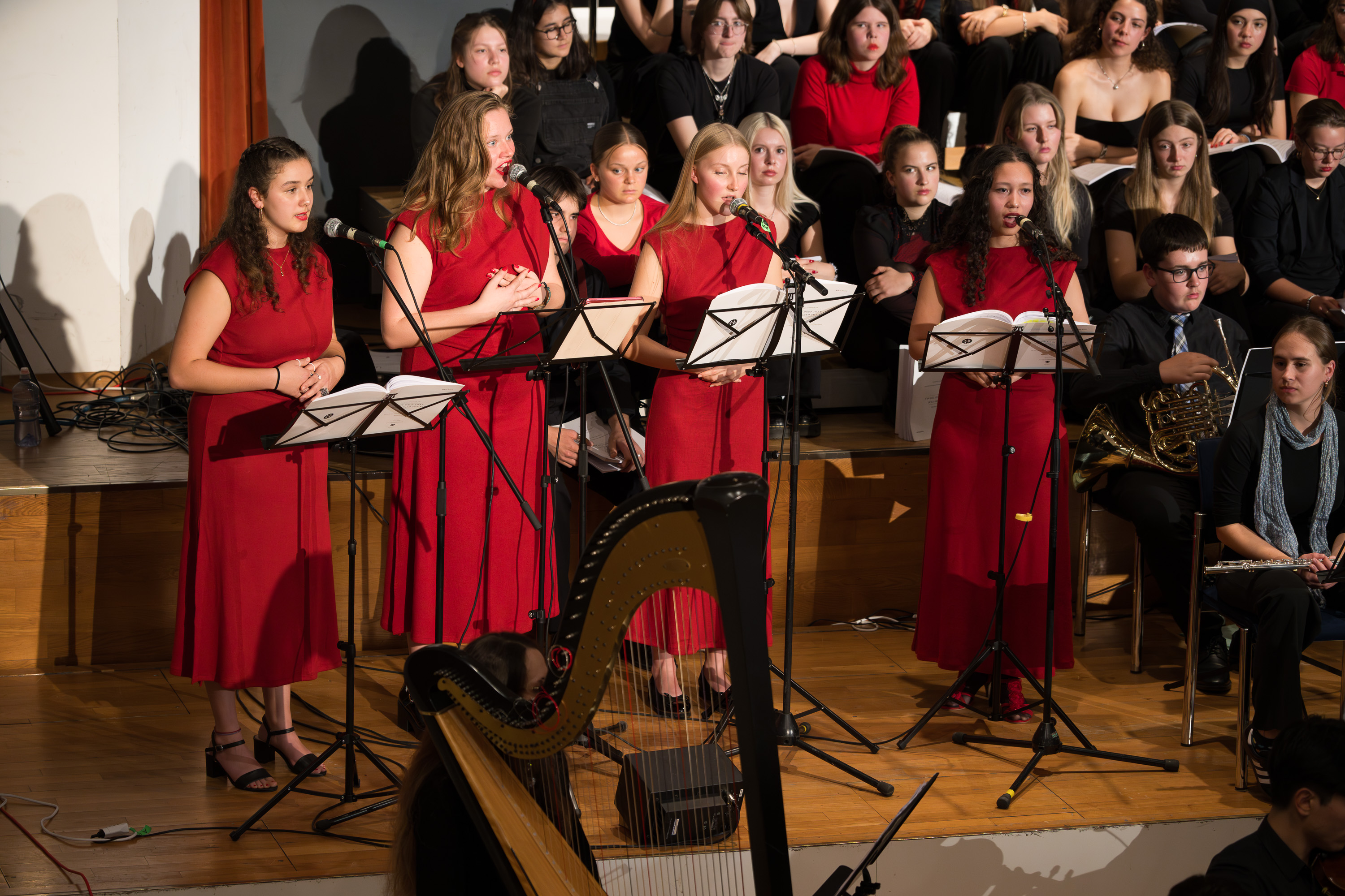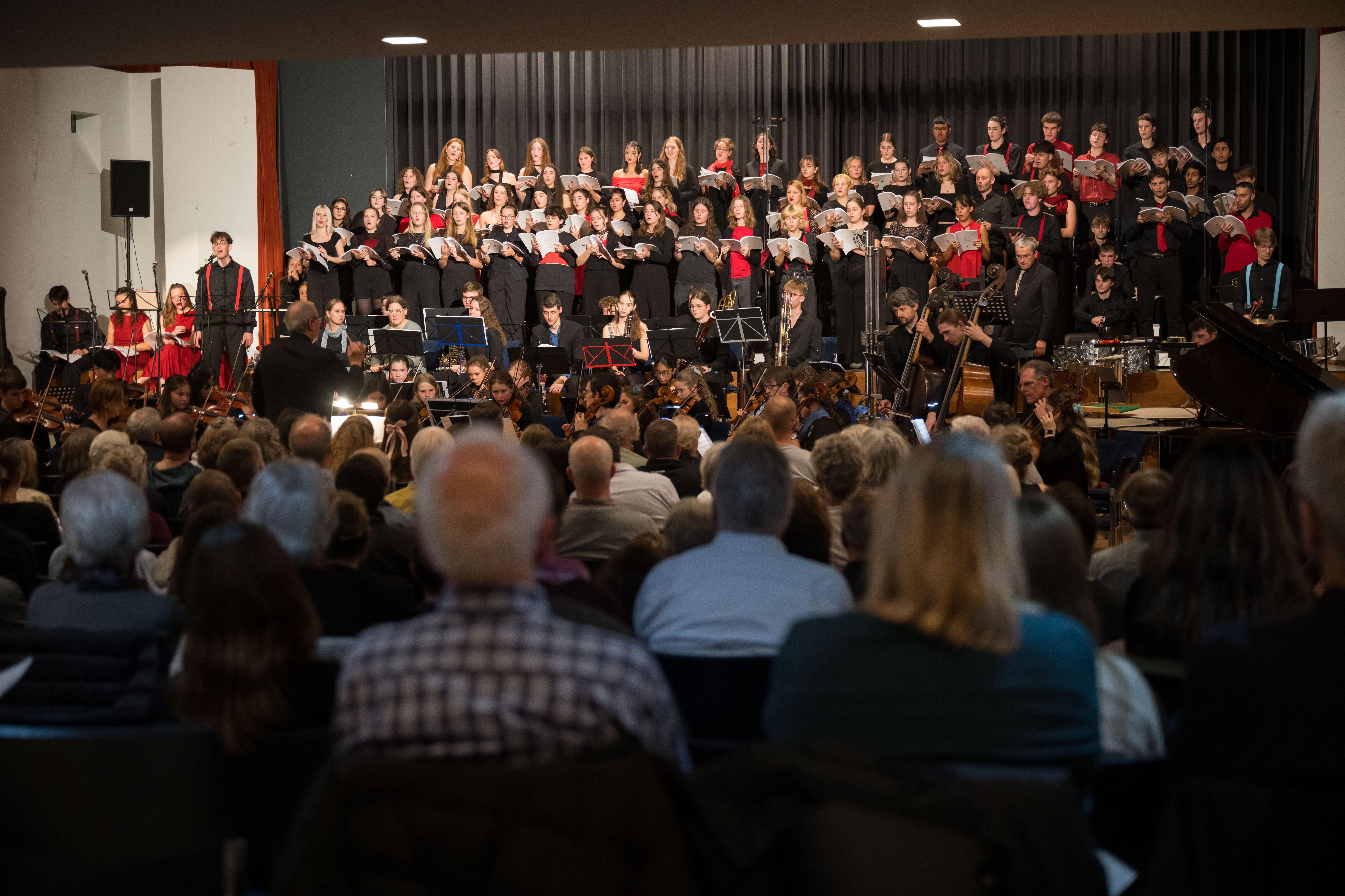Surrende Aufregung und festliche Stimmung im grossen Saal des Gemeindezentrums Mittenza in Muttenz. Die Angehörigen, Freund*innen und Lehrkräfte der Mitglieder des Chors des Gymnasiums Muttenz und der Jungen Birsphilharmonie, des Orchesters der Musikschulen des Kantons Basel-Landschaft, freuen sich auf das Konzert. Und sie spenden begeisterten Applaus, als sich der Chor aufstellt und das stolze Orchester erscheint. Von Ines Lilian Siegfried (Fotos: Daniel Nussbaumer)
