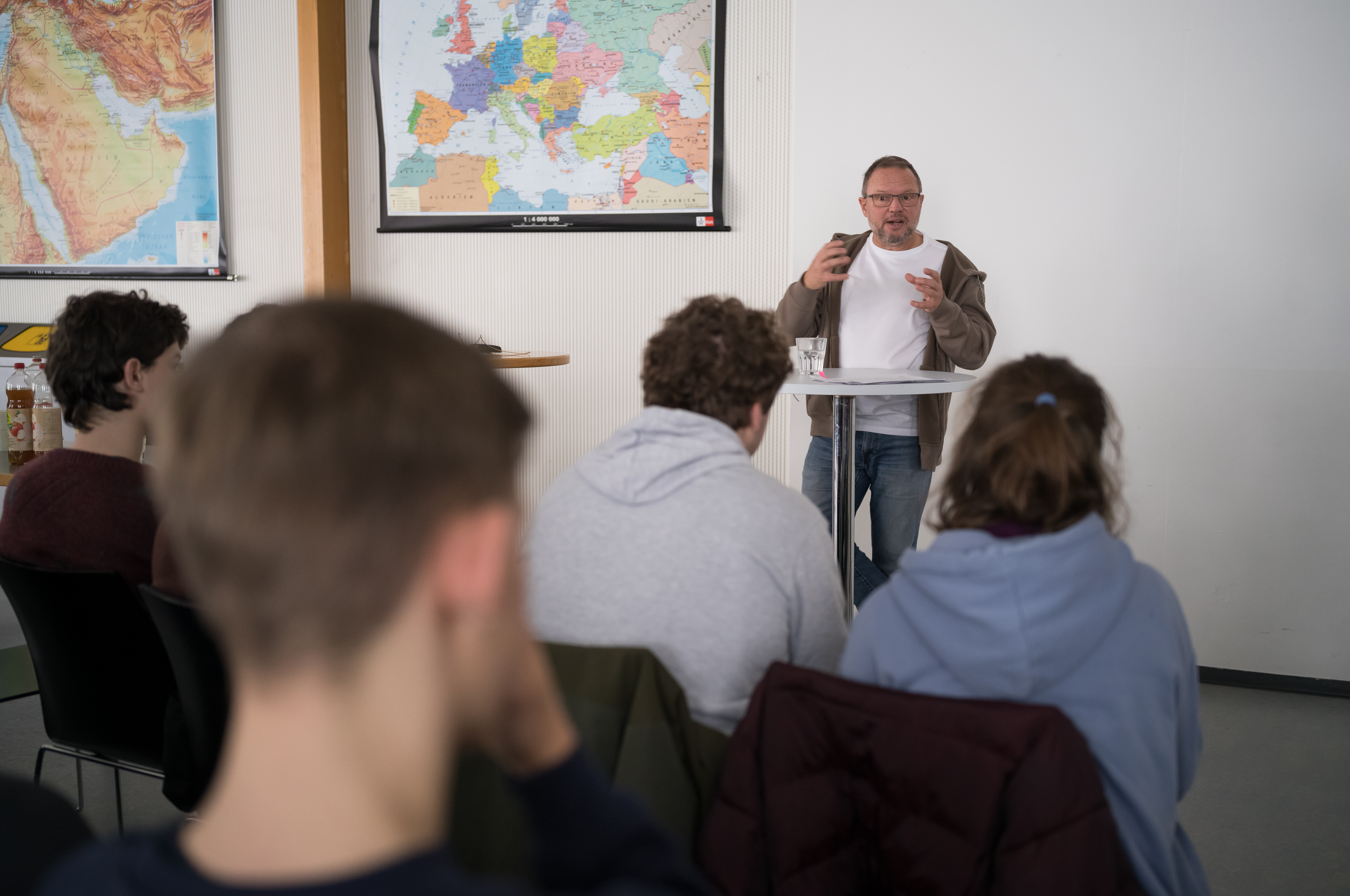 Wir sind am Ende des ersten Teils angelangt. Markus Hilfiker vom Ergänzungsfach Geografie spricht seinen Dank aus und beendet den offiziellen Teil der Veranstaltung. Es ist 14.00 Uhr und die teilnehmenden regulären Klassen kehren zurück in den Unterricht.