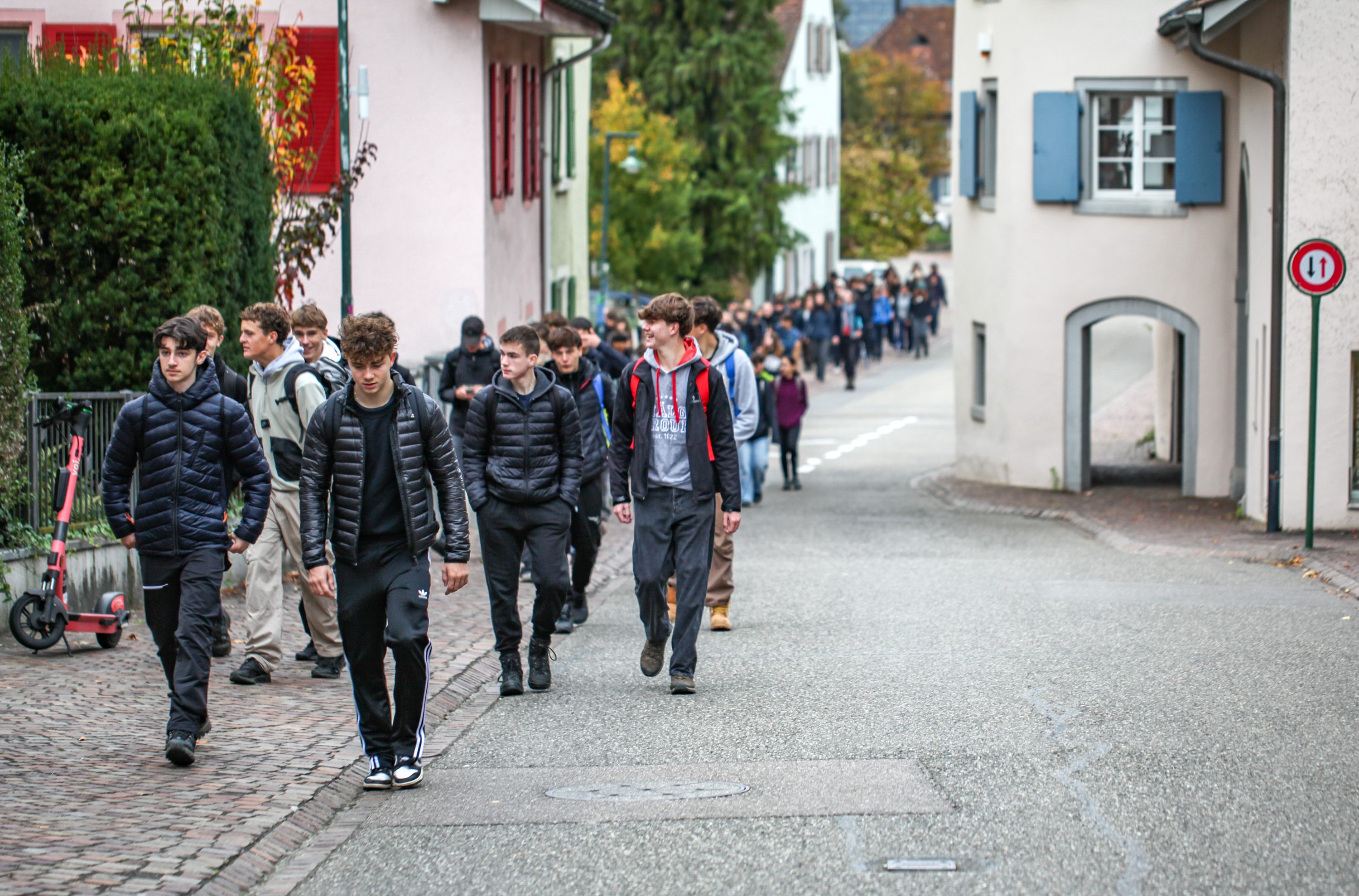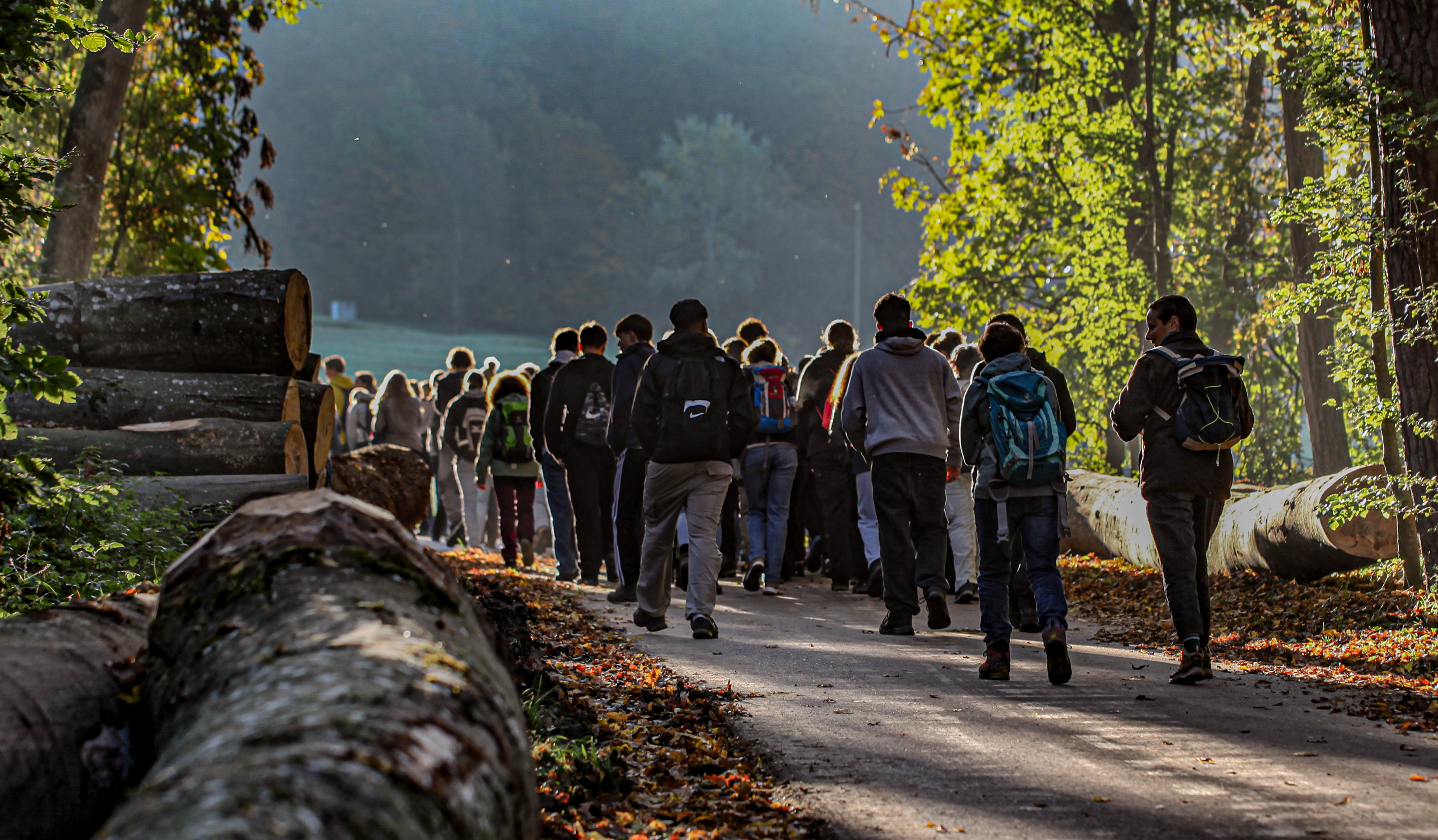 Der Waldtag des Gymnasiums und der FMS Muttenz begann bei schönem und kaltem Wetter. Alle Schüler: innen der ersten Klassen trafen sich vor der Dorfkirche St. Arbogast und liefen gemeinsam Richtung Egglisgraben.