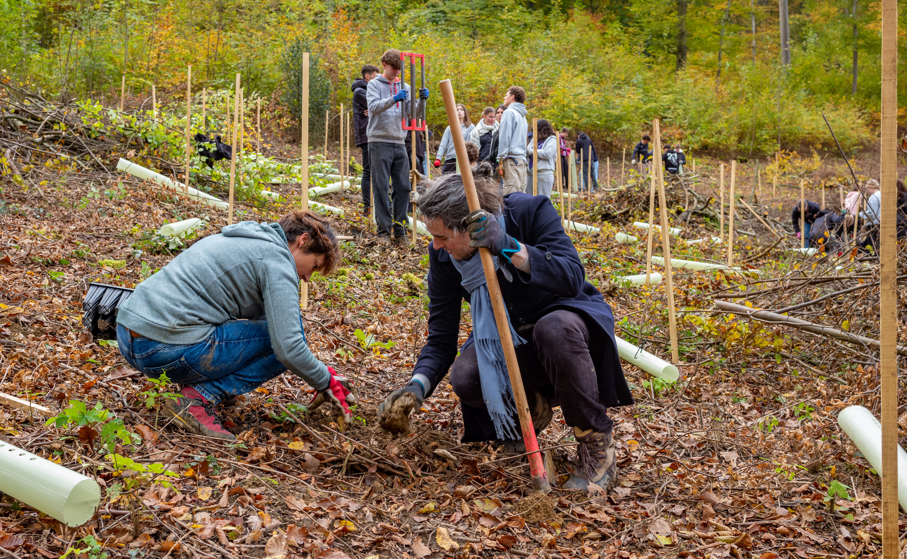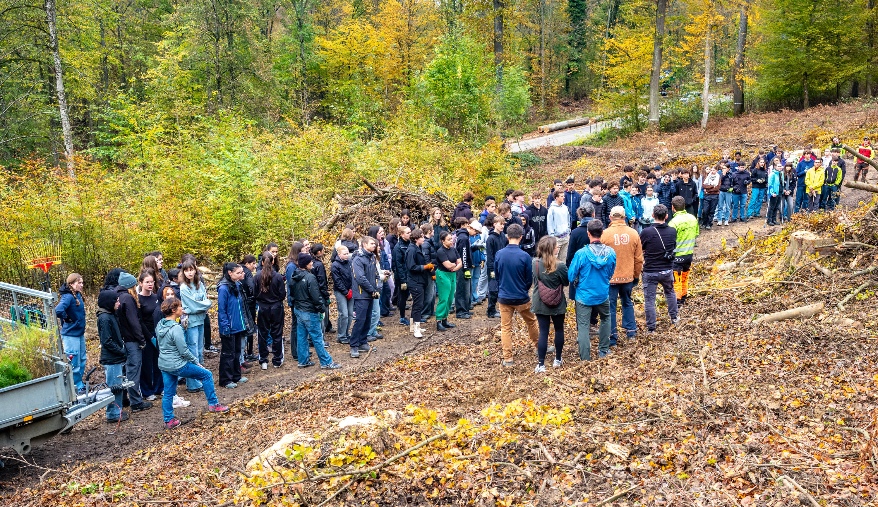 Am 31. Otober und 01. November fanden bereits zum dritten Mal Waldtage des Gymnasiums und der FMS Muttenz statt. Alle ersten Klassen machten sich zusammen mit ihren Klassenlehrpersonen auf, das Forstrevier Schauenburg bei der Umgestaltung des Waldes bei Muttenz in Richtung Artenvielfalt und Resilienz gegenüber dem Klimawandel zu unterstützen.